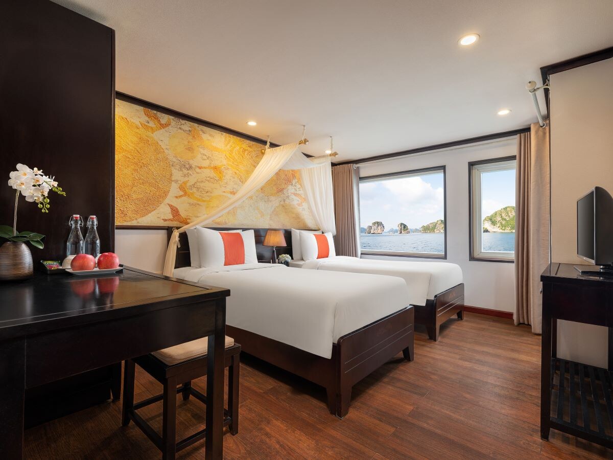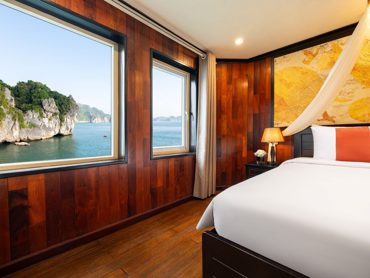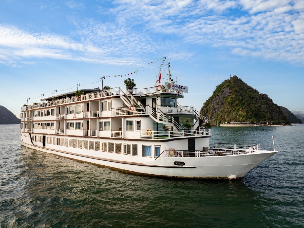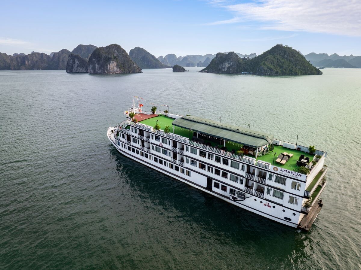 Launched in 2022, Amanda Premier Cruise is a modern steel vessel offering a blend of luxury, comfort, and authentic charm while exploring the iconic Halong Bay and Lan Ha Bay. Featuring 26 spacious cabins ranging from 25m² to 30m², the cruise can accommodate up to 60 guests - perfect for couples, families, or small groups seeking privacy and personalized service. Departing from Tuan Chau Marina, the cruise sails to renowned attractions such as Sung Sot (Surprise) Cave, Titov Island, Luon Cave, Trinh Nu Cave, Ba Trai Dao Beach, and the Pearl Farm, allowing guests to fully immerse themselves in both the natural beauty and cultural heritage of the bays.