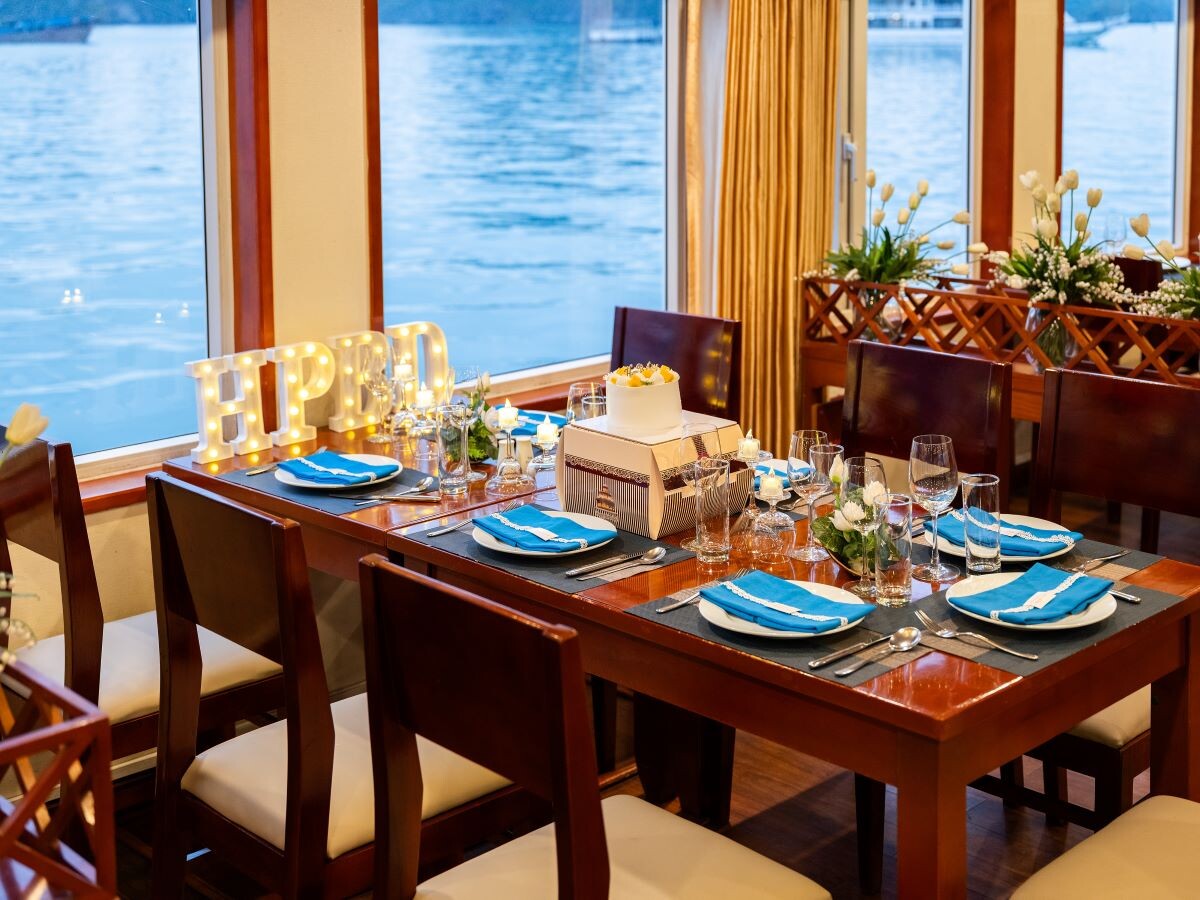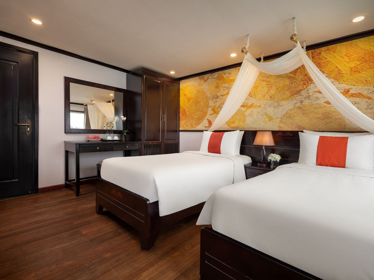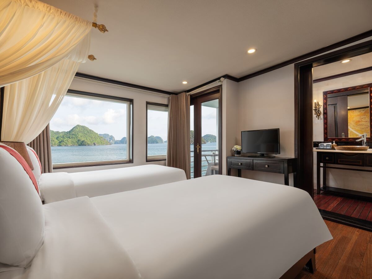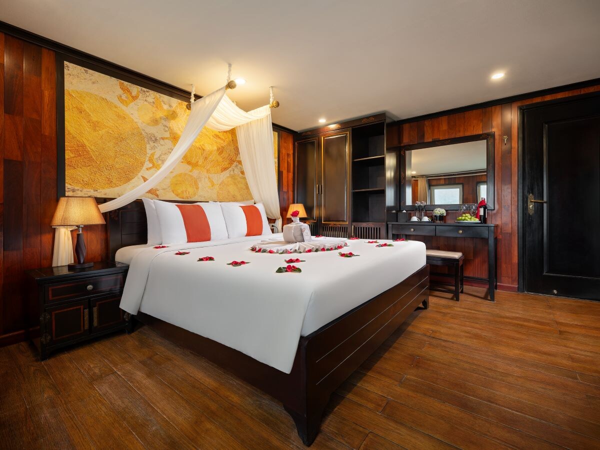 Launched in 2022, Amanda Premier Cruise is a modern steel vessel offering a blend of luxury, comfort, and authentic charm while exploring the iconic Halong Bay and Lan Ha Bay. Featuring 26 spacious cabins ranging from 25m² to 30m², the cruise can accommodate up to 60 guests - perfect for couples, families, or small groups seeking privacy and personalized service. Departing from Tuan Chau Marina, the cruise sails to renowned attractions such as Sung Sot (Surprise) Cave, Titov Island, Luon Cave, Trinh Nu Cave, Ba Trai Dao Beach, and the Pearl Farm, allowing guests to fully immerse themselves in both the natural beauty and cultural heritage of the bays.