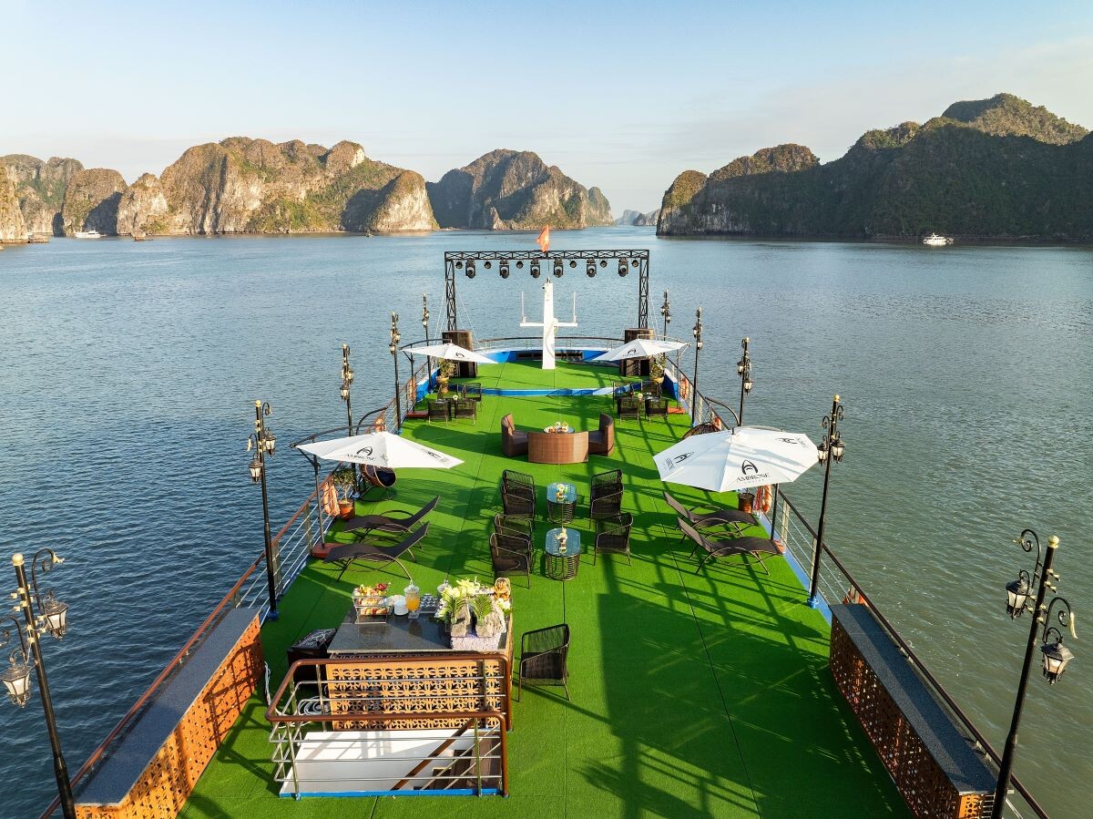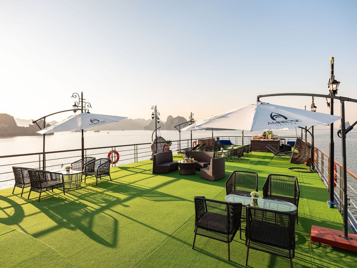 Ambrose Day Cruise is a newly launched luxury day cruise in Halong Bay, officially introduced in January 2025, offering modern design, premium facilities, and a well-balanced sightseeing route. With a capacity of 99 guests, the cruise provides a spacious and comfortable atmosphere suitable for couples, families, and group travelers.