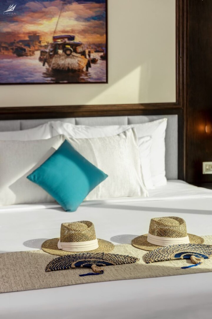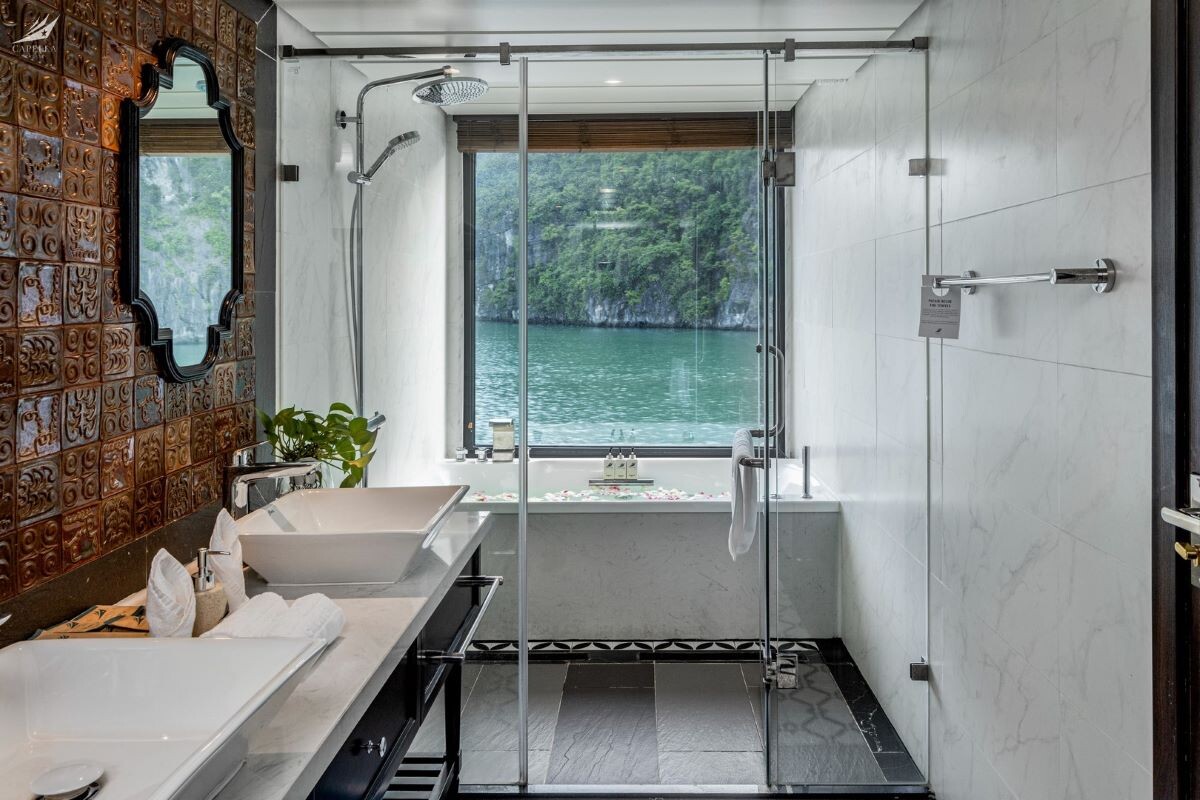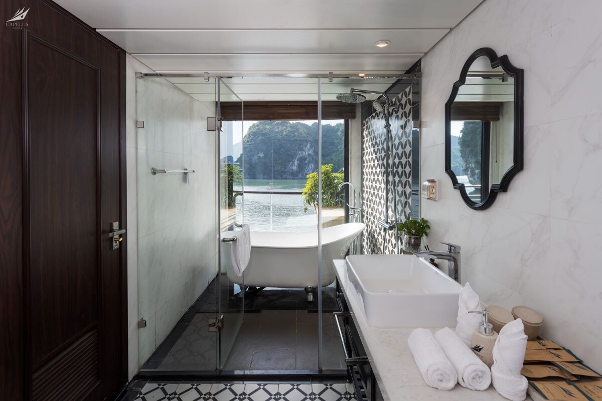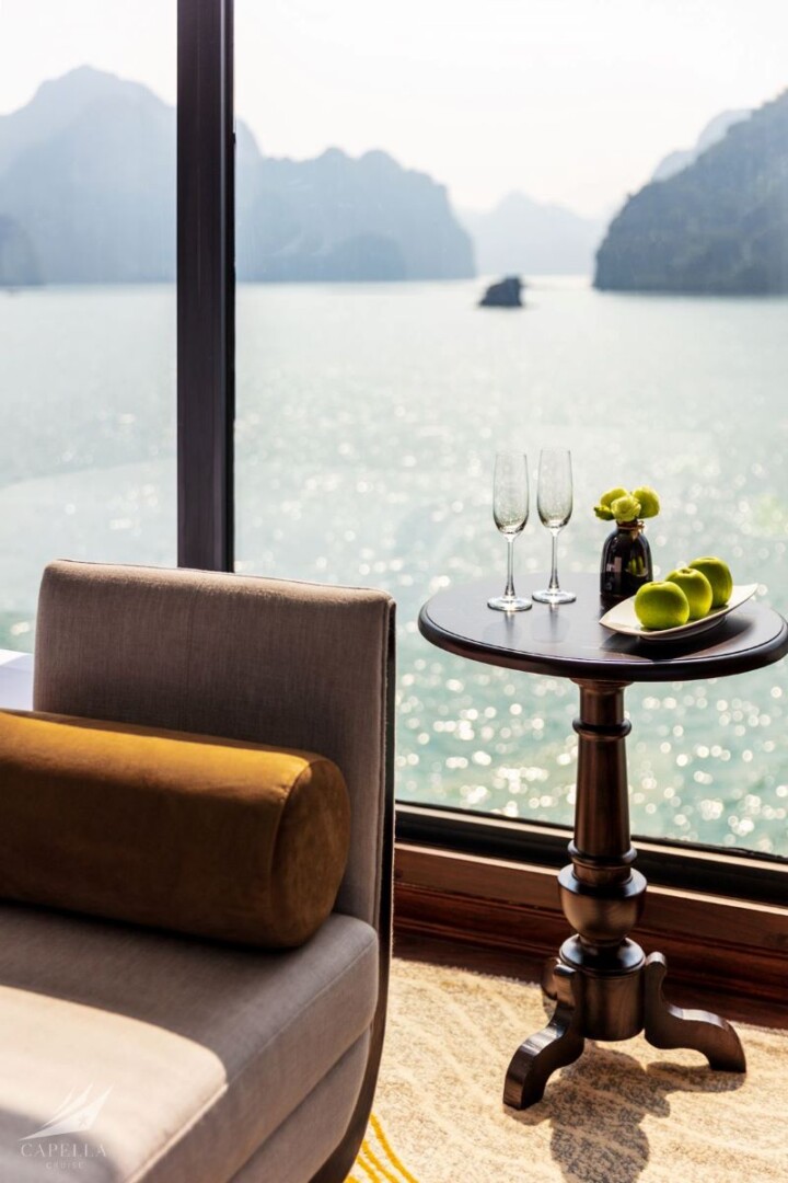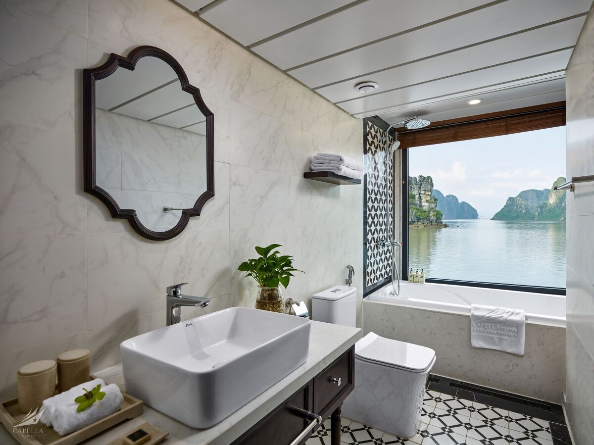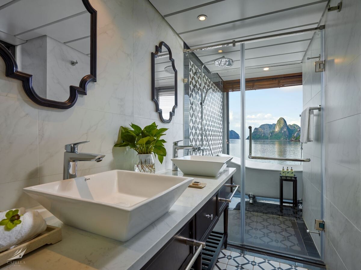 Launched in August 2020, Capella Cruise is a standout 5-star steel yacht sailing through the serene waters of Lan Ha Bay and Halong Bay. Departing from Tuan Chau Marina, this boutique vessel blends sleek superyacht styling with elegant Indochine design across 30 luxurious cabins. Every cabin includes panoramic views, private balconies, bathtubs, and thoughtful amenities. Capella stands out with unrivaled onboard facilities, a heated Oasis Pool & Jacuzzi, a floating ocean pool, inflatable waterslide, mini golf, Cigar & Poker Club, Sea Memory Spa, and a theater lounge. The ship’s name pays homage to the brightest star in the Auriga constellation, aspiring to shine among the finest cruise experiences on the Gulf of Tonkin. Whether you seek family fun, island exploration, or quiet luxury, Capella Cruise delivers with warm service, enriching activities, fine dining, and immersive routes through hidden coves, caves, and vibrant floating villages.