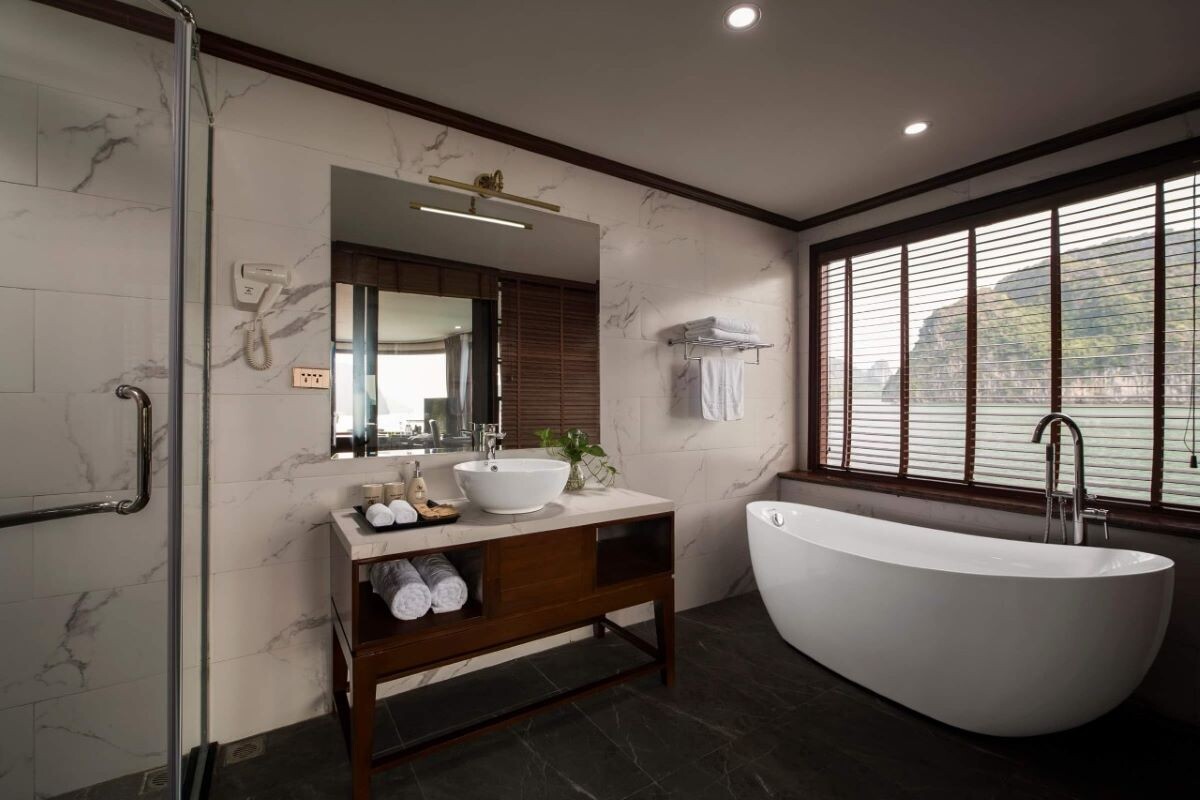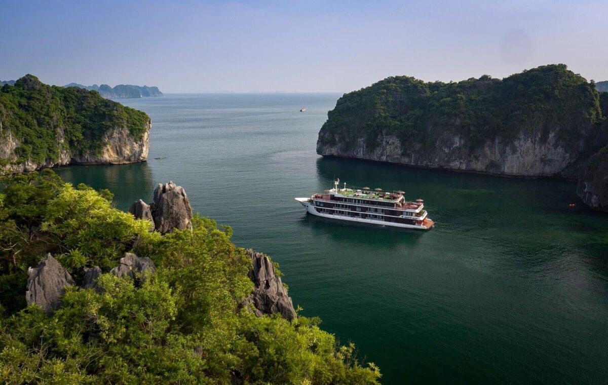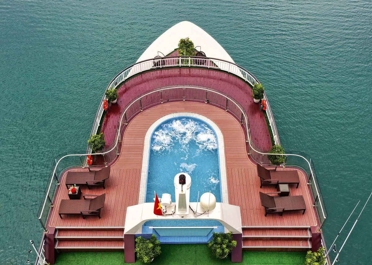 Launched in early 2020, Dora Cruise is a 5-star modern steel vessel operating in both Ha Long Bay and Lan Ha Bay. The ship offers 22 spacious en-suite cabins, each with private balcony and bathtub, ranging from 28m² to 56m², and can host up to 52 guests overnight. With 4 decks designed for comfort and style, Dora features a panoramic restaurant, fitness center, spa, sky bar, sundeck with jacuzzi pool, and elegant lounges. Departing from Tuan Chau Marina, Dora provides a luxurious and safe journey through two of northern Vietnam’s most spectacular seascapes. Guests will discover iconic attractions such as Dark & Bright Cave, Tra Bau Area (filming site of Kong: Skull Island), Viet Hai Village, Ba Trai Dao (Three Peaches) Beach, and Con Vit (Duck) Islet, combining relaxation and adventure with breathtaking natural beauty.