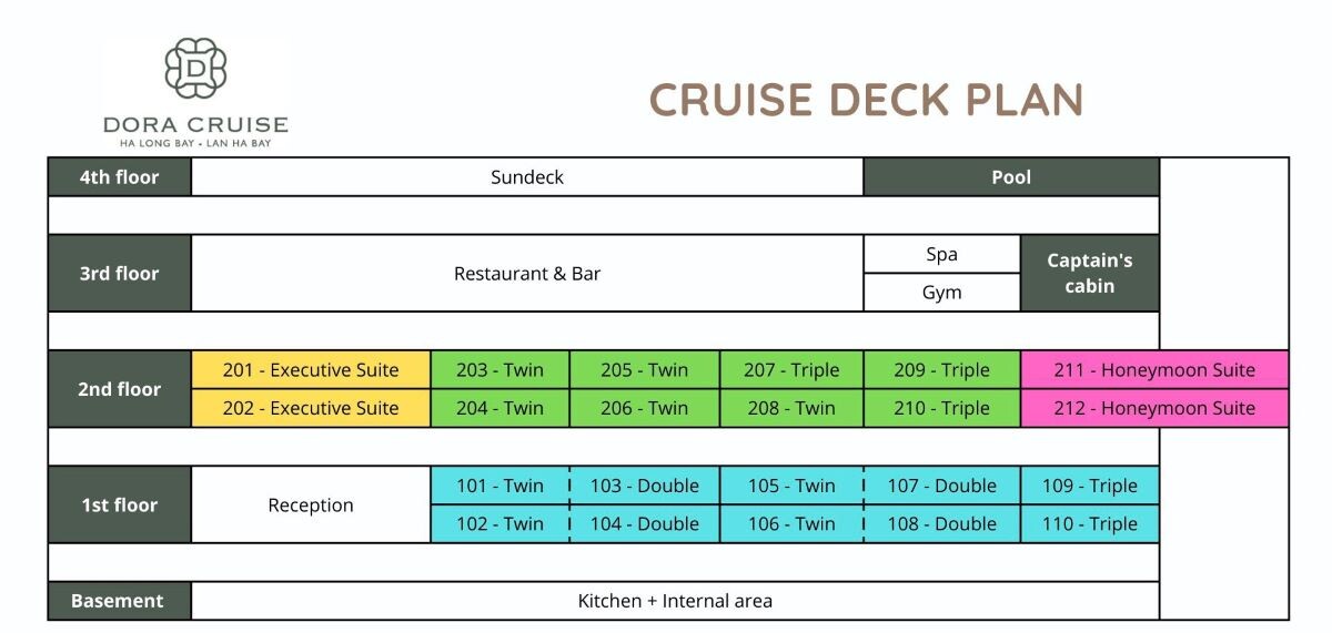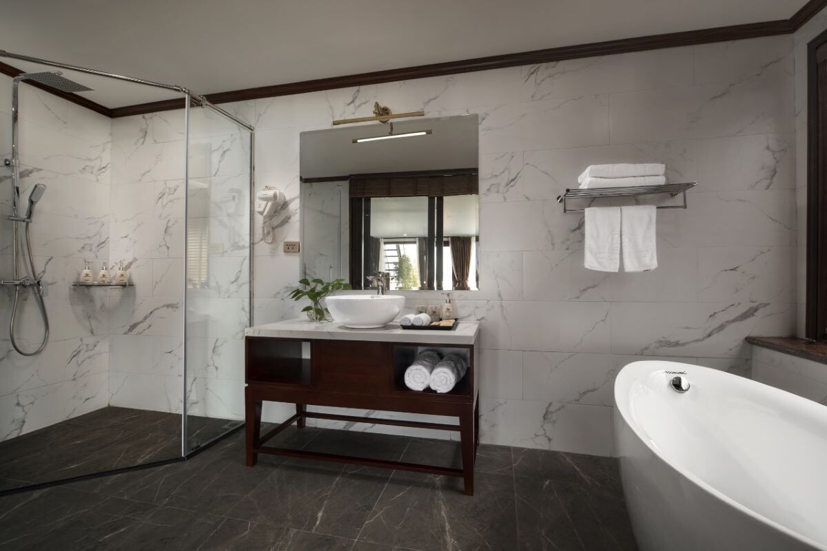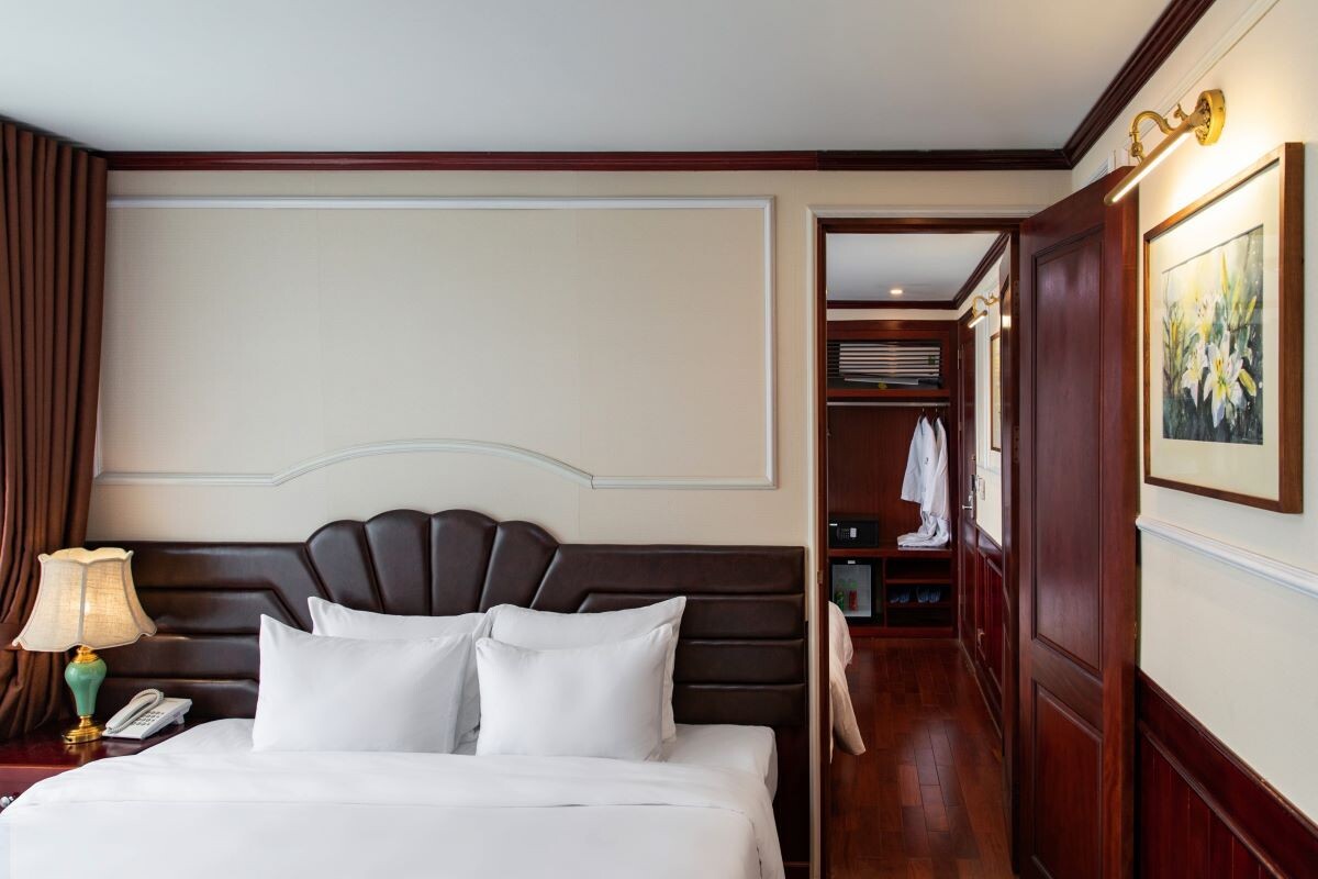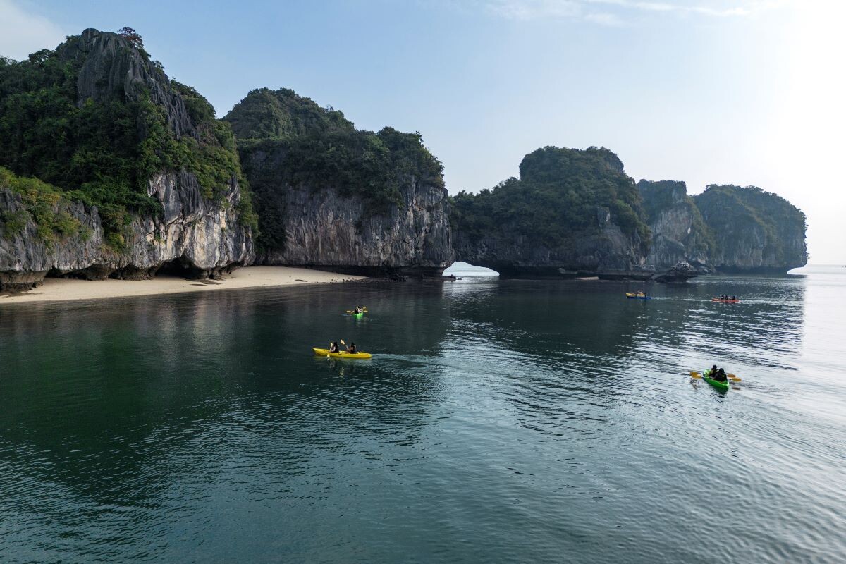 Launched in early 2020, Dora Cruise is a 5-star modern steel vessel operating in both Ha Long Bay and Lan Ha Bay. The ship offers 22 spacious en-suite cabins, each with private balcony and bathtub, ranging from 28m² to 56m², and can host up to 52 guests overnight. With 4 decks designed for comfort and style, Dora features a panoramic restaurant, fitness center, spa, sky bar, sundeck with jacuzzi pool, and elegant lounges. Departing from Tuan Chau Marina, Dora provides a luxurious and safe journey through two of northern Vietnam’s most spectacular seascapes. Guests will discover iconic attractions such as Dark & Bright Cave, Tra Bau Area (filming site of Kong: Skull Island), Viet Hai Village, Ba Trai Dao (Three Peaches) Beach, and Con Vit (Duck) Islet, combining relaxation and adventure with breathtaking natural beauty.