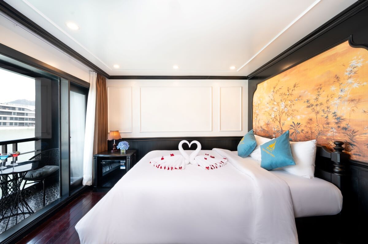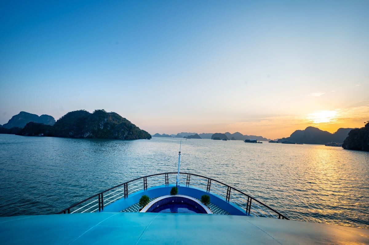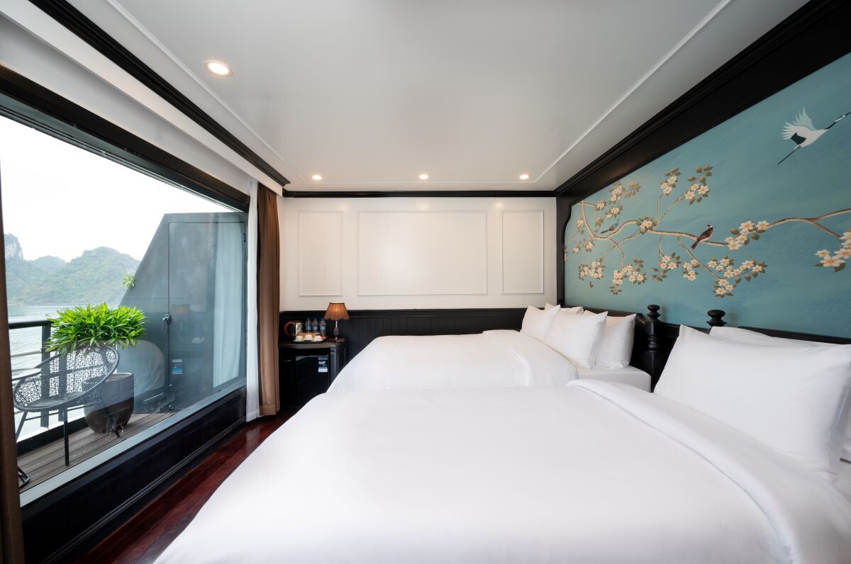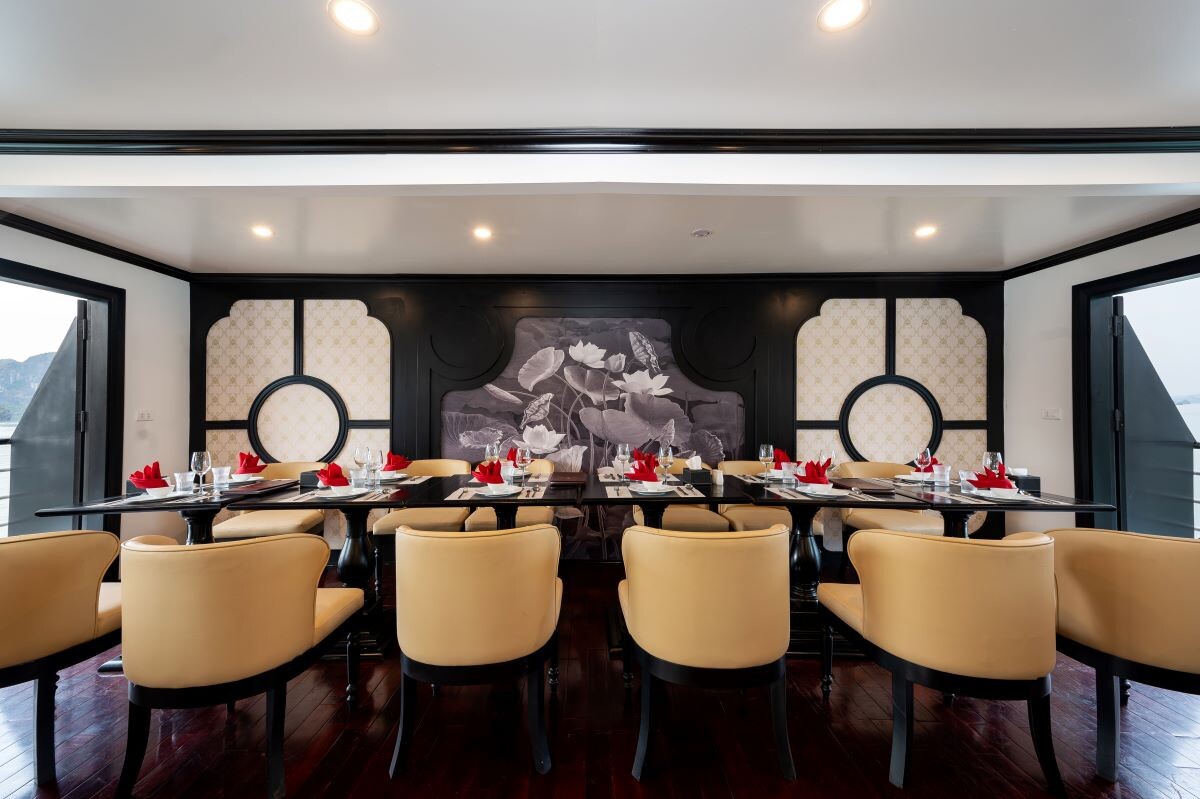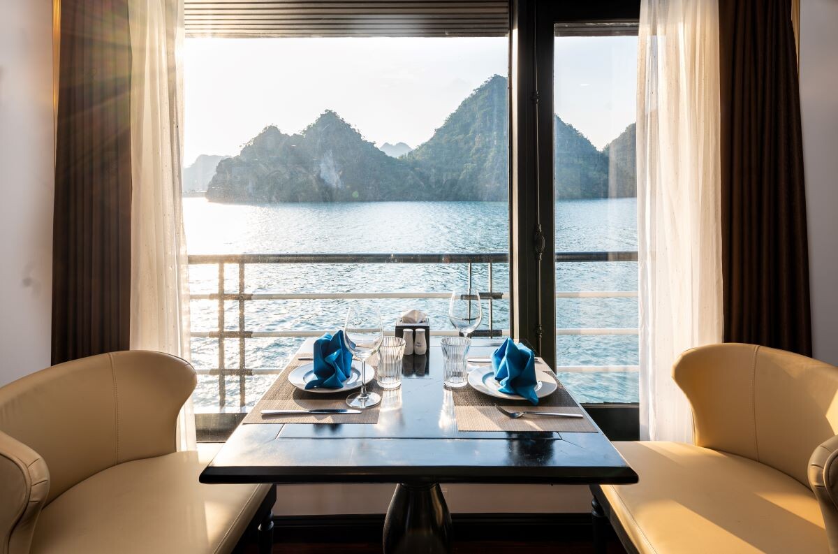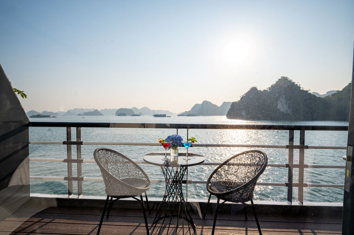 Launched in 2023, Dragon Bay Premium Cruise is a new-generation steel vessel that combines Vietnamese craftsmanship with modern luxury. Operated by a professional team experienced in Halong and Lan Ha Bay cruising, the ship redefines boutique sailing with elegance and comfort. Featuring 26 spacious cabins and suites ranging from 32m² to 64m², each equipped with a private balcony or terrace, Dragon Bay Premium Cruise ensures panoramic views and a refined onboard ambiance. Guests can enjoy premium facilities such as a mini pool on the sundeck, tea ceremony area, spa and massage service, sky bar, and outdoor dining space. Departing from Tuan Chau Marina, the cruise sails through the serene waters of Lan Ha Bay, visiting iconic spots such as the Dark & Bright Cave, the peaceful Tra Bau area, and the charming Viet Hai Village on Cat Ba Island. It’s an ideal choice for travelers seeking both relaxation and discovery within Vietnam’s most tranquil bay.