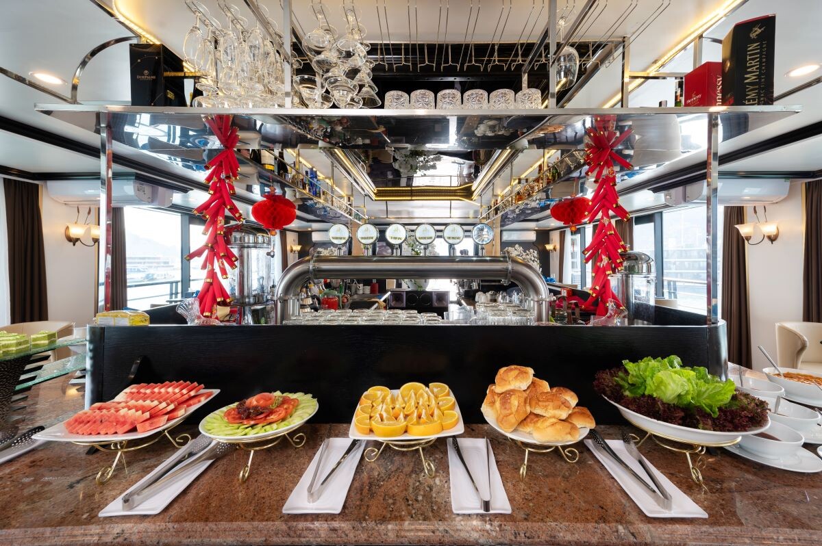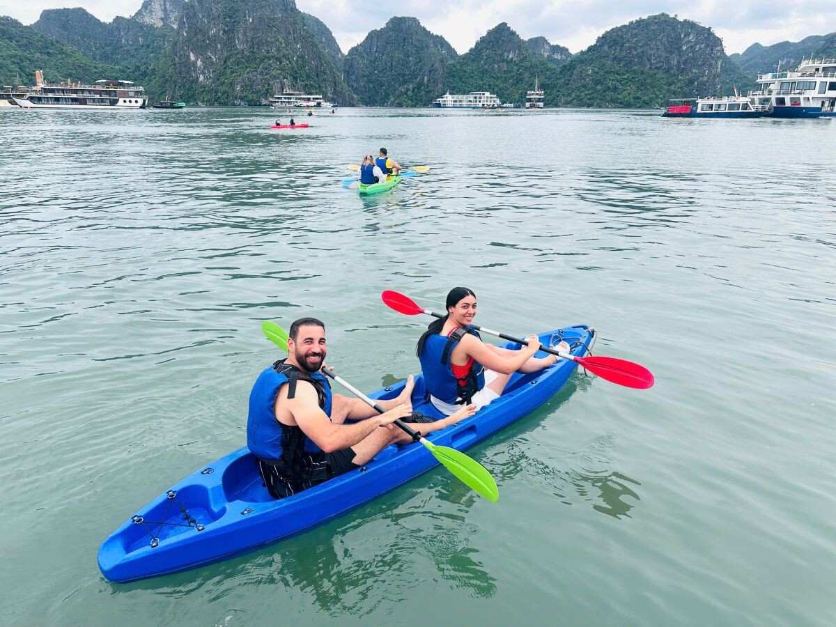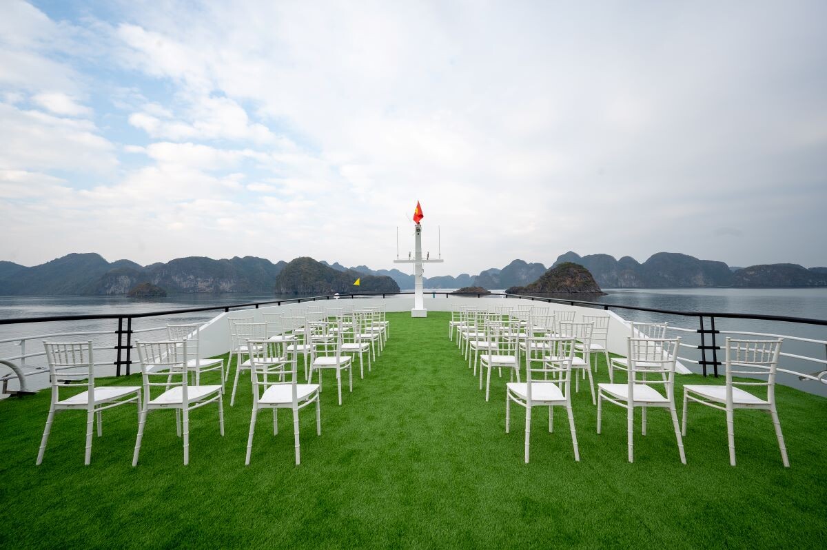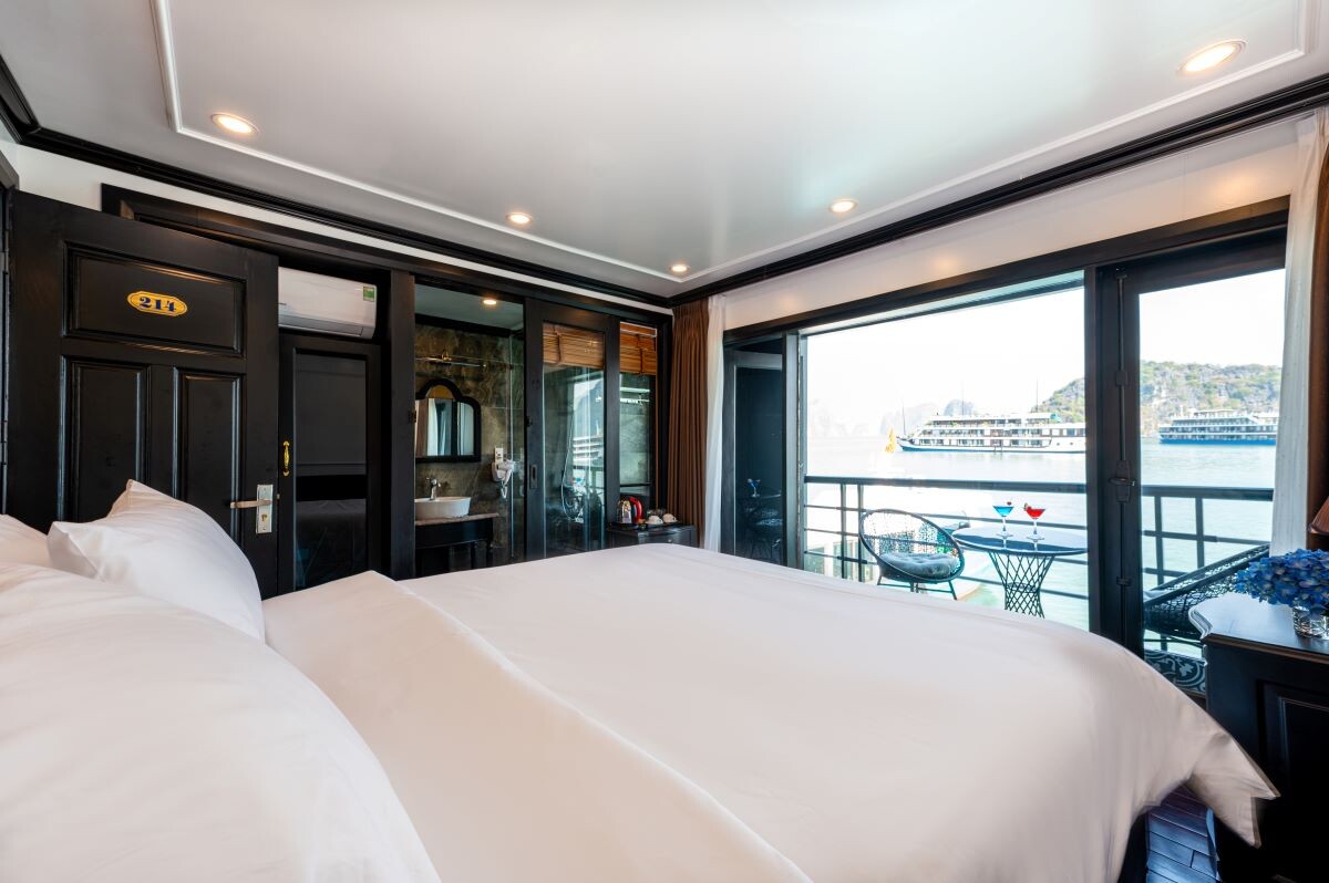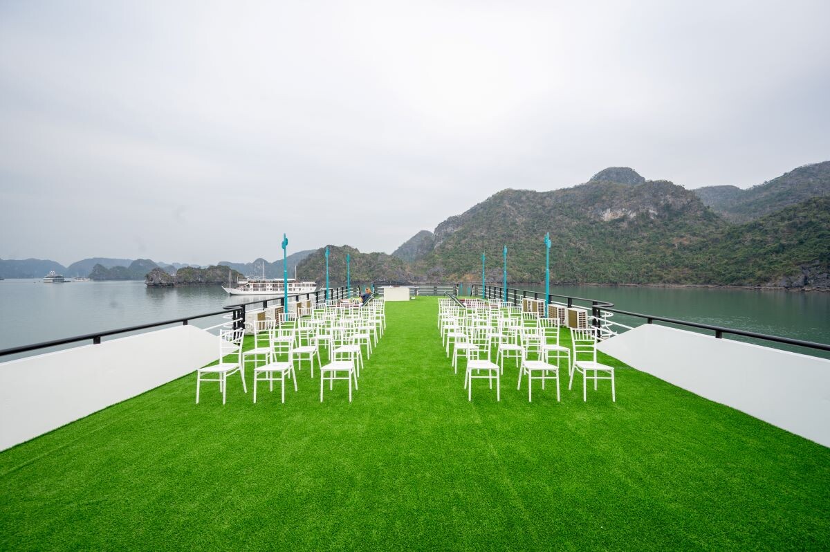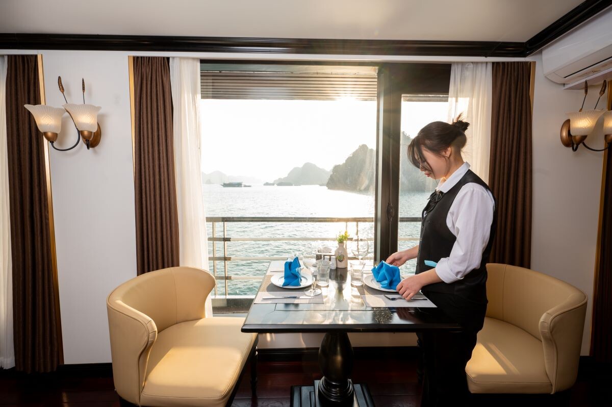 Launched in 2023, Dragon Bay Premium Cruise is a new-generation steel vessel that combines Vietnamese craftsmanship with modern luxury. Operated by a professional team experienced in Halong and Lan Ha Bay cruising, the ship redefines boutique sailing with elegance and comfort. Featuring 26 spacious cabins and suites ranging from 32m² to 64m², each equipped with a private balcony or terrace, Dragon Bay Premium Cruise ensures panoramic views and a refined onboard ambiance. Guests can enjoy premium facilities such as a mini pool on the sundeck, tea ceremony area, spa and massage service, sky bar, and outdoor dining space. Departing from Tuan Chau Marina, the cruise sails through the serene waters of Lan Ha Bay, visiting iconic spots such as the Dark & Bright Cave, the peaceful Tra Bau area, and the charming Viet Hai Village on Cat Ba Island. It’s an ideal choice for travelers seeking both relaxation and discovery within Vietnam’s most tranquil bay.
