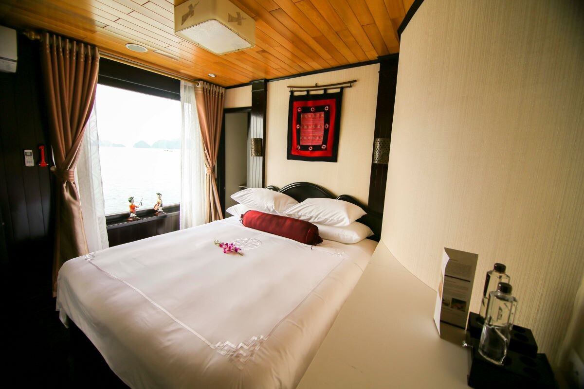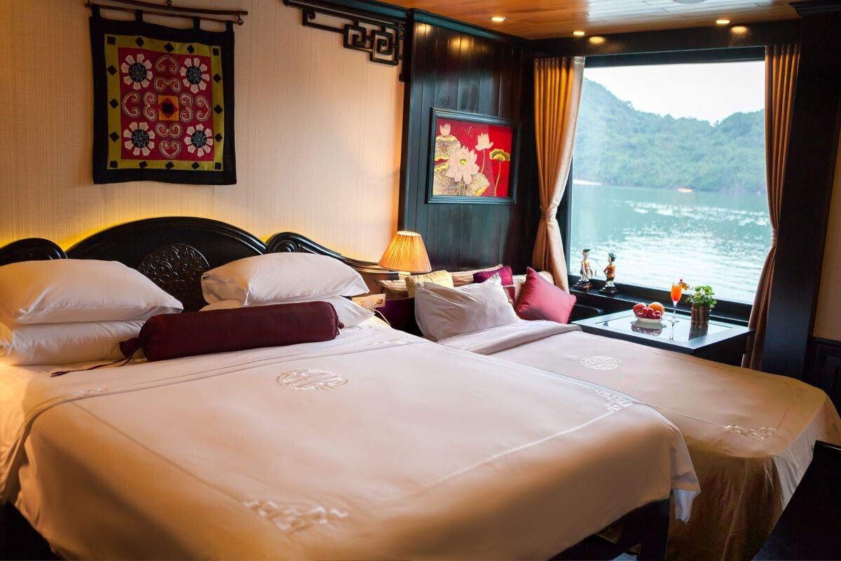 Launched between 2013 and 2014, the Dragon Legend Cruise by Indochina Junk redefines traditional luxury cruising in Bai Tu Long Bay - the untouched extension of Ha Long Bay. With 24 deluxe cabins designed in a traditional Vietnamese style, this boutique cruise accommodates up to 48 passengers, creating an intimate yet refined atmosphere. Each cabin, spacious and elegantly appointed, offers panoramic ocean views and modern amenities. Guests can indulge in facilities such as a mineral seawater pool, two restaurants, bars, a spa & massage room, and a sundeck. The Dragon Legend Cruise takes pride in offering an off-the-beaten-path journey to Bai Tu Long Bay - where serenity, authenticity, and Vietnamese heritage converge.