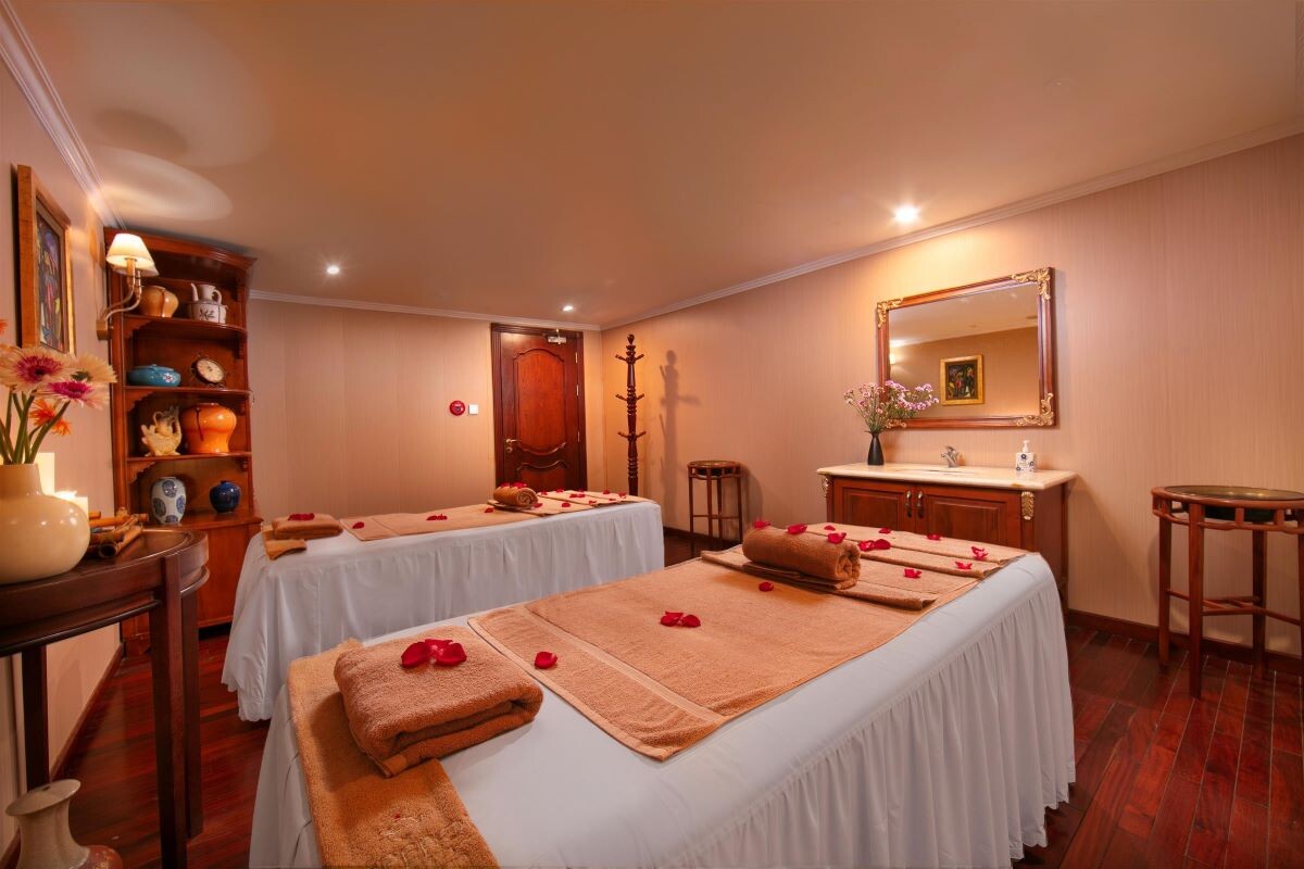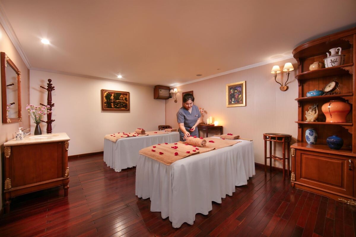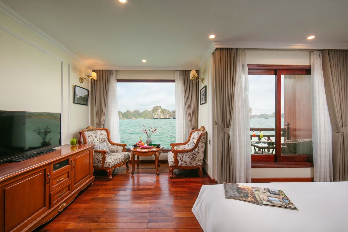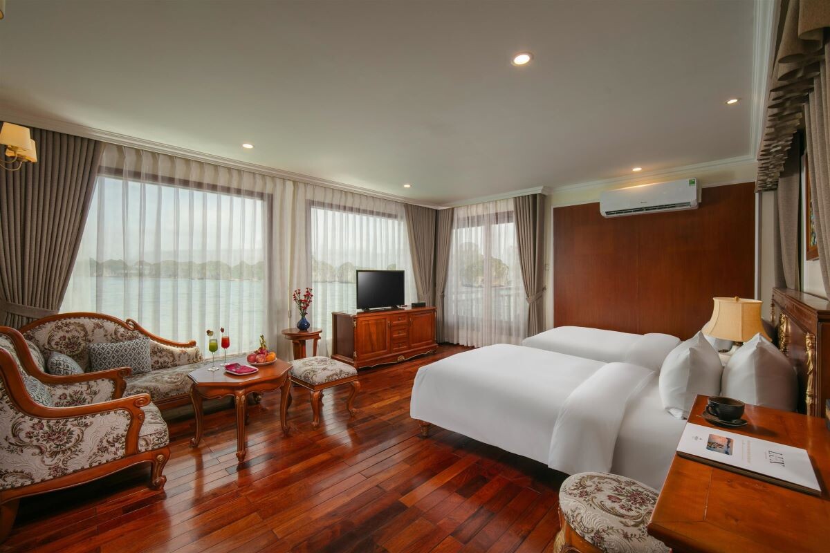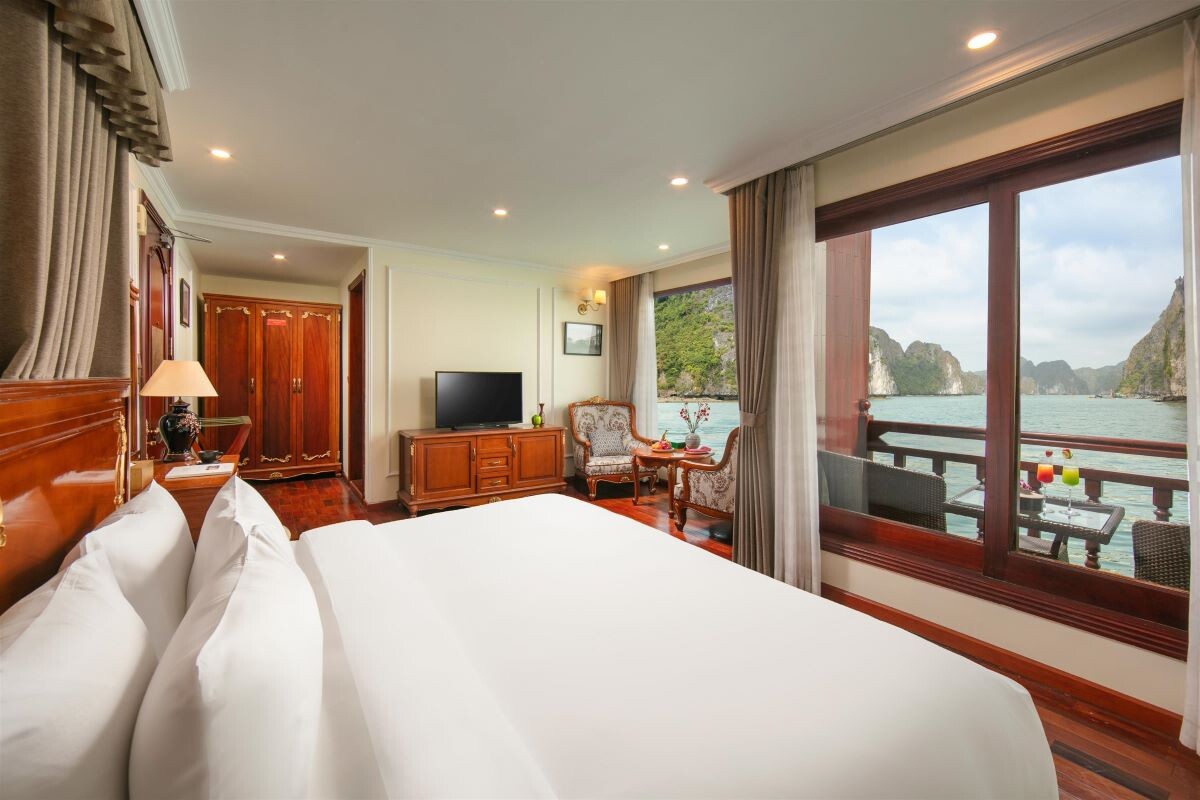 Step aboard the Emperor Cruise - Vietnam’s first boutique cruise line, and experience a masterpiece of royal elegance on the waters of Halong Bay. Launched in 2017 and inspired by the lavish lifestyle of Emperor Bao Dai, Vietnam’s last monarch, this ultra-luxury vessel blends 1930s Indochine glamour with modern sophistication. With only 10 opulent suites ranging from 35m² to 70m², each offering full ocean views, private balconies, and Jacuzzi bathtubs, the cruise ensures unmatched privacy and exclusivity for a maximum of 30 guests. From embarkation at Tuan Chau International Marina, every detail is tailored for a truly all-inclusive royal experience, complete with personal butler service, 24-hour room service, and world-class cuisine. The ship itself is a floating work of art, featuring elegant restaurants, a fine art library, the Heritage Spa, and expansive sundecks for panoramic views. Each suite is uniquely designed to tell its own story, blending Vietnamese culture, history, and artistry. Guests can enjoy curated excursions, from kayaking and cultural explorations to sunset dining and indulgent spa treatments. Whether savoring afternoon tea, practicing Vovinam, or simply relaxing in your suite’s luxurious ambiance, every moment aboard the Emperor Cruise is designed to be extraordinary.