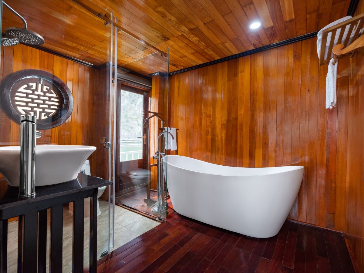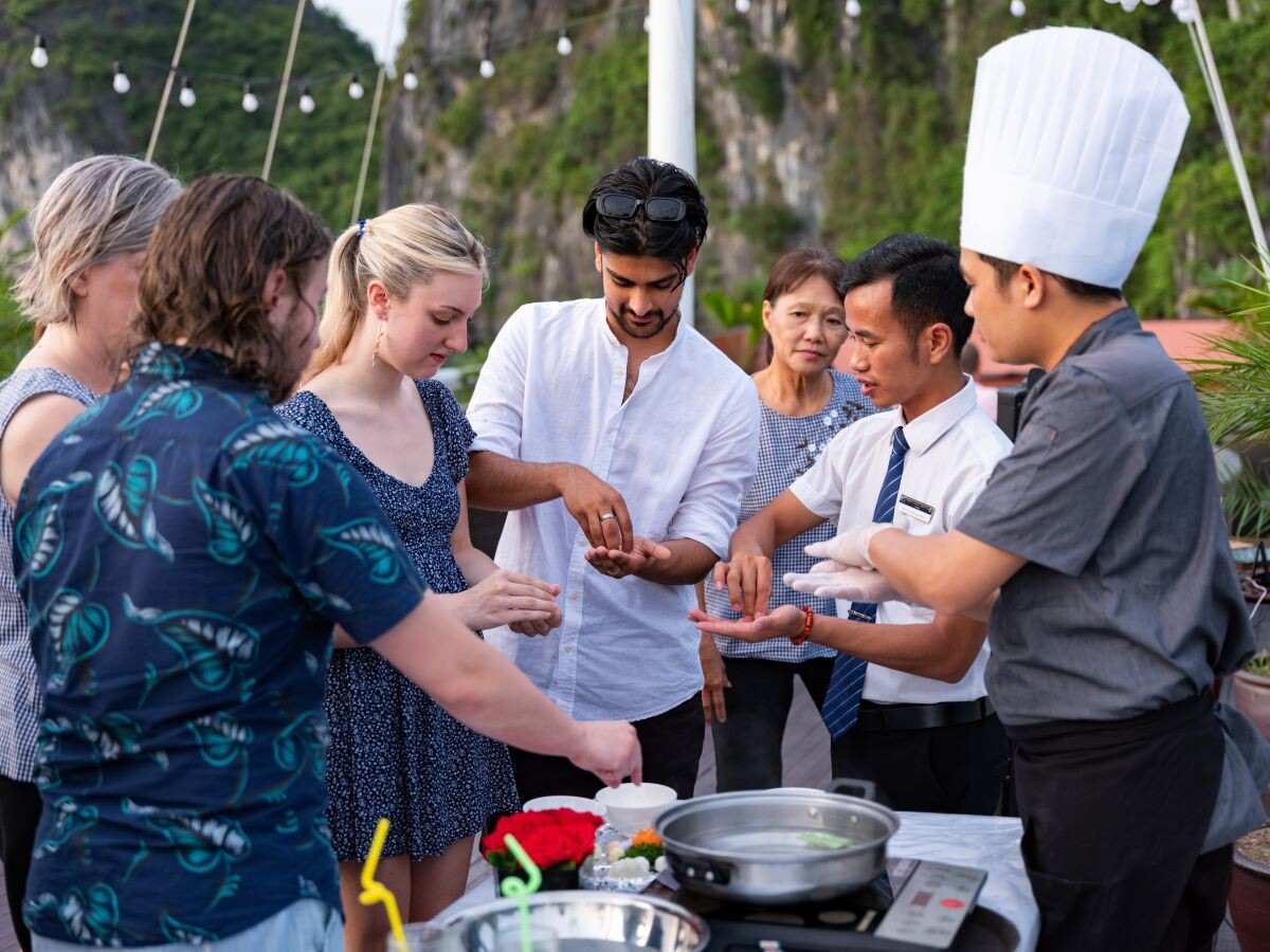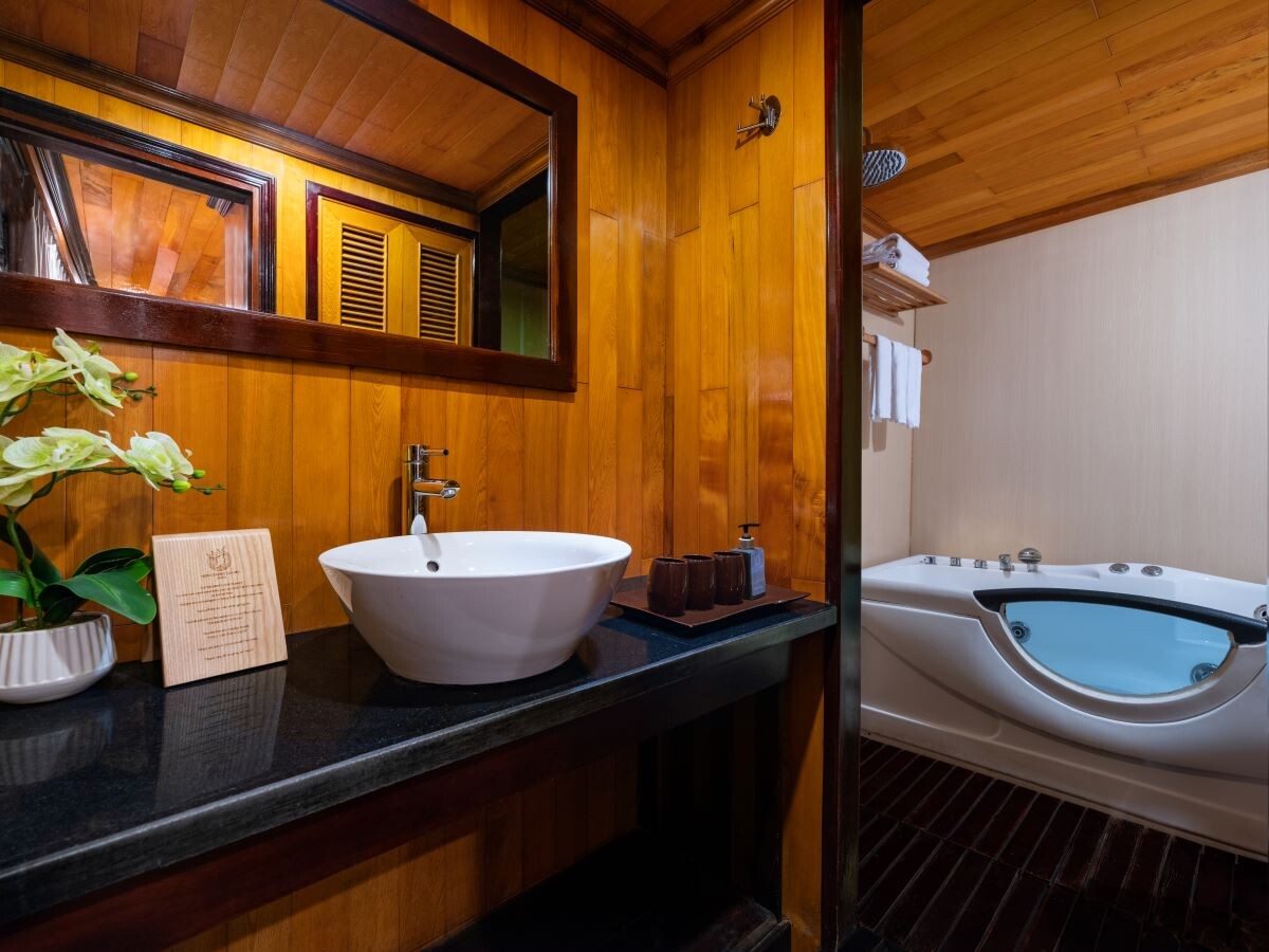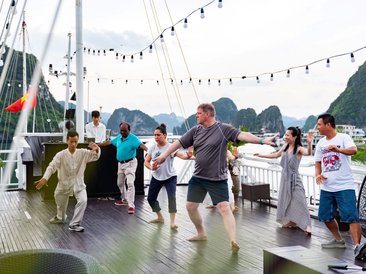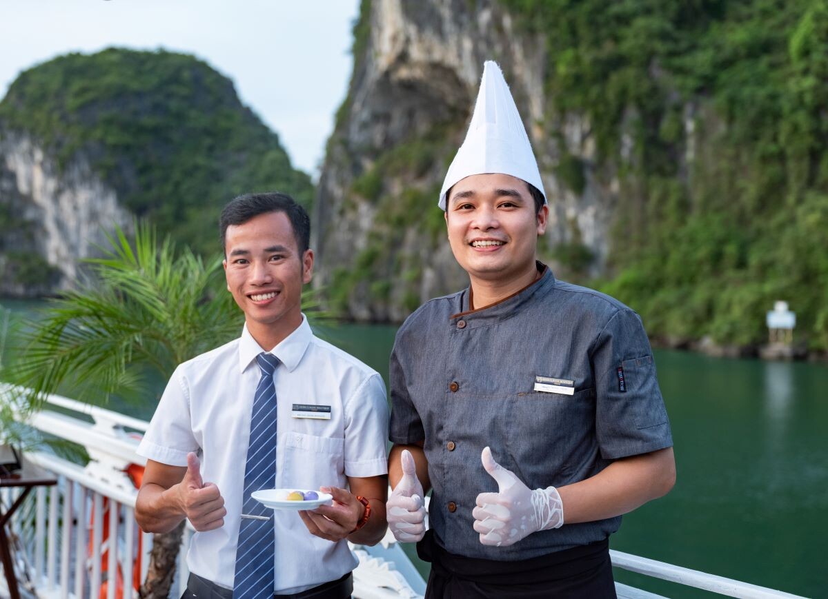 Launched in 2017, Hera Classic Boutique Cruise offers an intimate and elegant way to explore Halong Bay, perfectly suited to groups of up to 45 overnight guests. With 19 thoughtfully designed cabins ranging from 20 m² to 45 m², guests enjoy serene comfort in an elegant boutique setting. Each cabin is appointed with polished wood décor, spacious windows, and select suites featuring private terraces-all crafted for relaxation. Departing from Tuan Chau Marina, the cruise journey blends cultural touches, like traditional costume fashion shows, herbal foot baths, and floating rice cake cooking classes, with leisure activities such as sunset parties and Tai Chi on the sundeck. Meals are served in a large third-floor restaurant that frames Halong Bay views. Whether you're enjoying a Gala Dinner on deck or unwinding in your cozy cabin, Hera Classic Boutique Cruise delivers a boutique, culturally rich escape for those seeking both intimacy and discovery.