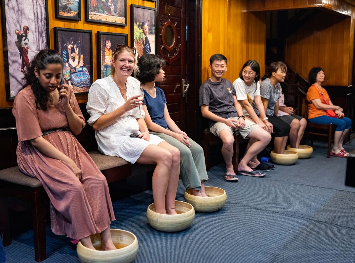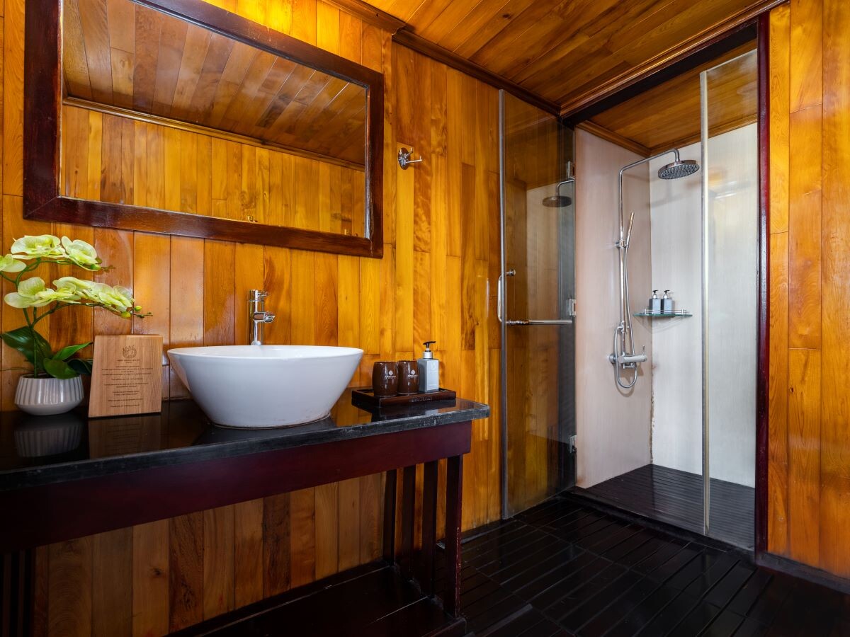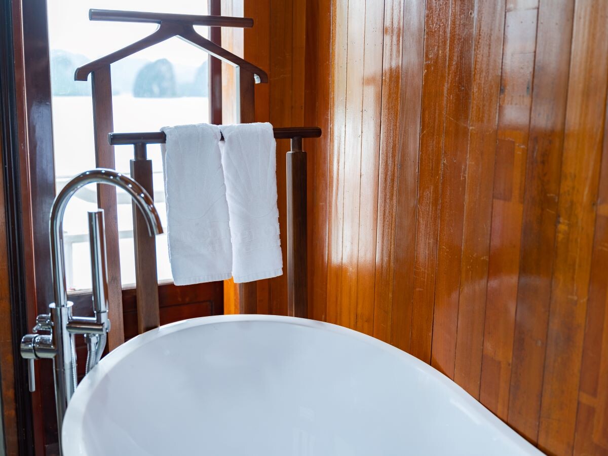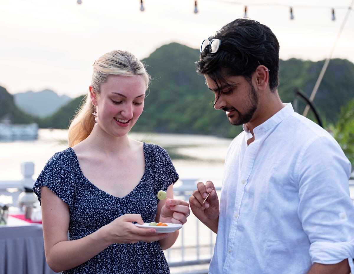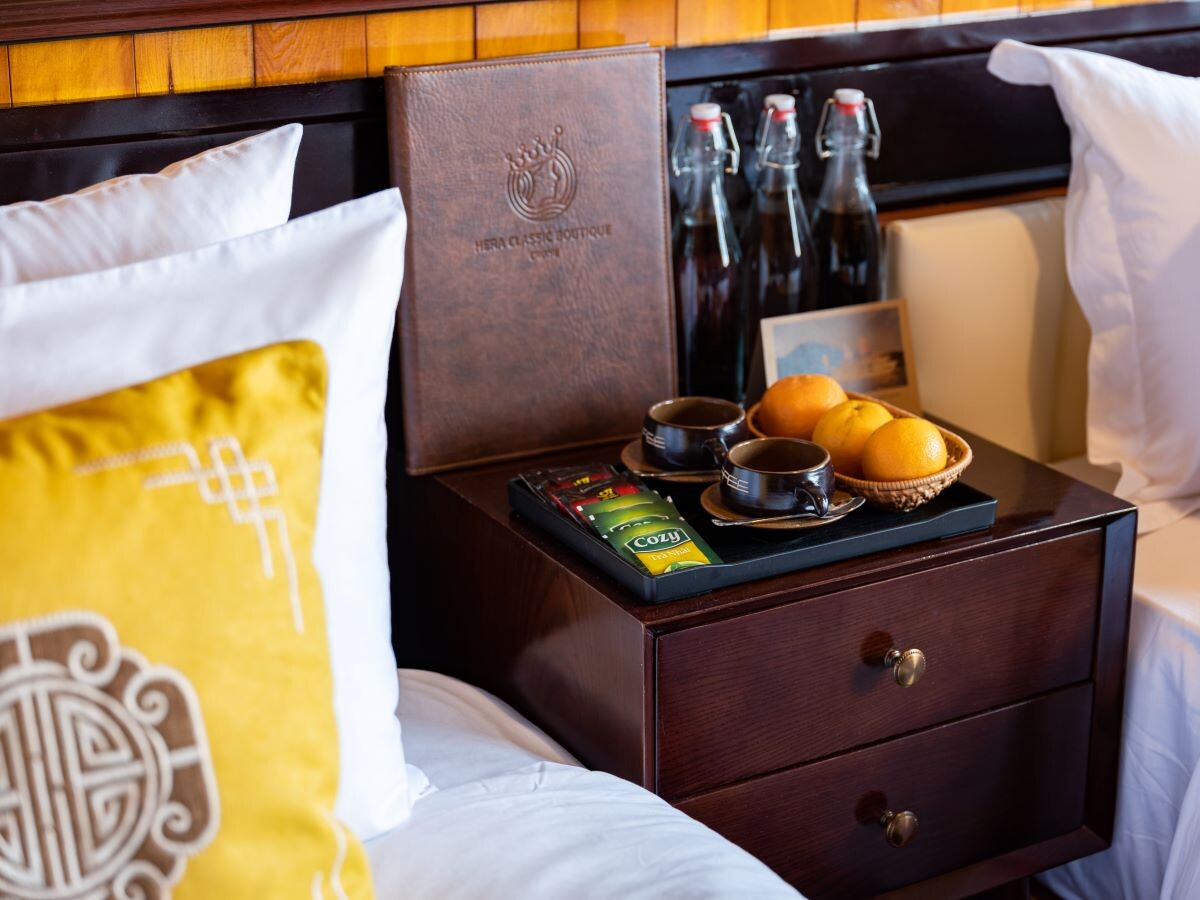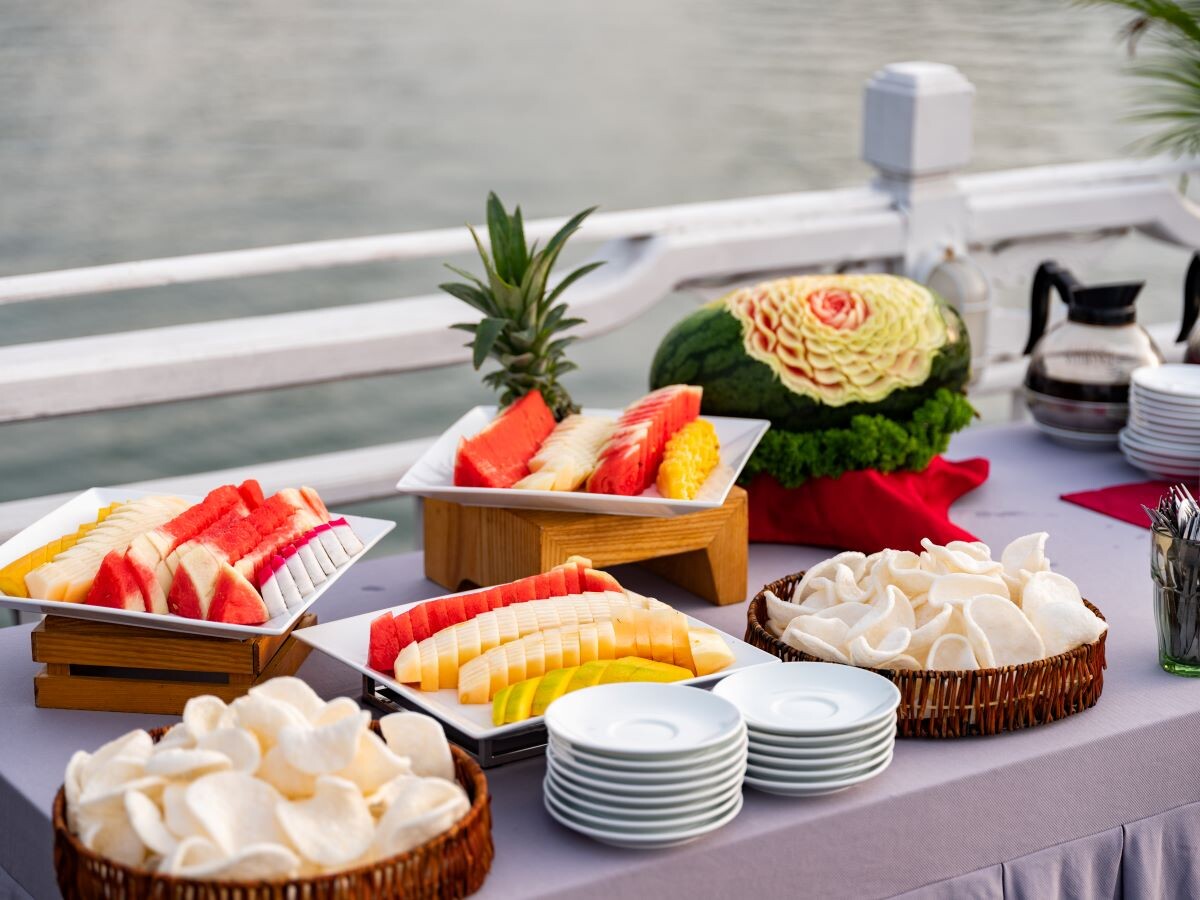 Launched in 2017, Hera Classic Boutique Cruise offers an intimate and elegant way to explore Halong Bay, perfectly suited to groups of up to 45 overnight guests. With 19 thoughtfully designed cabins ranging from 20 m² to 45 m², guests enjoy serene comfort in an elegant boutique setting. Each cabin is appointed with polished wood décor, spacious windows, and select suites featuring private terraces-all crafted for relaxation. Departing from Tuan Chau Marina, the cruise journey blends cultural touches, like traditional costume fashion shows, herbal foot baths, and floating rice cake cooking classes, with leisure activities such as sunset parties and Tai Chi on the sundeck. Meals are served in a large third-floor restaurant that frames Halong Bay views. Whether you're enjoying a Gala Dinner on deck or unwinding in your cozy cabin, Hera Classic Boutique Cruise delivers a boutique, culturally rich escape for those seeking both intimacy and discovery.