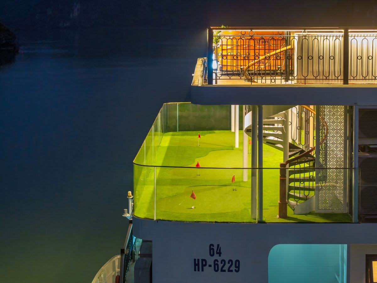 Launched in 2025, Indochine Grand Cruise by Indochina Sails is the latest masterpiece in the celebrated Indochine fleet, redefining 5-star cruising in Lan Ha Bay and Cat Ba Island. Departing from Tuan Chau Marina, this elegant 68-meter vessel features 32 luxurious cabins for up to 80 guests, each with a private balcony and interiors adorned with handcrafted Indochine artistry. Cabin sizes range from 28m² to 58m², providing both comfort and sophistication. Guests can indulge in world-class facilities, including a sky bar, infinity pool with jacuzzi jets, mini golf course, spa & massage area, and Tonkin Restaurant serving fine Indochina-inspired cuisine. The cruise’s exclusive route showcases the pristine beauty of Dark & Bright Cave, Viet Hai Village, and Trung Trang Cave, offering the perfect fusion of natural wonders and cultural discovery.