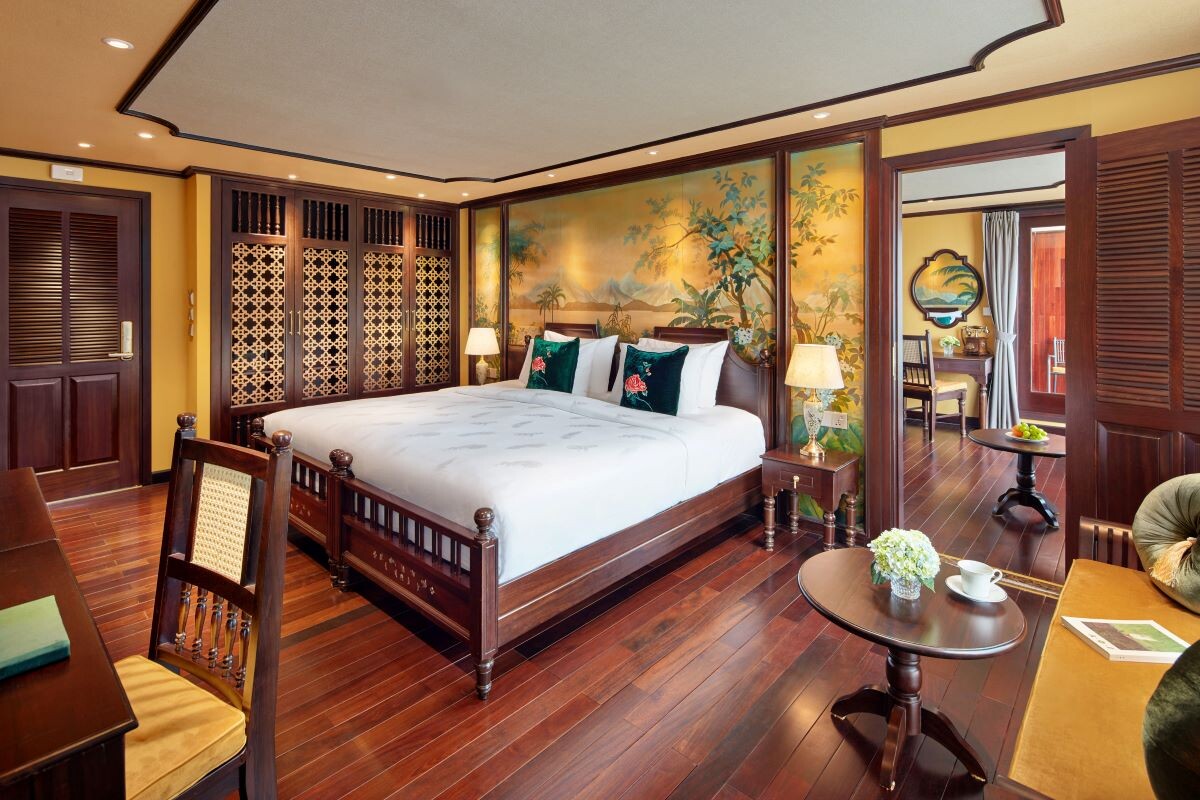 Launched in August 2023, Indochine Premium is the crown jewel of Ha Long Bay’s luxury cruises, redefining indulgent travel. With 37 meticulously designed cabins ranging from 34m² to an expansive 115m², the vessel blends traditional Vietnamese artistry with contemporary sophistication. Each cabin offers a private balcony, refined interiors, and high-end amenities for an intimate retreat.