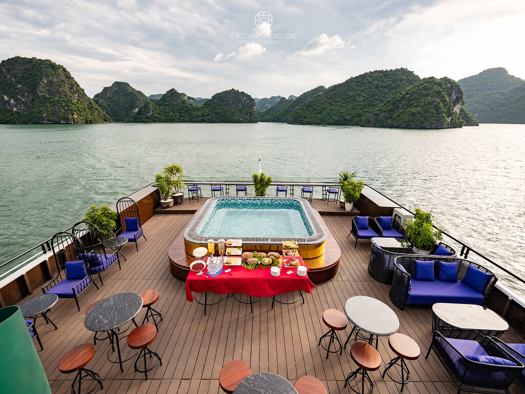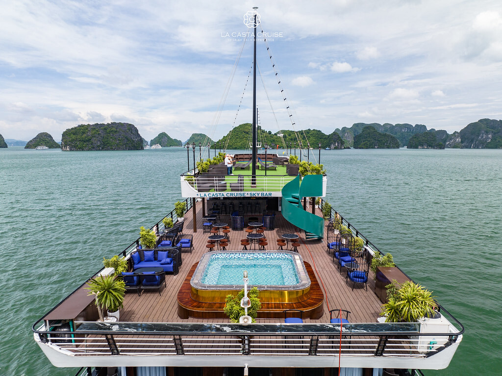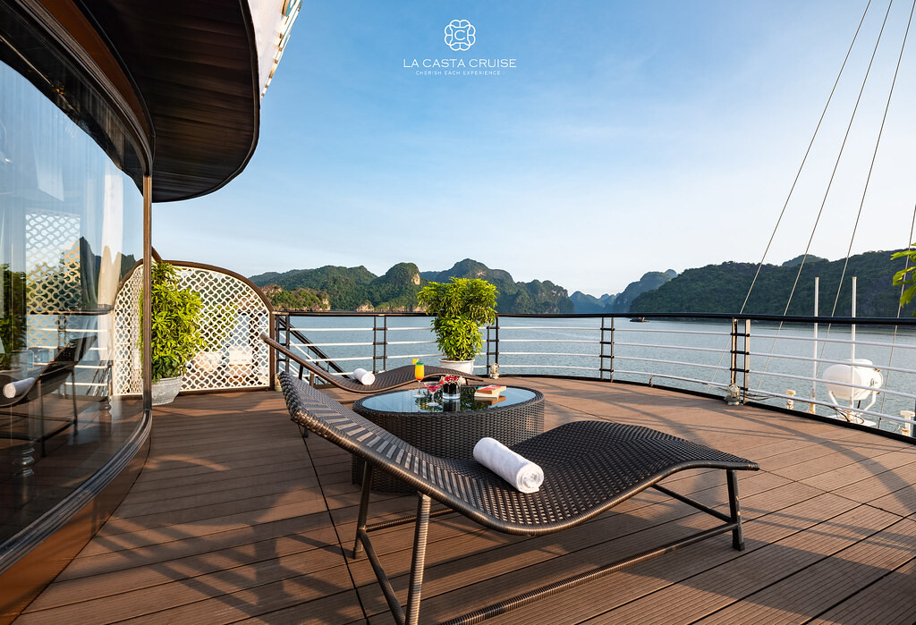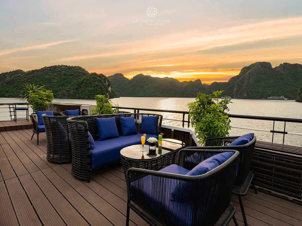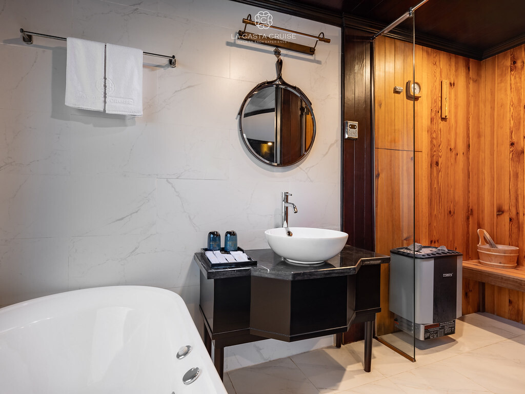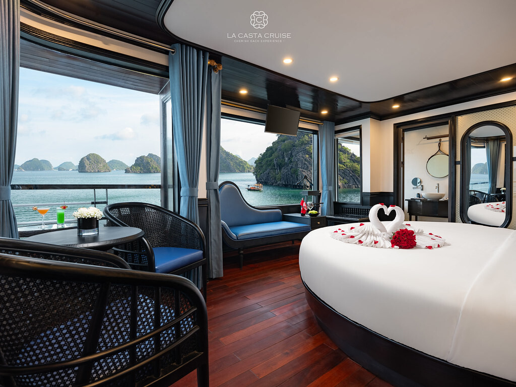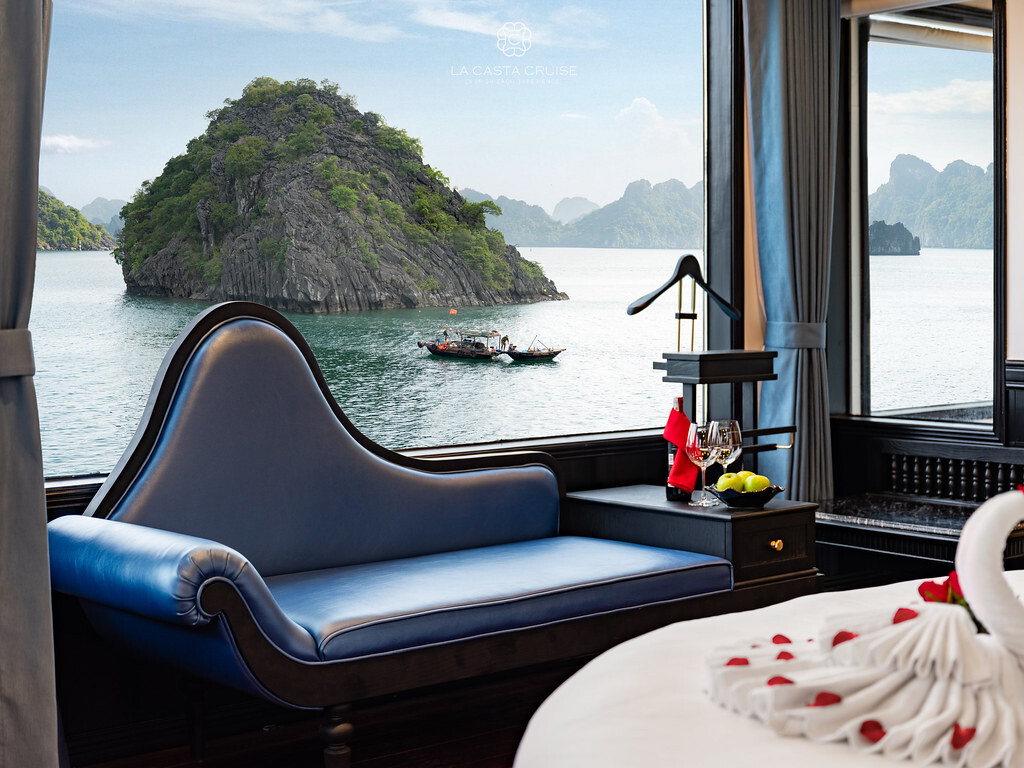 Launched in May 2020, the La Casta Cruise is a modern luxury vessel offering high-class overnight journeys through Lan Ha Bay. With 22 spacious suites ranging from 30m² to 70m², all featuring private balconies or terraces and sea-view bathtubs or jacuzzis, the ship ensures privacy and comfort for every guest. The maximum overnight capacity is 66 passengers, making it ideal for both couples and small groups seeking premium experiences without the crowds. Highlights include its elegant restaurant serving fine Vietnamese and international cuisine, a panoramic sundeck for sunset views, and an indulgent spa & massage service. With a blend of Italian-inspired luxury and Vietnamese hospitality, La Casta Cruise promises a stylish and memorable exploration of UNESCO-listed seascapes.