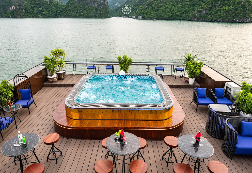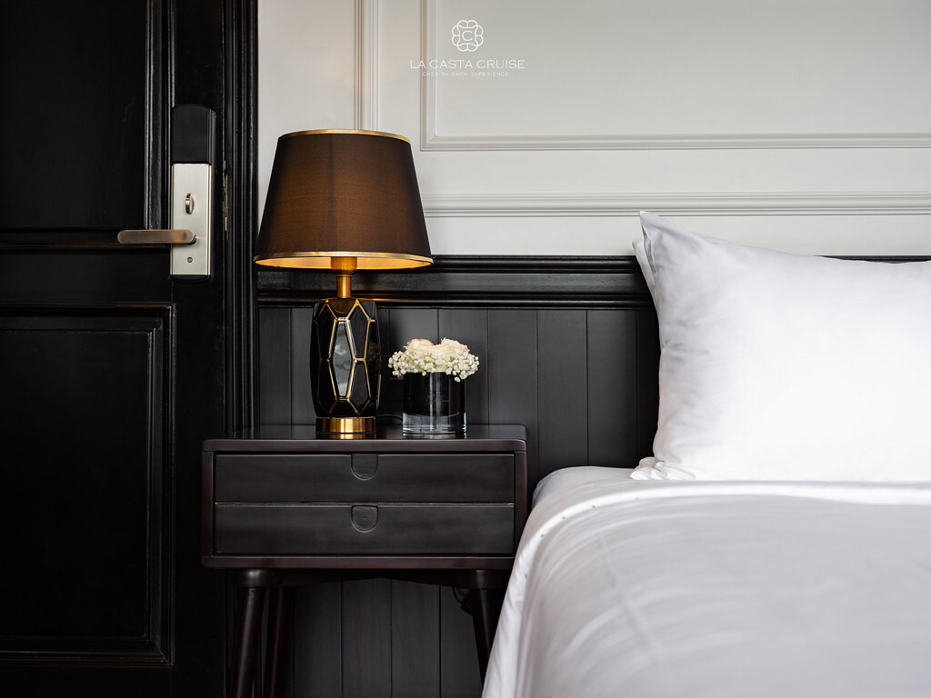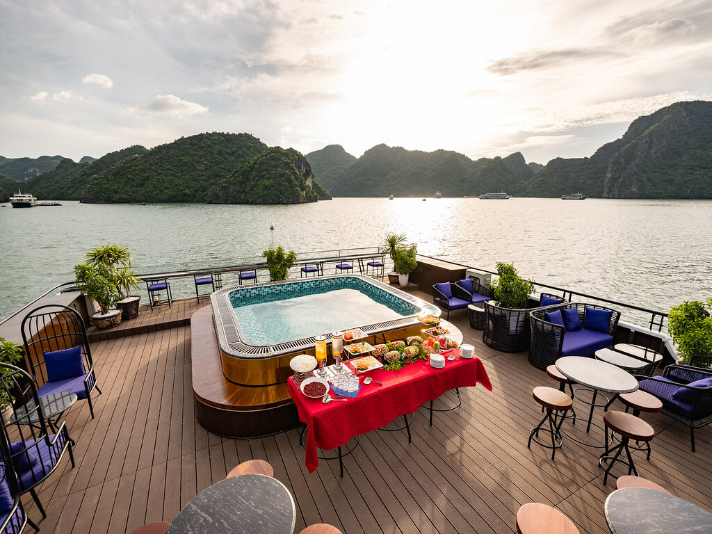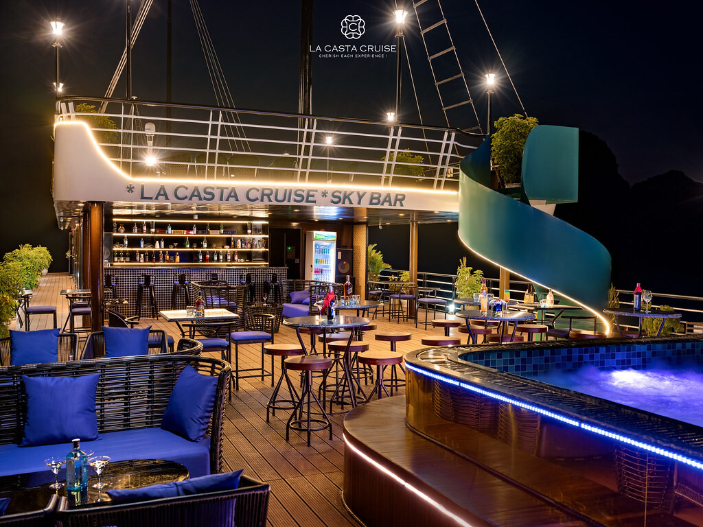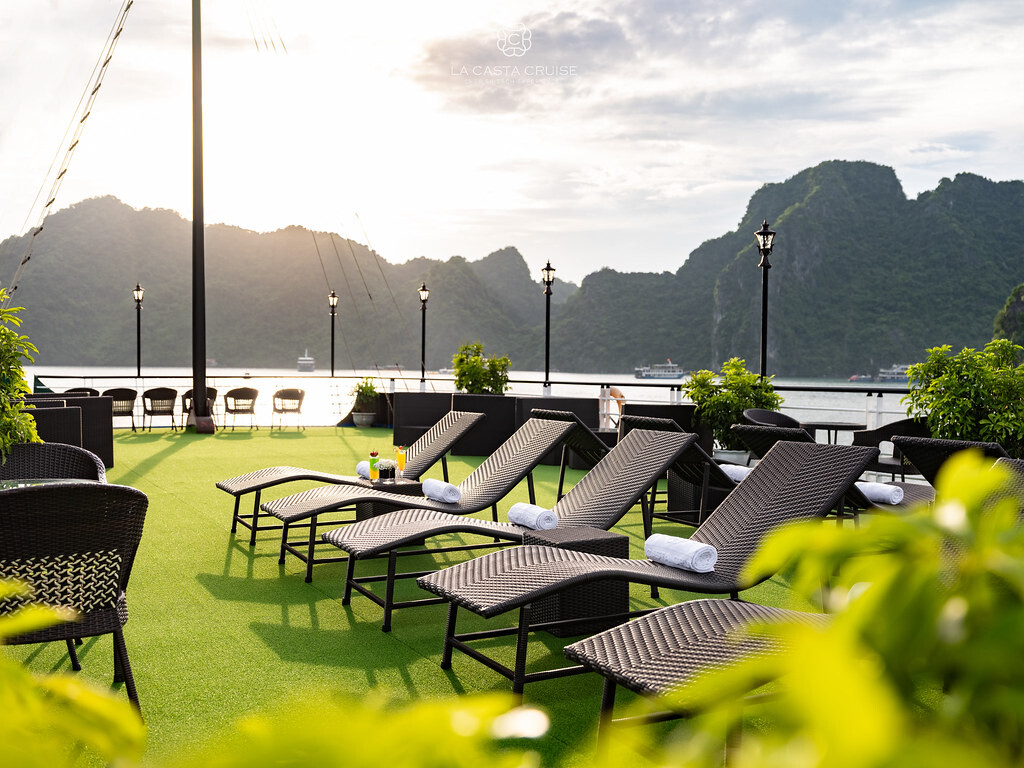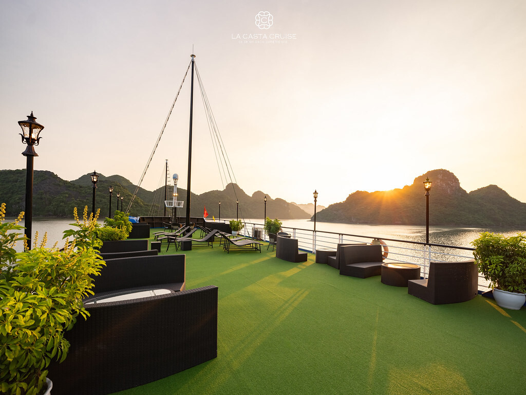 Launched in May 2020, the La Casta Cruise is a modern luxury vessel offering high-class overnight journeys through Lan Ha Bay. With 22 spacious suites ranging from 30m² to 70m², all featuring private balconies or terraces and sea-view bathtubs or jacuzzis, the ship ensures privacy and comfort for every guest. The maximum overnight capacity is 66 passengers, making it ideal for both couples and small groups seeking premium experiences without the crowds. Highlights include its elegant restaurant serving fine Vietnamese and international cuisine, a panoramic sundeck for sunset views, and an indulgent spa & massage service. With a blend of Italian-inspired luxury and Vietnamese hospitality, La Casta Cruise promises a stylish and memorable exploration of UNESCO-listed seascapes.