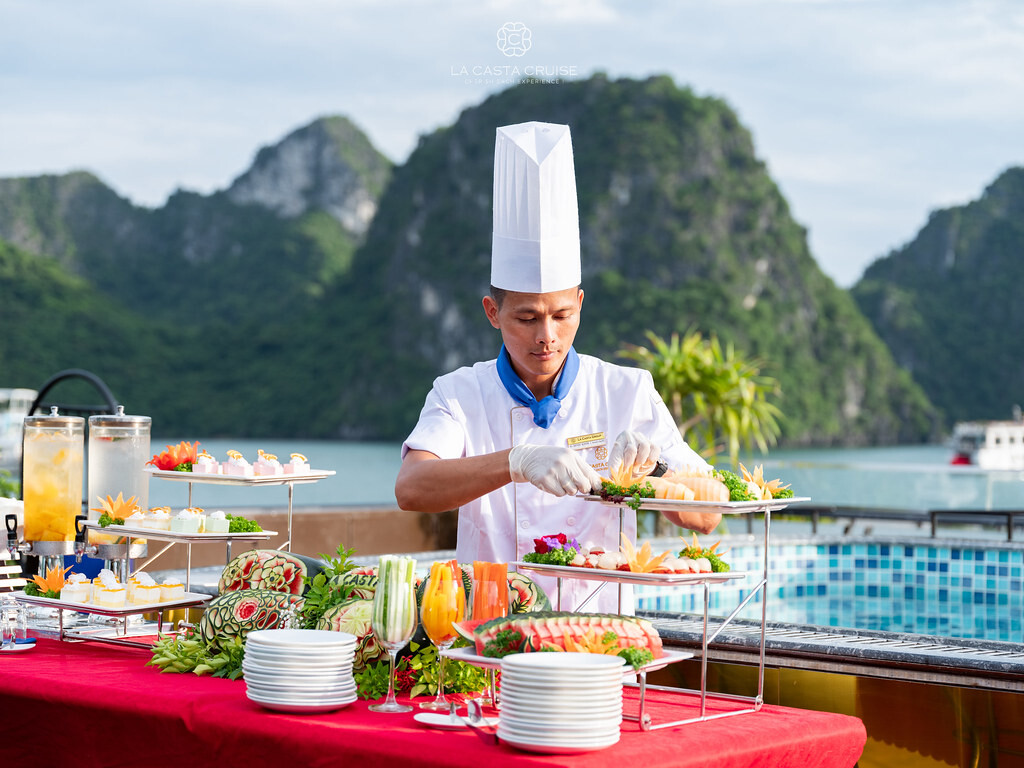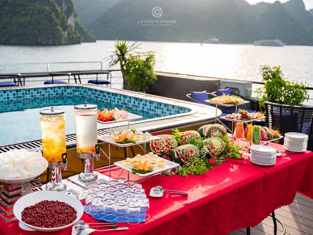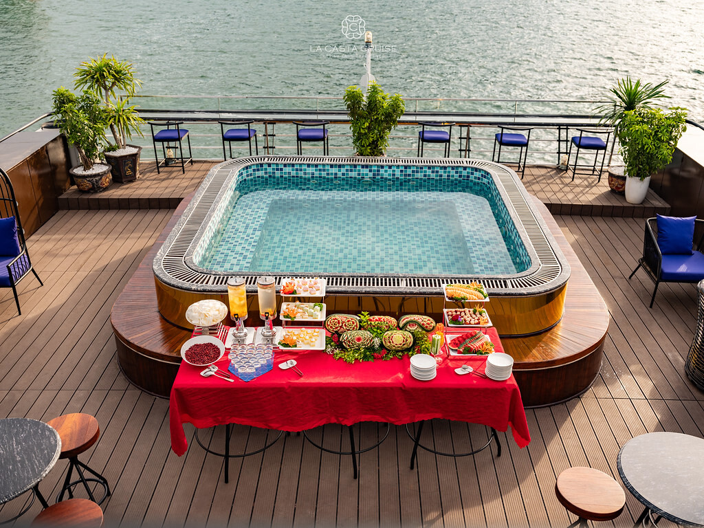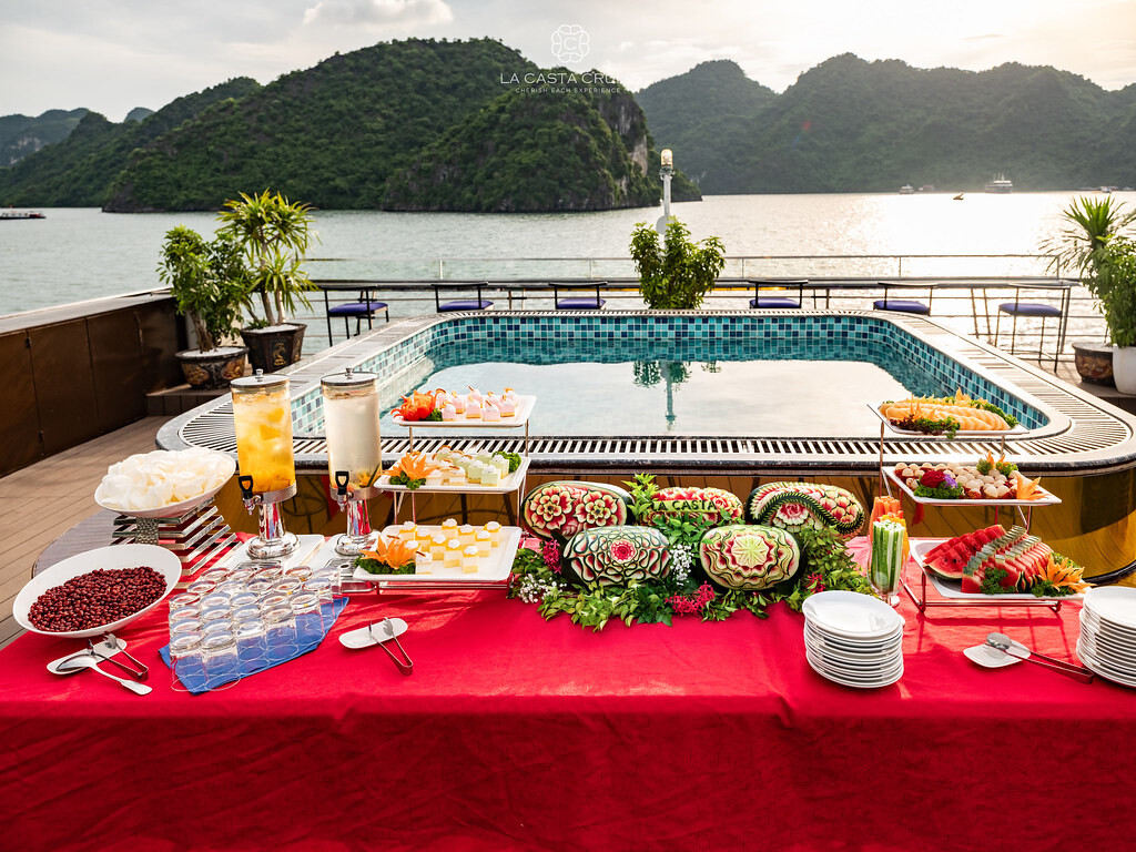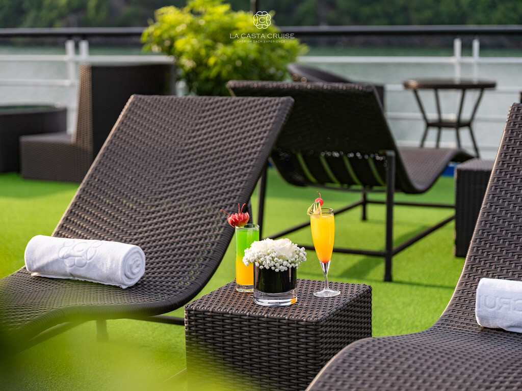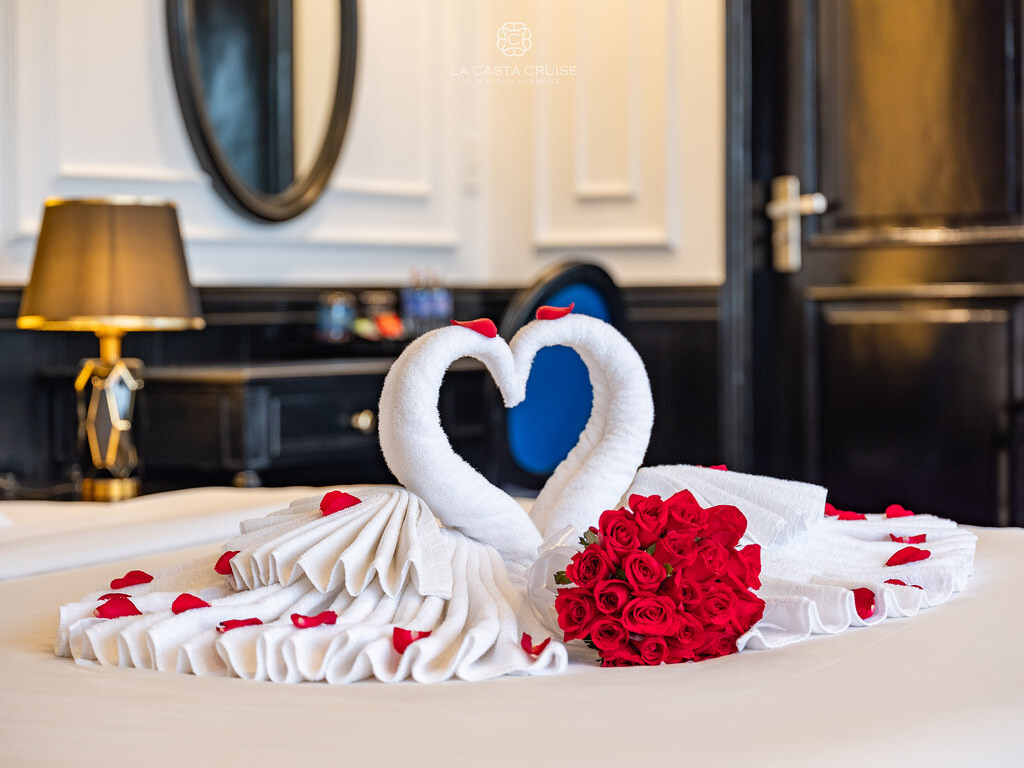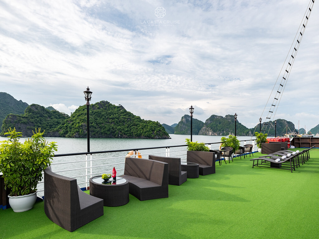 Launched in May 2020, the La Casta Cruise is a modern luxury vessel offering high-class overnight journeys through Lan Ha Bay. With 22 spacious suites ranging from 30m² to 70m², all featuring private balconies or terraces and sea-view bathtubs or jacuzzis, the ship ensures privacy and comfort for every guest. The maximum overnight capacity is 66 passengers, making it ideal for both couples and small groups seeking premium experiences without the crowds. Highlights include its elegant restaurant serving fine Vietnamese and international cuisine, a panoramic sundeck for sunset views, and an indulgent spa & massage service. With a blend of Italian-inspired luxury and Vietnamese hospitality, La Casta Cruise promises a stylish and memorable exploration of UNESCO-listed seascapes.