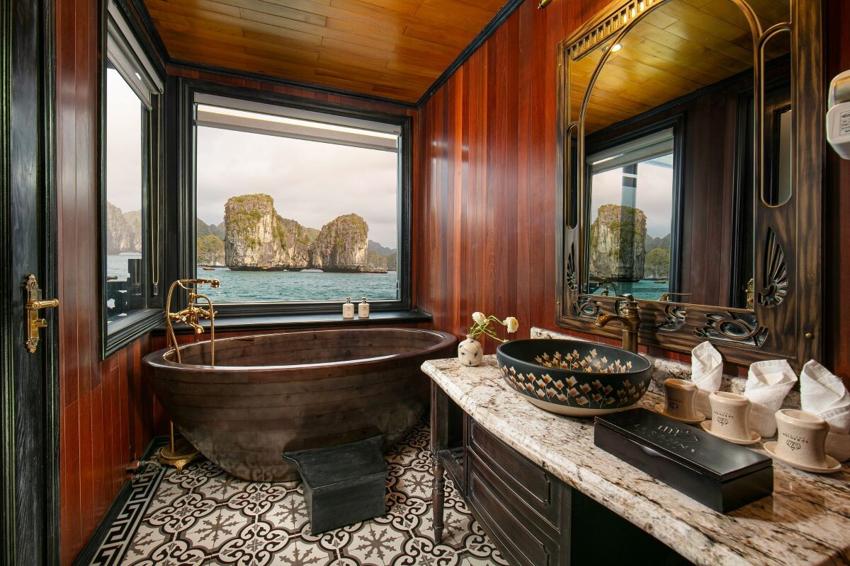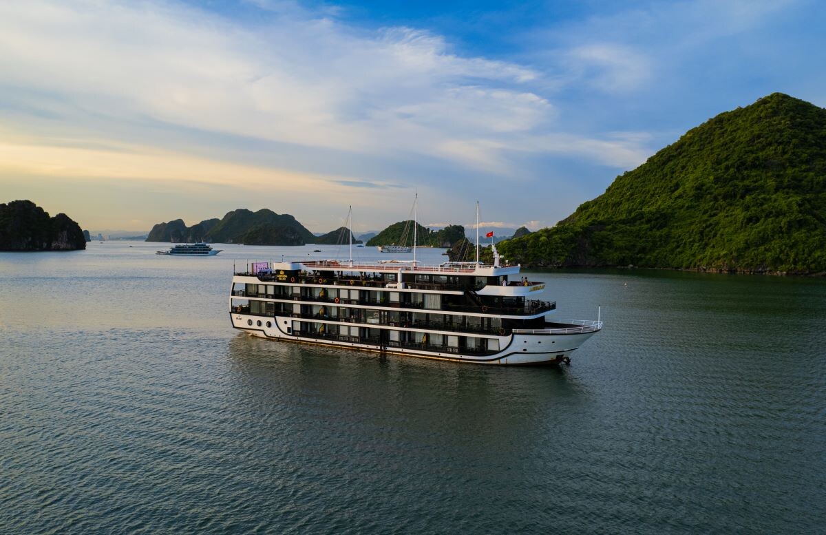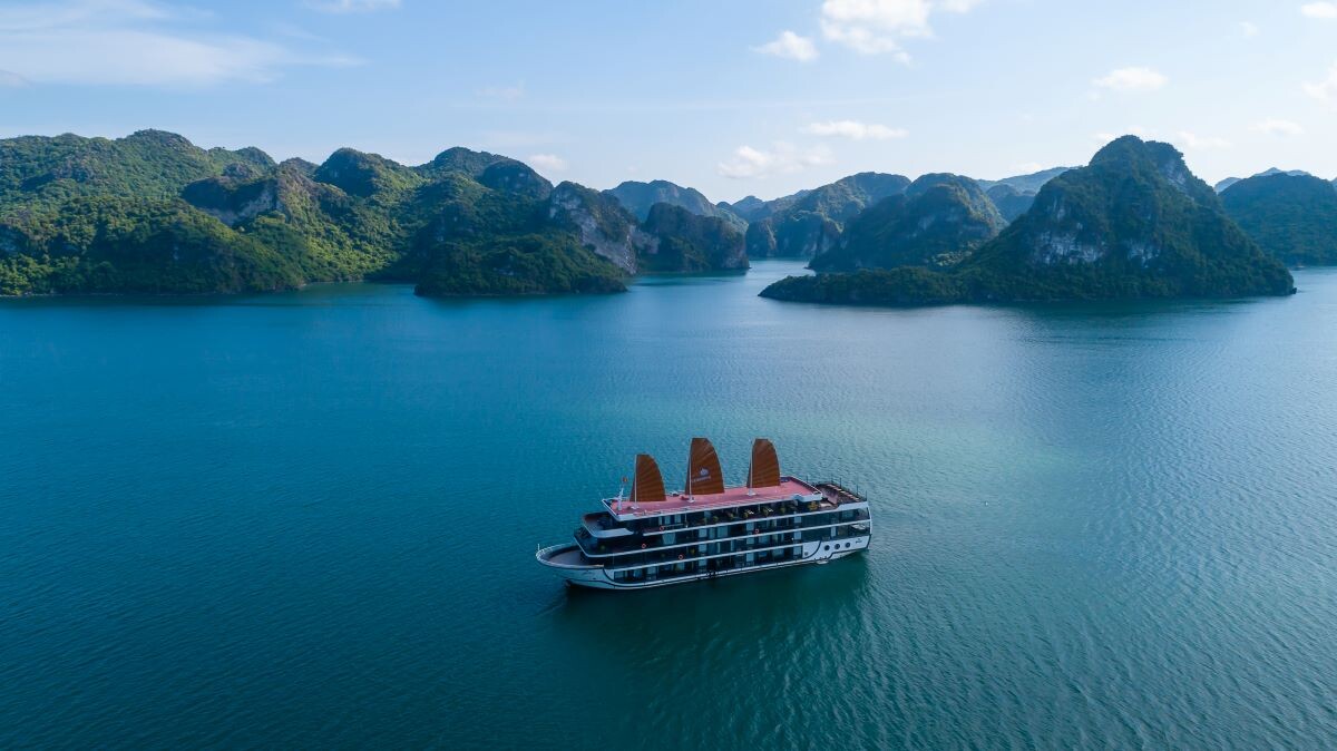 La Regina Grand Cruise is a refined 5-star luxury overnight cruise operating in the tranquil waters of Lan Ha Bay and Cat Ba Islands, departing from Tuan Chau Marina. Launched in 2019, the cruise features 27 spacious cabins ranging from 45m² to 135m², all designed with private balconies and elegant bathtubs, offering exceptional comfort and privacy.
