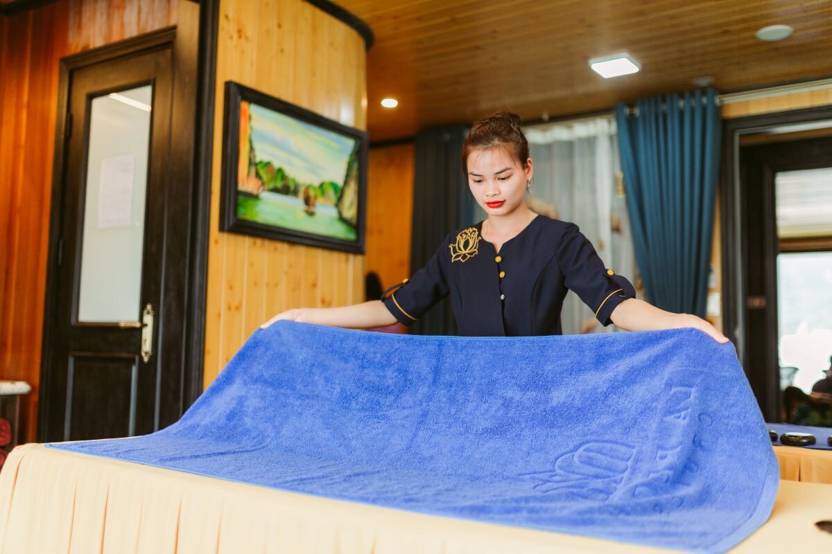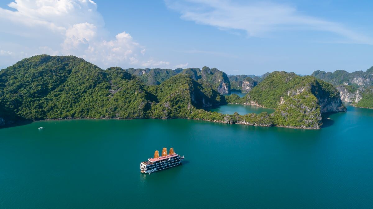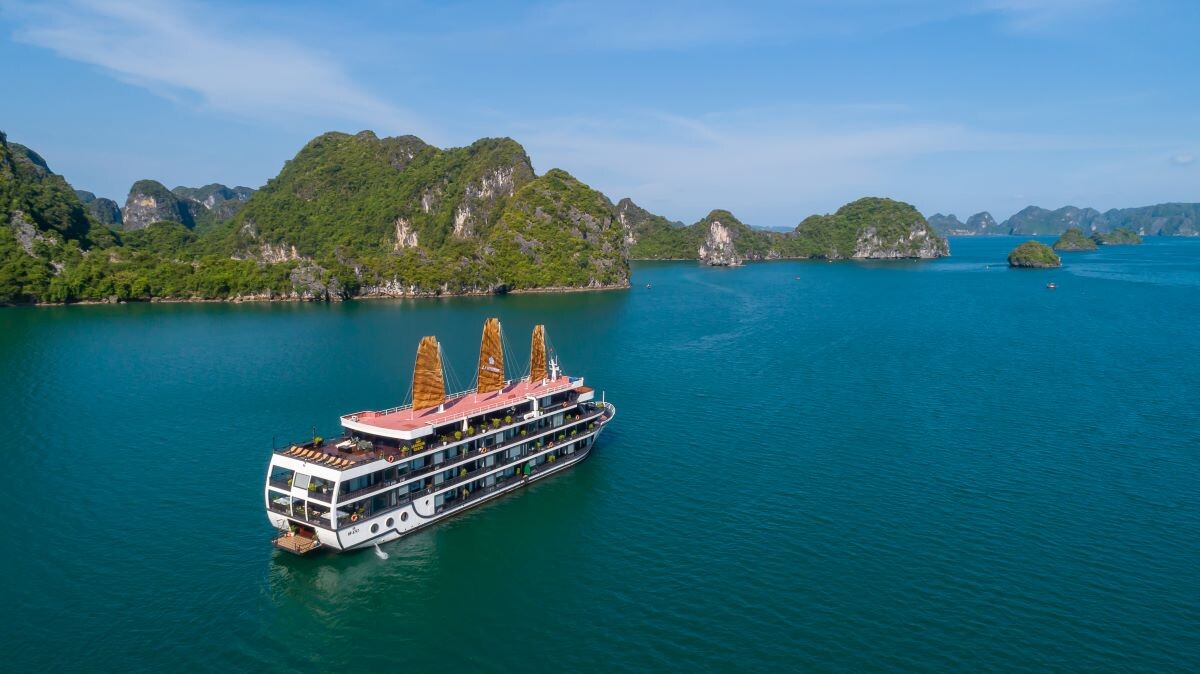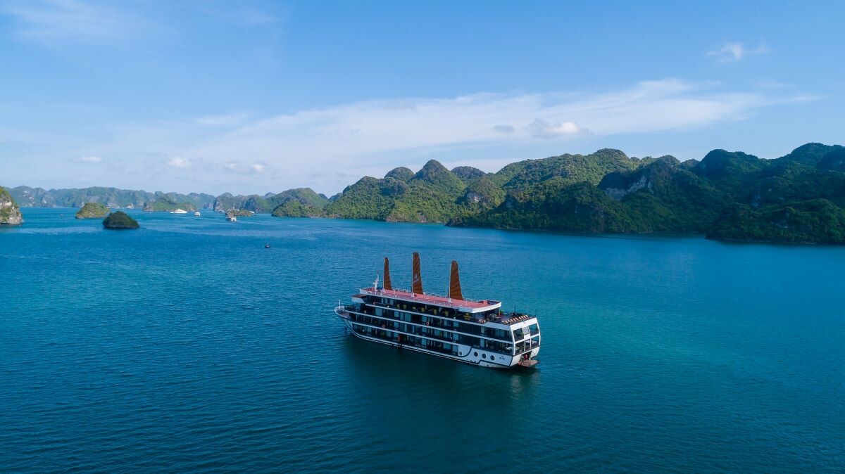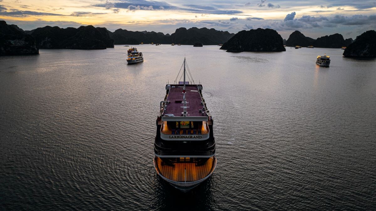 With a maximum capacity of 58 guests, La Regina Grand Cruise delivers an intimate and relaxed cruising experience, ideal for couples, families, and travelers seeking peaceful luxury away from crowded routes. Combining classic Indochine-inspired design with modern amenities, the cruise focuses on personalized service, fine dining, and carefully curated excursions to iconic destinations such as Dark & Bright Cave, Viet Hai Village, Ba Trai Dao Beach, and Trung Trang Cave.