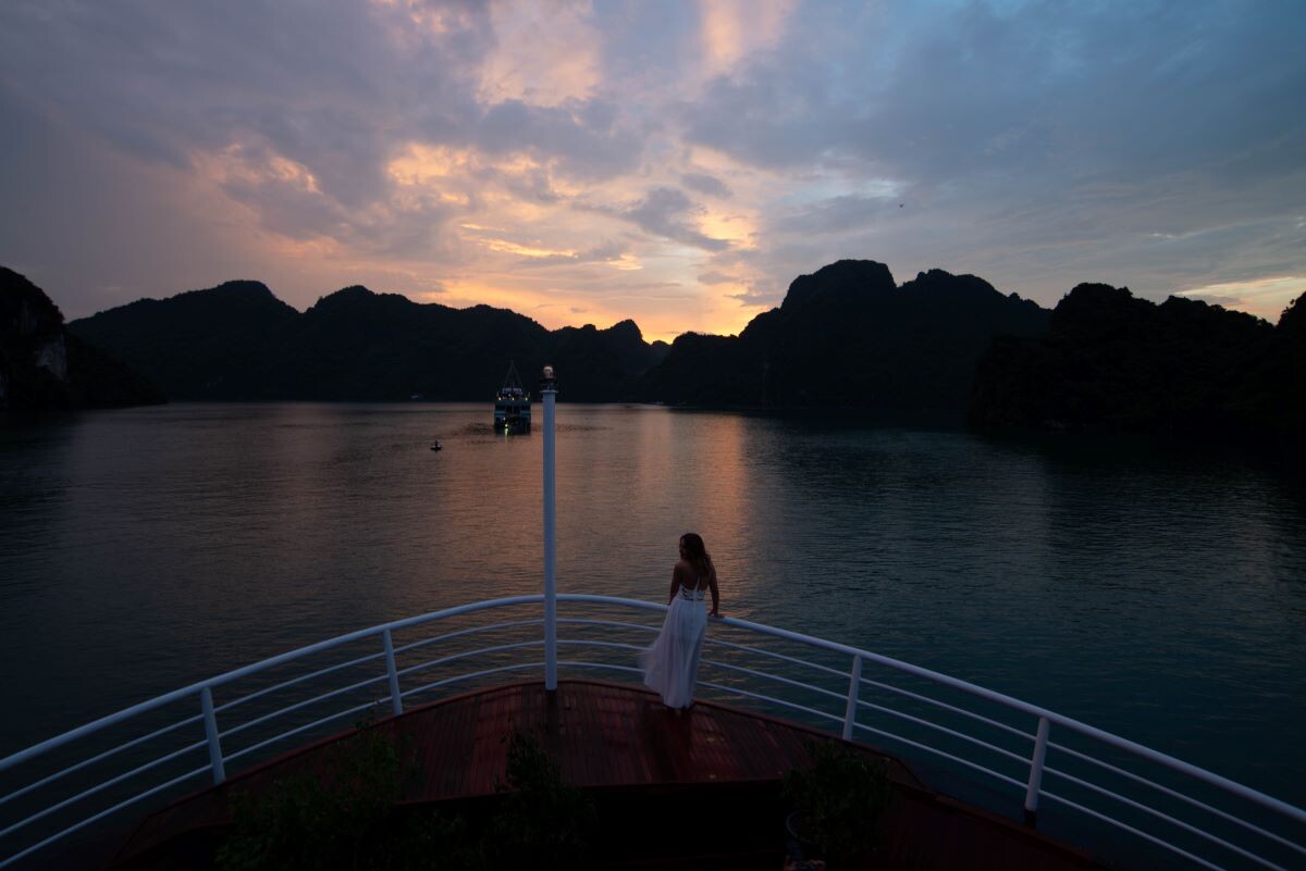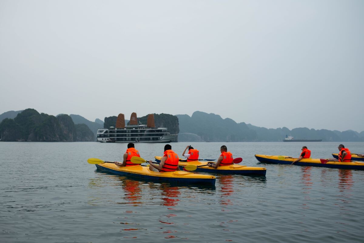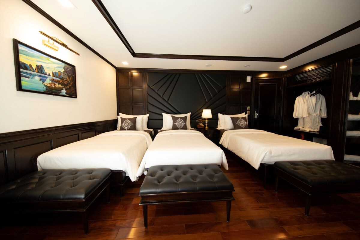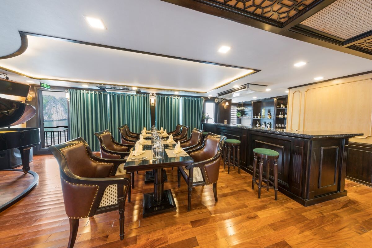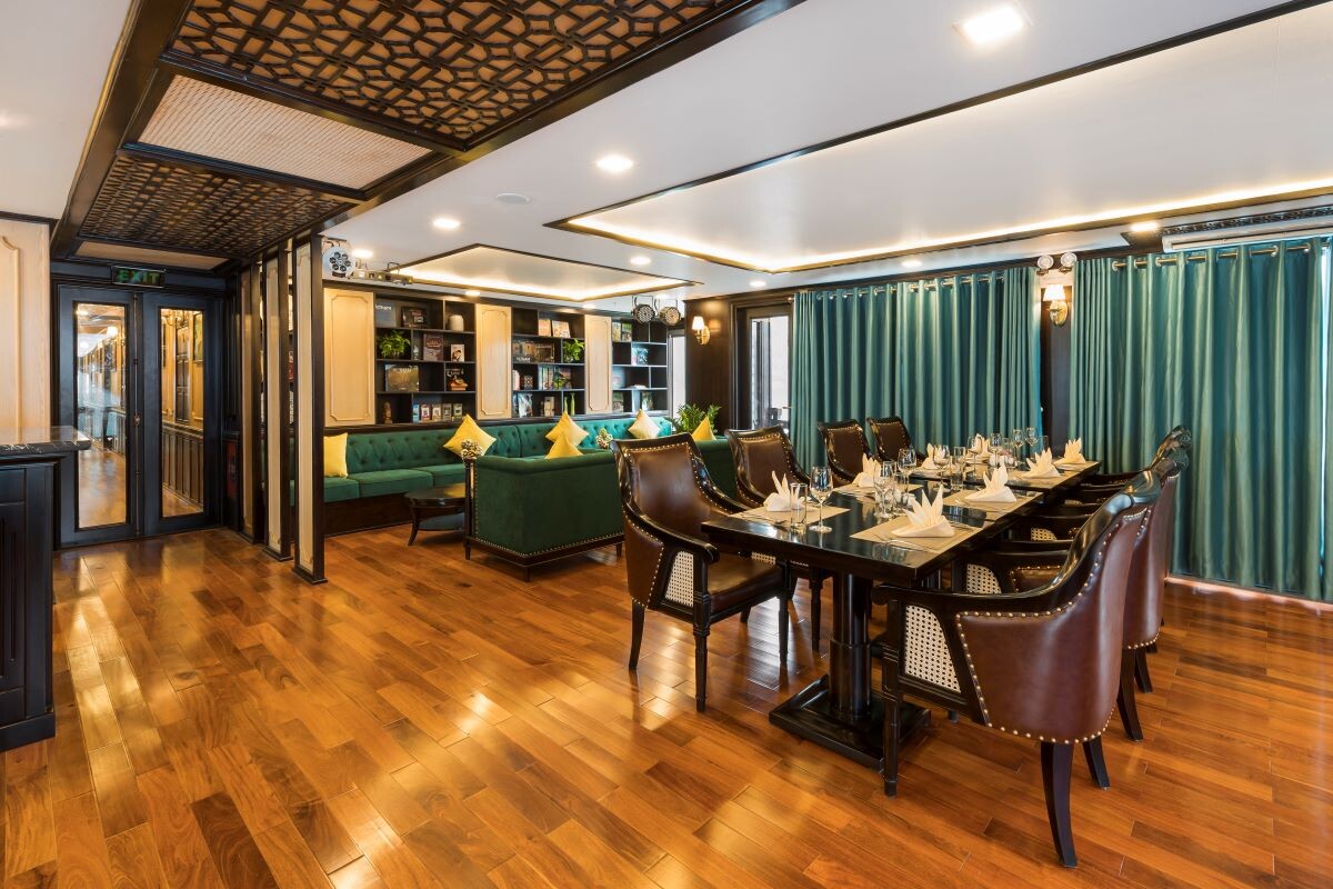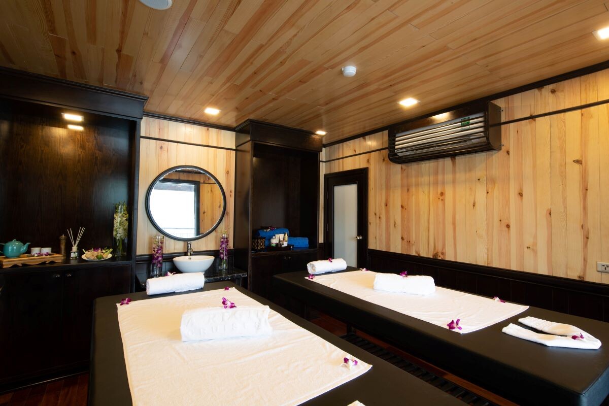 Launched in 2018, La Regina Legend Cruise, known as the “Queen of the Bays”, is one of the most stylish luxury cruises in Lan Ha Bay. With a length of over 62m and 27 lavish suites ranging from 45m² to 135m², the vessel is designed to blend the elegance of Indochine heritage with modern comforts, offering an upscale floating resort experience for up to 58 guests. All suites feature private balconies with full sea views, bathtubs, and deluxe amenities. The Queen Regent Suite (135m²) is among the largest and most luxurious cabins in Halong and Lan Ha Bay. Facilities include two restaurants, bars, spa & jacuzzi, conference rooms, sundeck, and butler service for the highest suite category. Departing from Tuan Chau Marina, La Regina Legend sails exclusive routes through Lan Ha Bay and Cat Ba Island, with highlights such as the Dark & Bright Cave, the cultural Viet Hai Village, the pristine Ba Trai Dao Beach, and the mysterious Trung Trang Cave. Guests enjoy kayaking, bamboo boat rides, cooking demonstrations, tai chi, tea ceremonies, and evening entertainment - perfectly balancing relaxation, culture, and adventure.