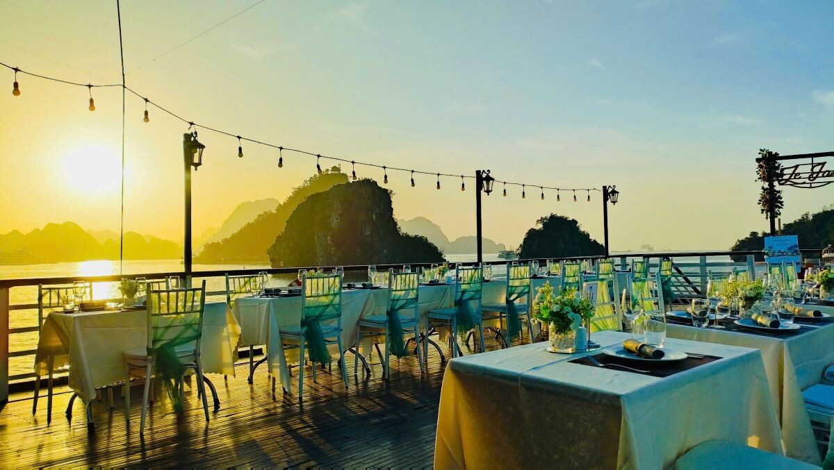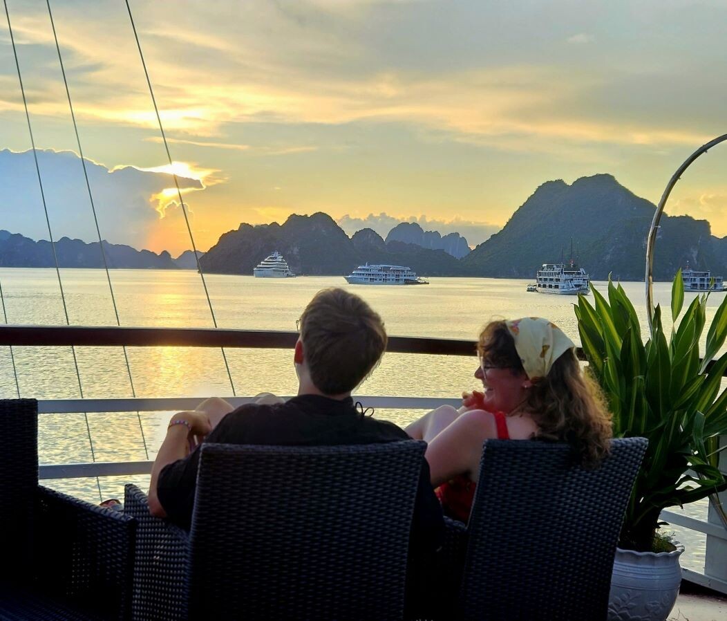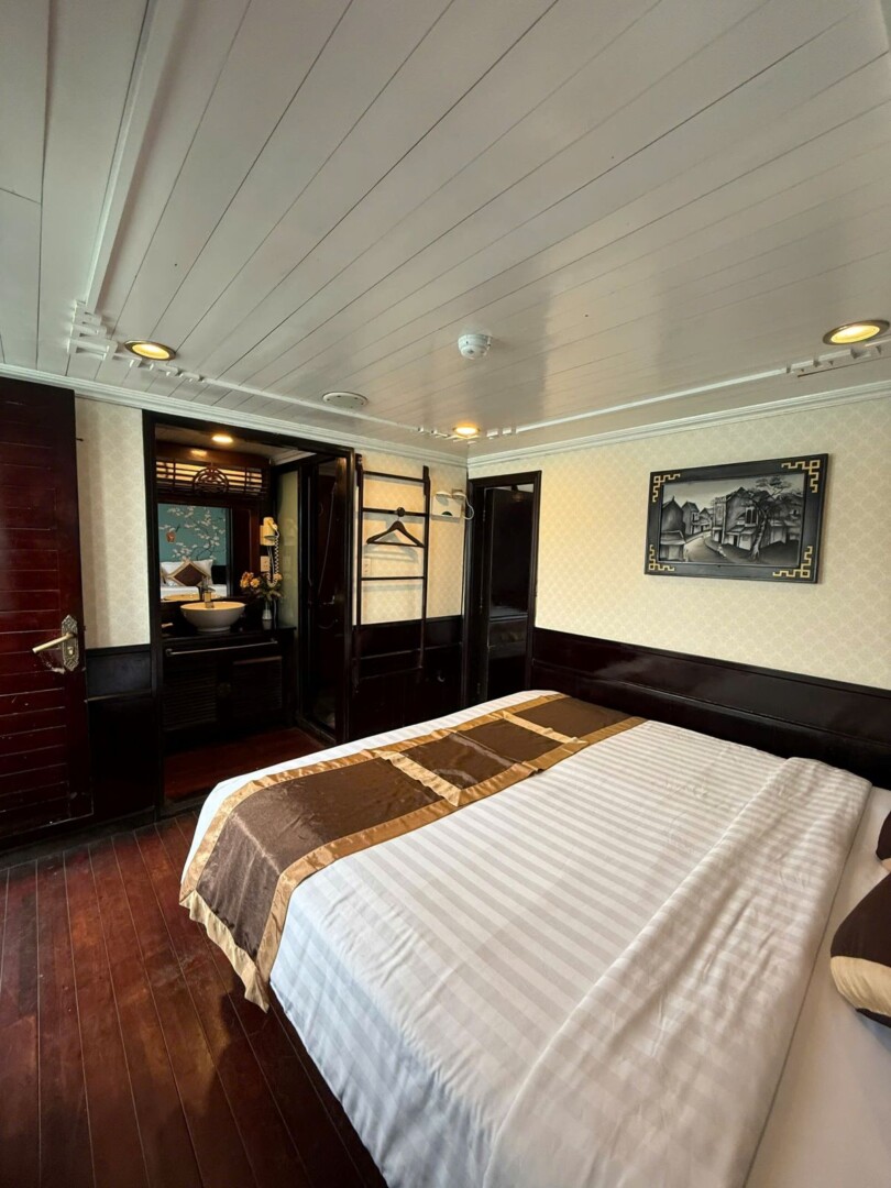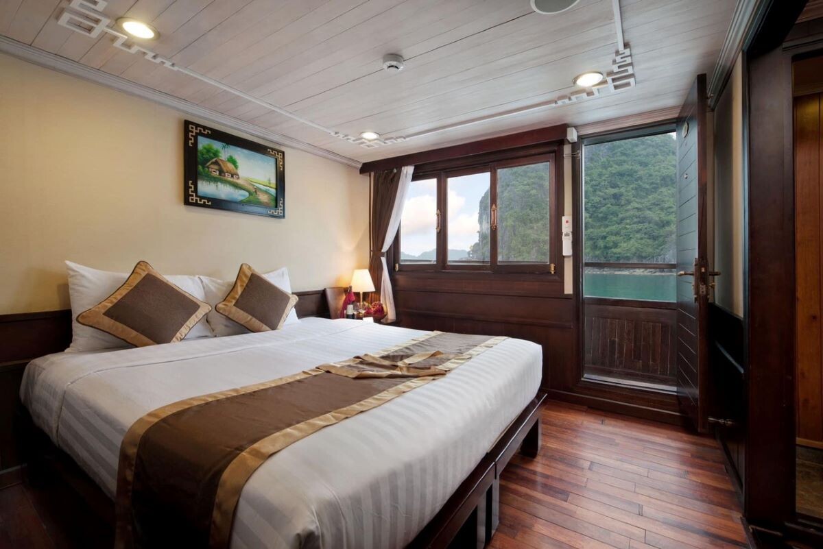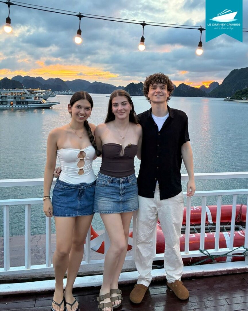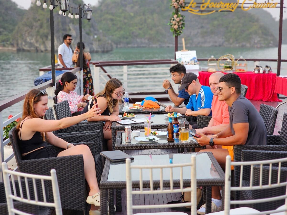 The Le Journey Classic Cruise offers an affordable way to discover the stunning beauty of Halong Bay and Lan Ha Bay. With a total of 17 cabins (Deluxe Ocean View on the first deck and Executive Cabins with private balconies on the second deck), the cruise can accommodate up to 50 overnight guests (including children). Each cabin averages 14m², designed in a simple, classic style with essential amenities to ensure guest comfort. Perfect for couples, families, and small groups, Le Journey Classic Cruise focuses on creating a cozy atmosphere, guided excursions, and friendly service-delivering memorable experiences at a reasonable price. Guests can expect visits to highlights like Sung Sot Cave, Ti Top Island, Luon Cave, Trinh Nu Cave, Ba Trai Dao Beach, and the Pearl Farm.