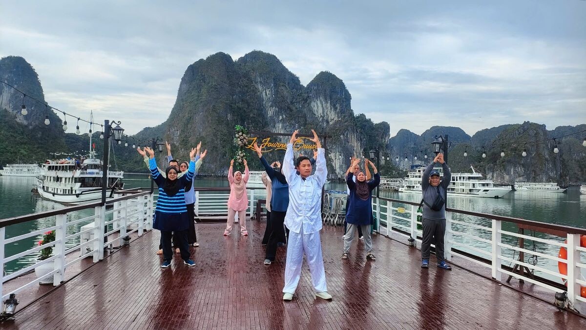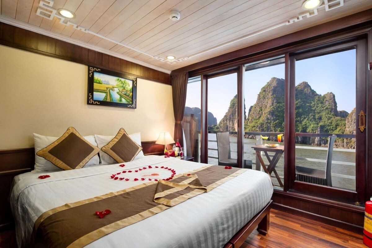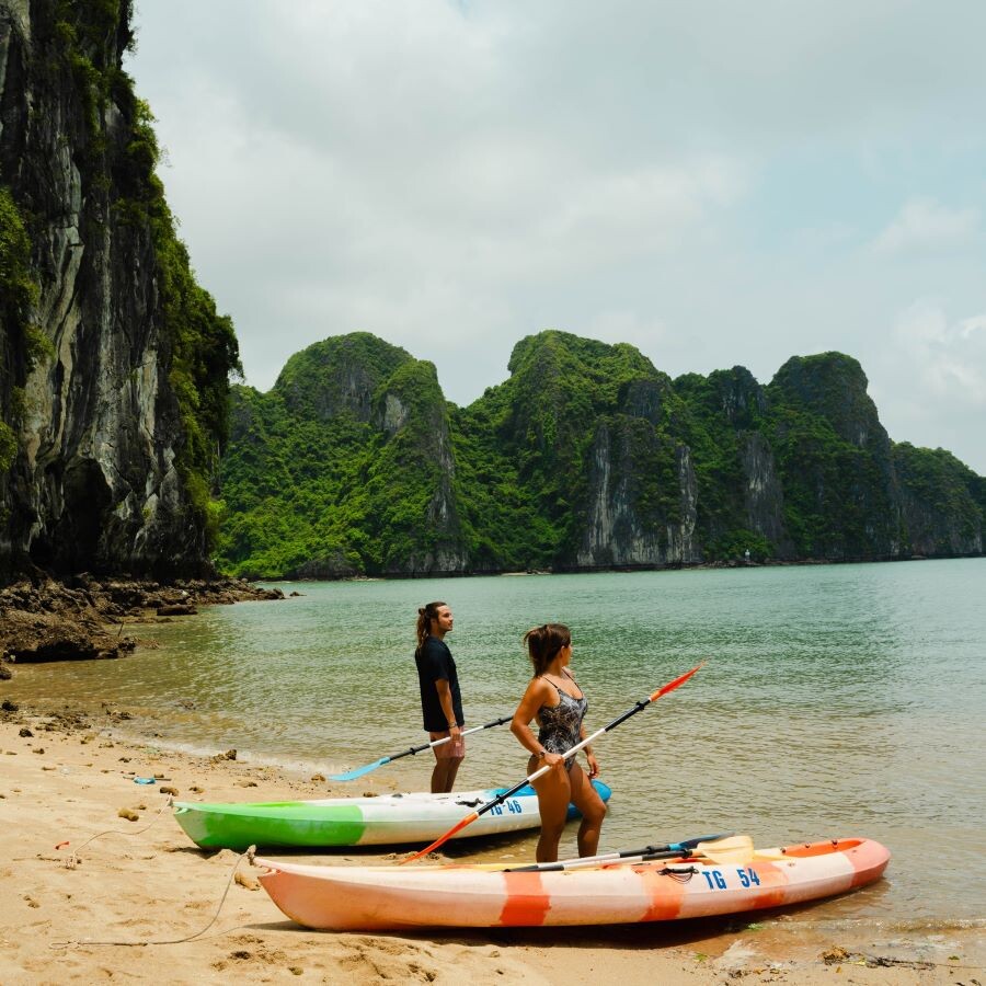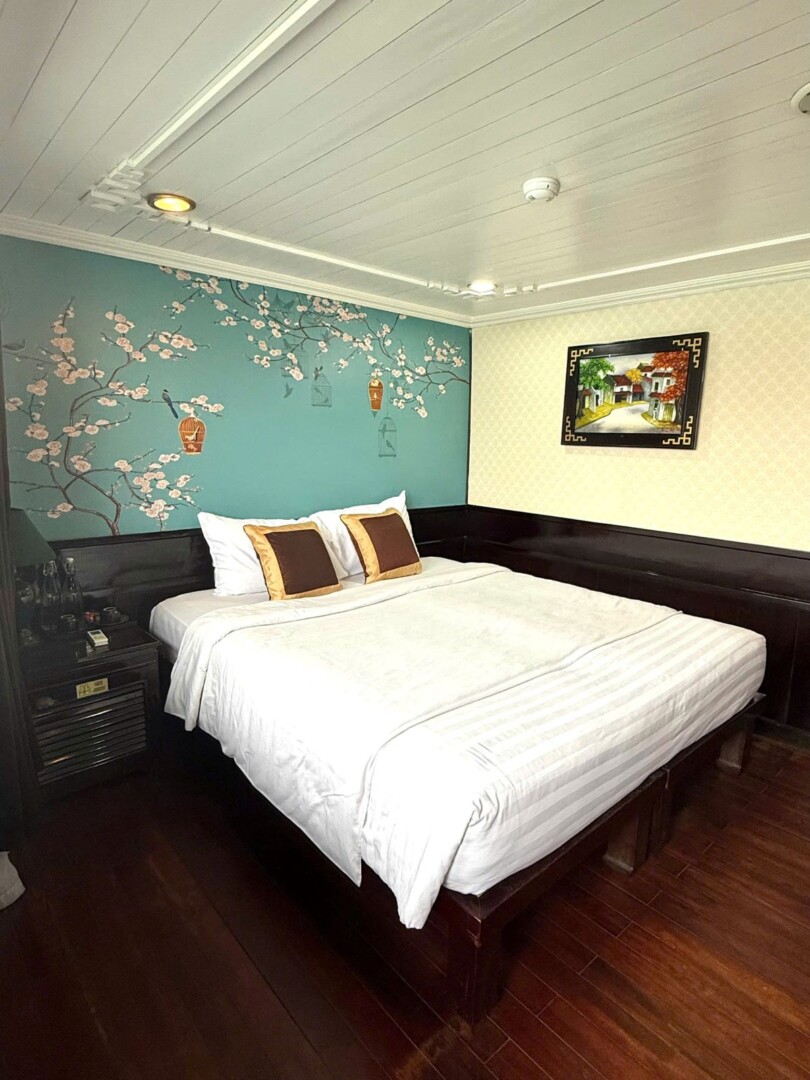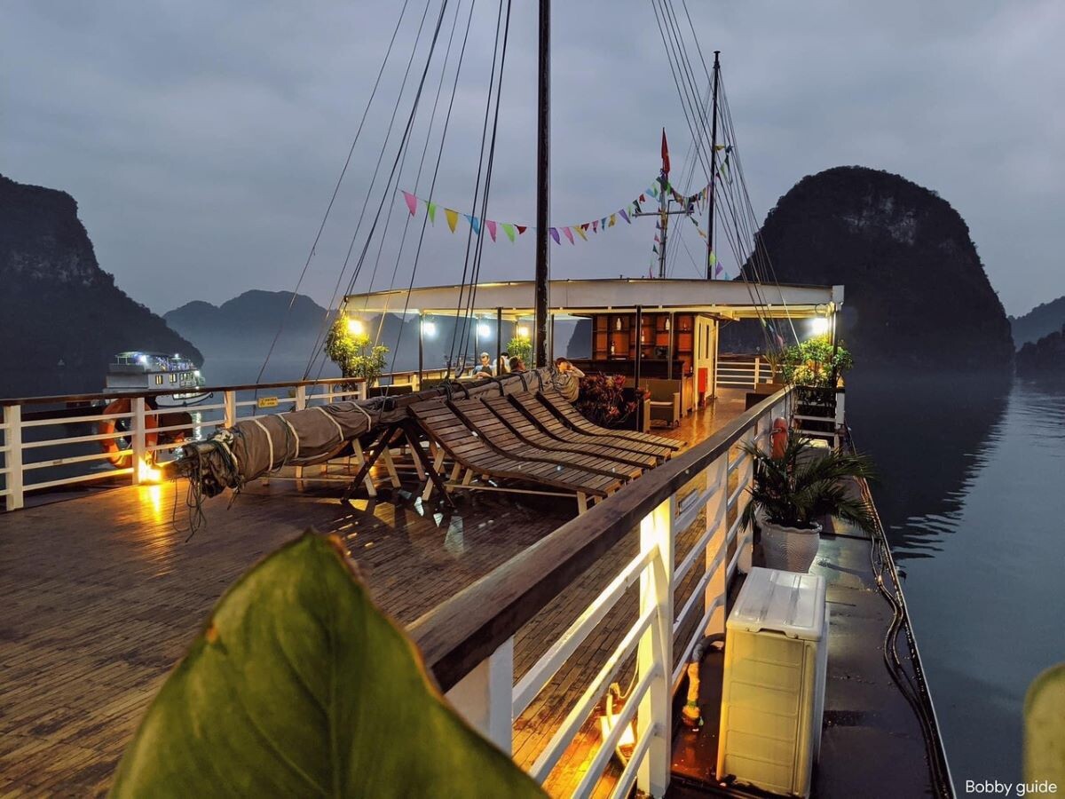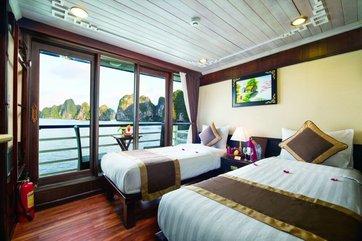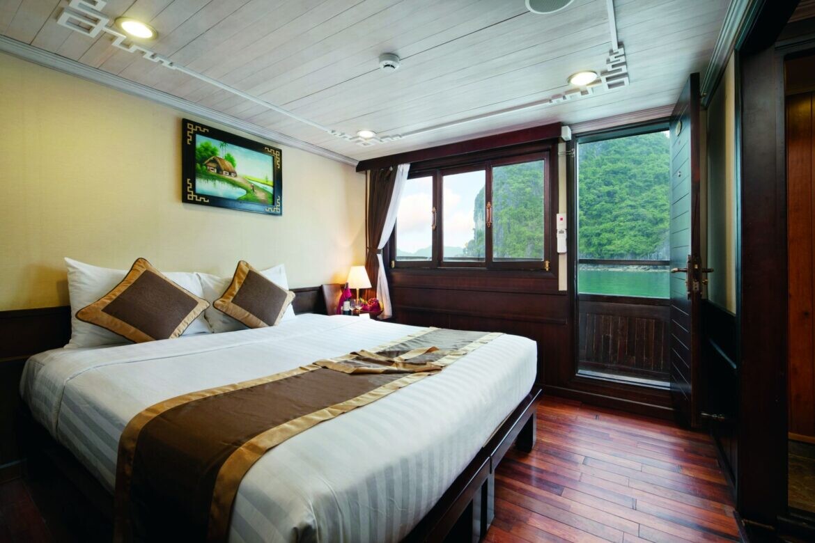 The Le Journey Classic Cruise offers an affordable way to discover the stunning beauty of Halong Bay and Lan Ha Bay. With a total of 17 cabins (Deluxe Ocean View on the first deck and Executive Cabins with private balconies on the second deck), the cruise can accommodate up to 50 overnight guests (including children). Each cabin averages 14m², designed in a simple, classic style with essential amenities to ensure guest comfort. Perfect for couples, families, and small groups, Le Journey Classic Cruise focuses on creating a cozy atmosphere, guided excursions, and friendly service-delivering memorable experiences at a reasonable price. Guests can expect visits to highlights like Sung Sot Cave, Ti Top Island, Luon Cave, Trinh Nu Cave, Ba Trai Dao Beach, and the Pearl Farm.