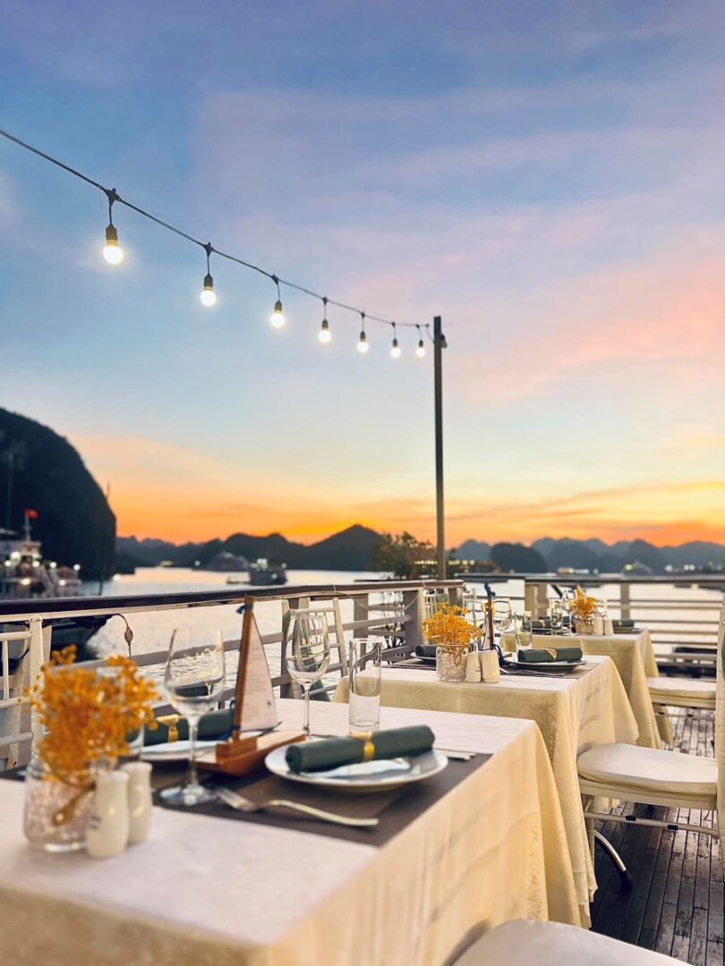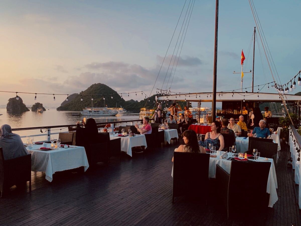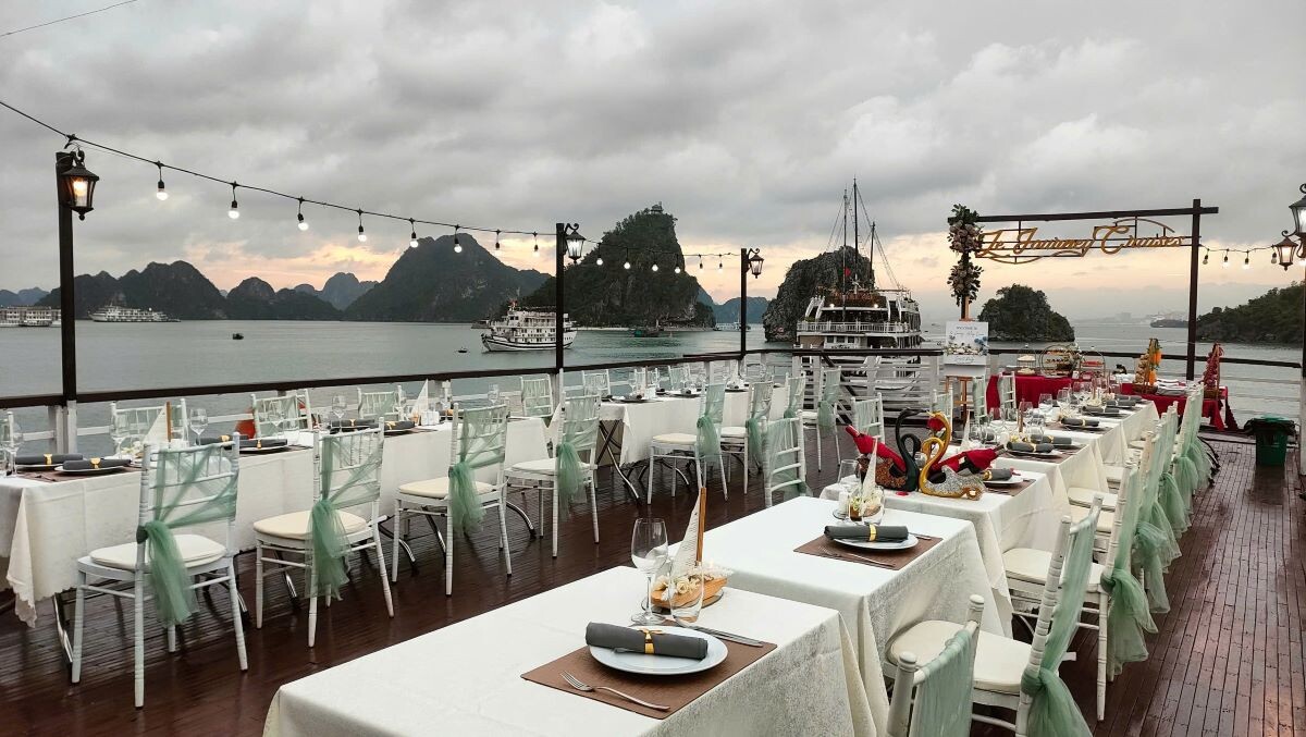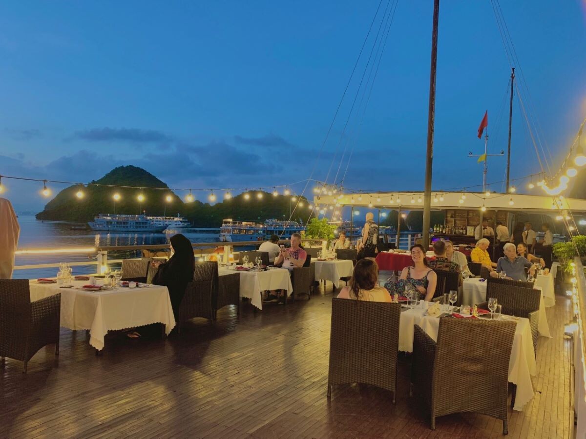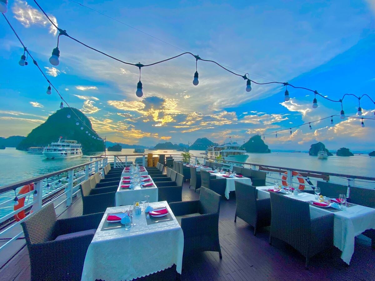 The Le Journey Classic Cruise offers an affordable way to discover the stunning beauty of Halong Bay and Lan Ha Bay. With a total of 17 cabins (Deluxe Ocean View on the first deck and Executive Cabins with private balconies on the second deck), the cruise can accommodate up to 50 overnight guests (including children). Each cabin averages 14m², designed in a simple, classic style with essential amenities to ensure guest comfort. Perfect for couples, families, and small groups, Le Journey Classic Cruise focuses on creating a cozy atmosphere, guided excursions, and friendly service-delivering memorable experiences at a reasonable price. Guests can expect visits to highlights like Sung Sot Cave, Ti Top Island, Luon Cave, Trinh Nu Cave, Ba Trai Dao Beach, and the Pearl Farm.