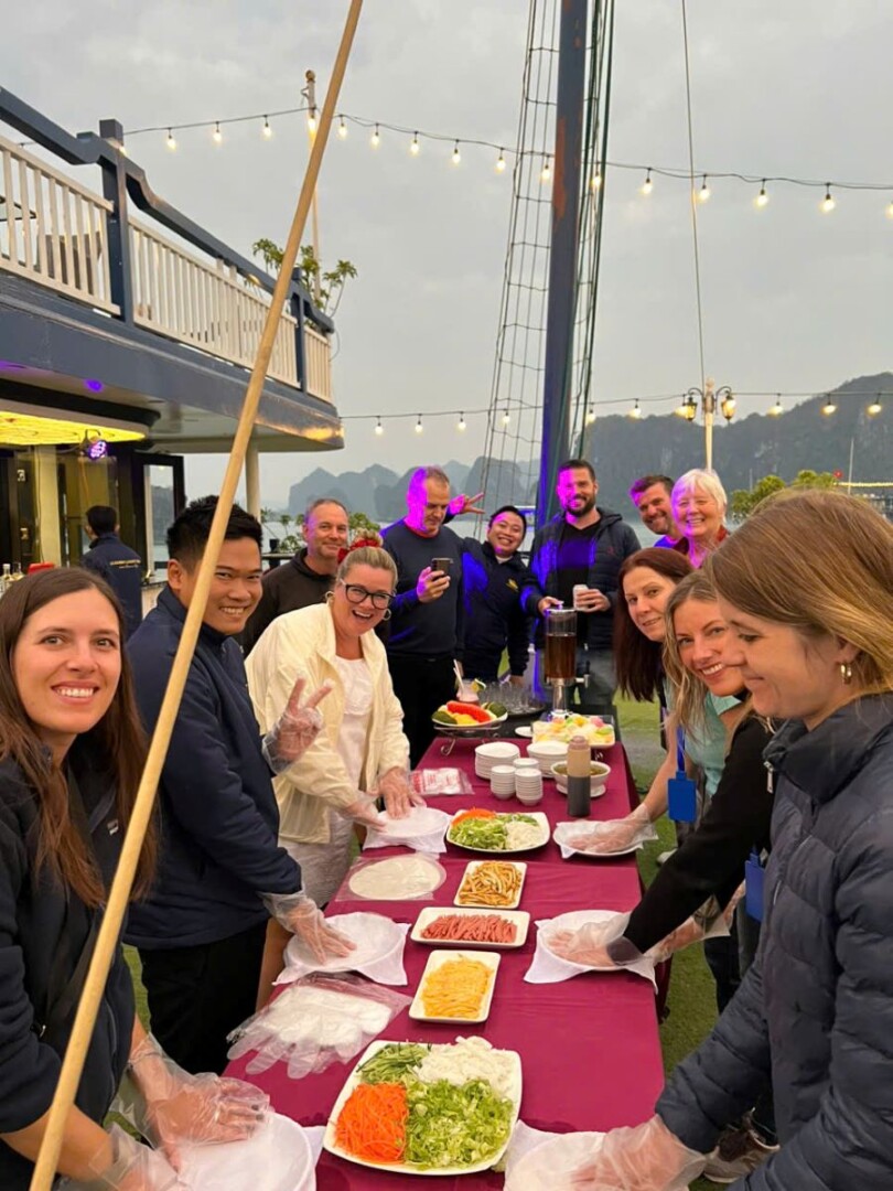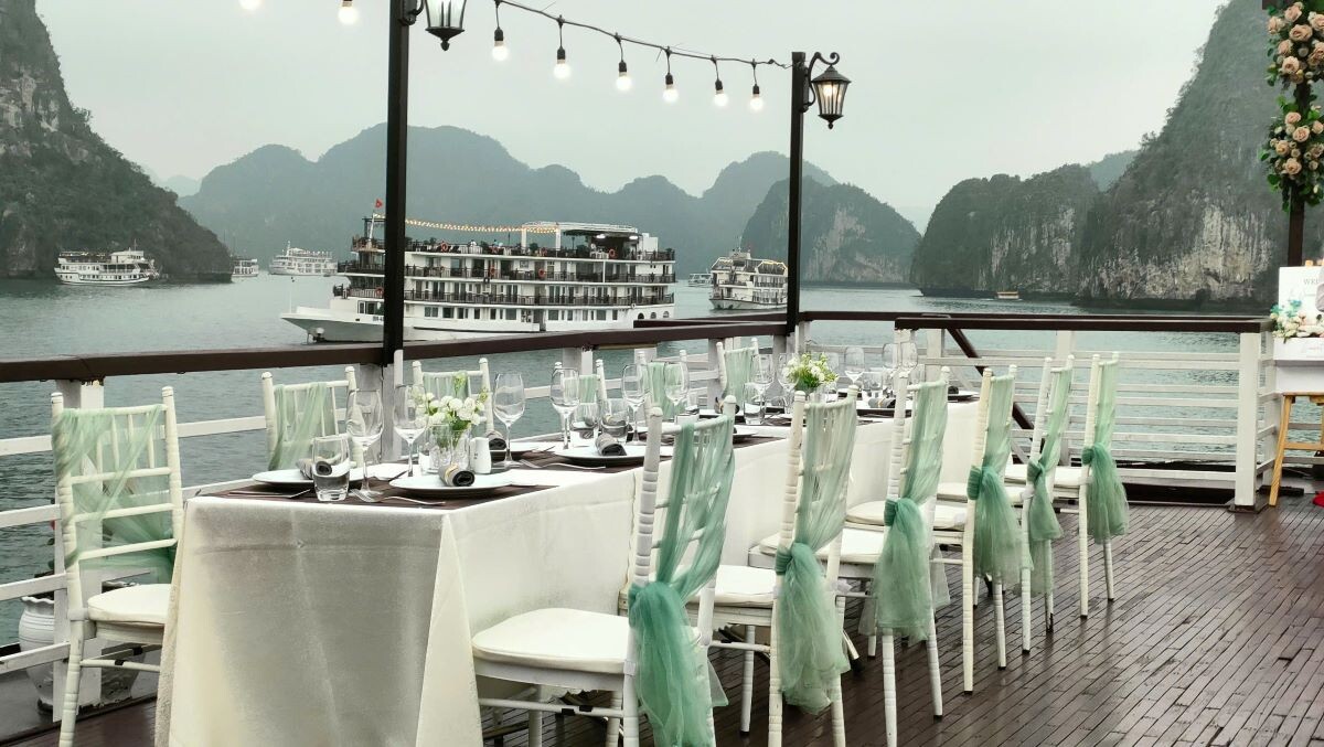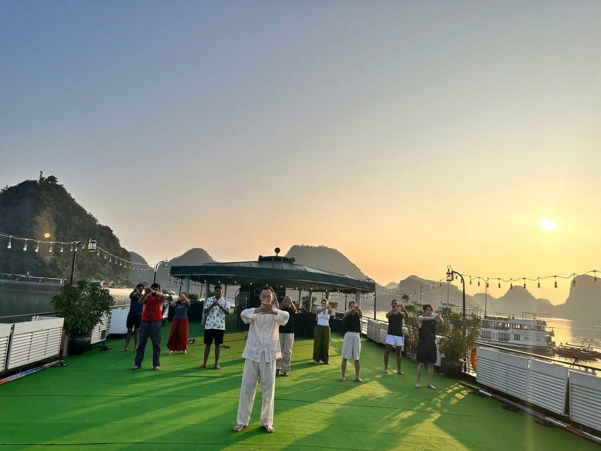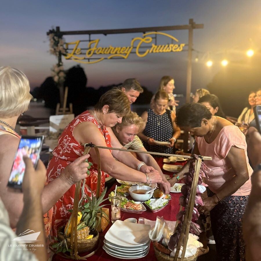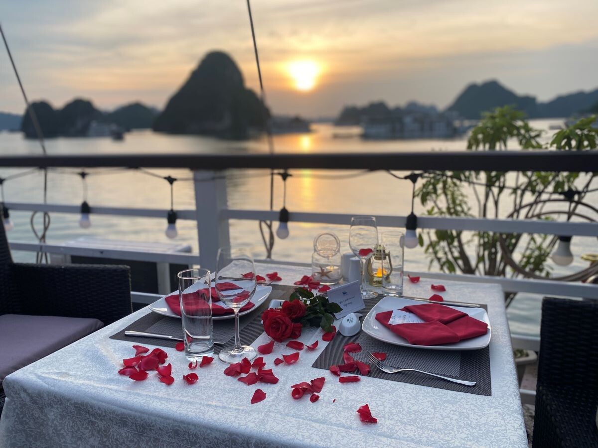 The Le Journey Classic Cruise offers an affordable way to discover the stunning beauty of Halong Bay and Lan Ha Bay. With a total of 17 cabins (Deluxe Ocean View on the first deck and Executive Cabins with private balconies on the second deck), the cruise can accommodate up to 50 overnight guests (including children). Each cabin averages 14m², designed in a simple, classic style with essential amenities to ensure guest comfort. Perfect for couples, families, and small groups, Le Journey Classic Cruise focuses on creating a cozy atmosphere, guided excursions, and friendly service-delivering memorable experiences at a reasonable price. Guests can expect visits to highlights like Sung Sot Cave, Ti Top Island, Luon Cave, Trinh Nu Cave, Ba Trai Dao Beach, and the Pearl Farm.