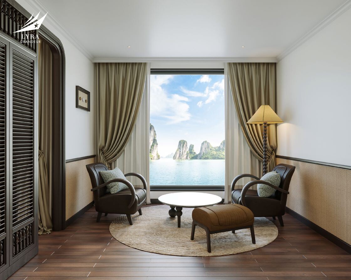 Launched to elevate the luxury cruising experience in Halong Bay and Lan Ha Bay, Lyra Grandeur Cruise is a sophisticated 5-star steel vessel offering style, comfort, and adventure in equal measure. With 33 spacious suites, each designed with private balconies, ocean-view bathtubs, and refined interiors, the cruise caters to couples, families, and group travelers seeking indulgent tranquility on the water. Guests aboard Lyra Grandeur enjoy world-class amenities like the Oasis Pool & Jacuzzi, an outdoor Nordic-style sauna, a movie theatre, mini-golf, and a Cigar & Poker Club, as well as exceptional dining at the Harmony of the Sea Restaurant. The cruise offers curated excursions to hidden beaches, caves, and floating villages, along with onboard cultural activities such as Vietnamese tea ceremonies and cooking demonstrations. Whether you're celebrating a special occasion or simply soaking in the bay’s majestic scenery, Lyra Grandeur promises a stylish and serene escape into the heart of Vietnam’s World Heritage seascape.