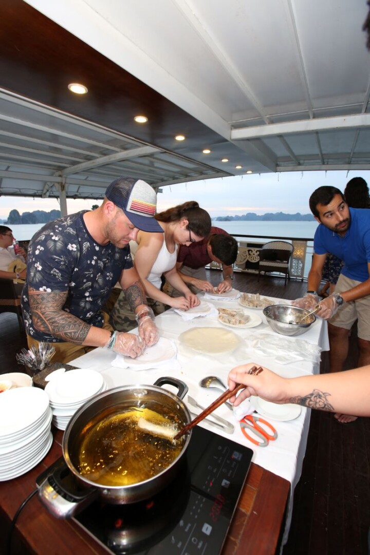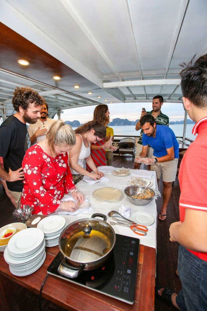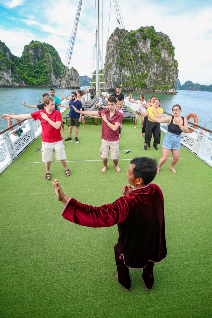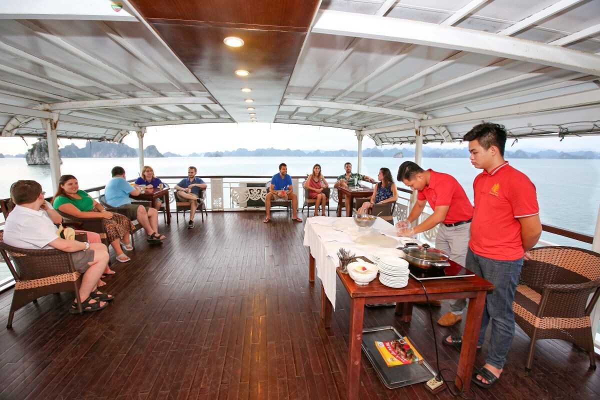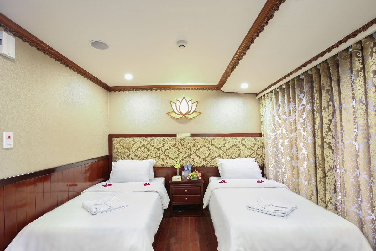 Launched in 2009 and recently upgraded, Oriental Sails Cruise is a traditional wooden junk blending classic Vietnamese style with modern comforts. With 18 cabins ranging from 14m² to 18m², the vessel accommodates up to 40 guests for overnight journeys. Each cabin is simply but thoughtfully designed, featuring essential amenities to ensure a cozy stay. Operating itineraries in both Halong Bay and Lan Ha Bay, Oriental Sails offers travelers the chance to discover two of northern Vietnam’s most breathtaking seascapes. The cruise is especially suited for couples, small families, and budget-conscious travelers who value cultural authenticity, a friendly atmosphere, and intimate group settings over high-end luxury.