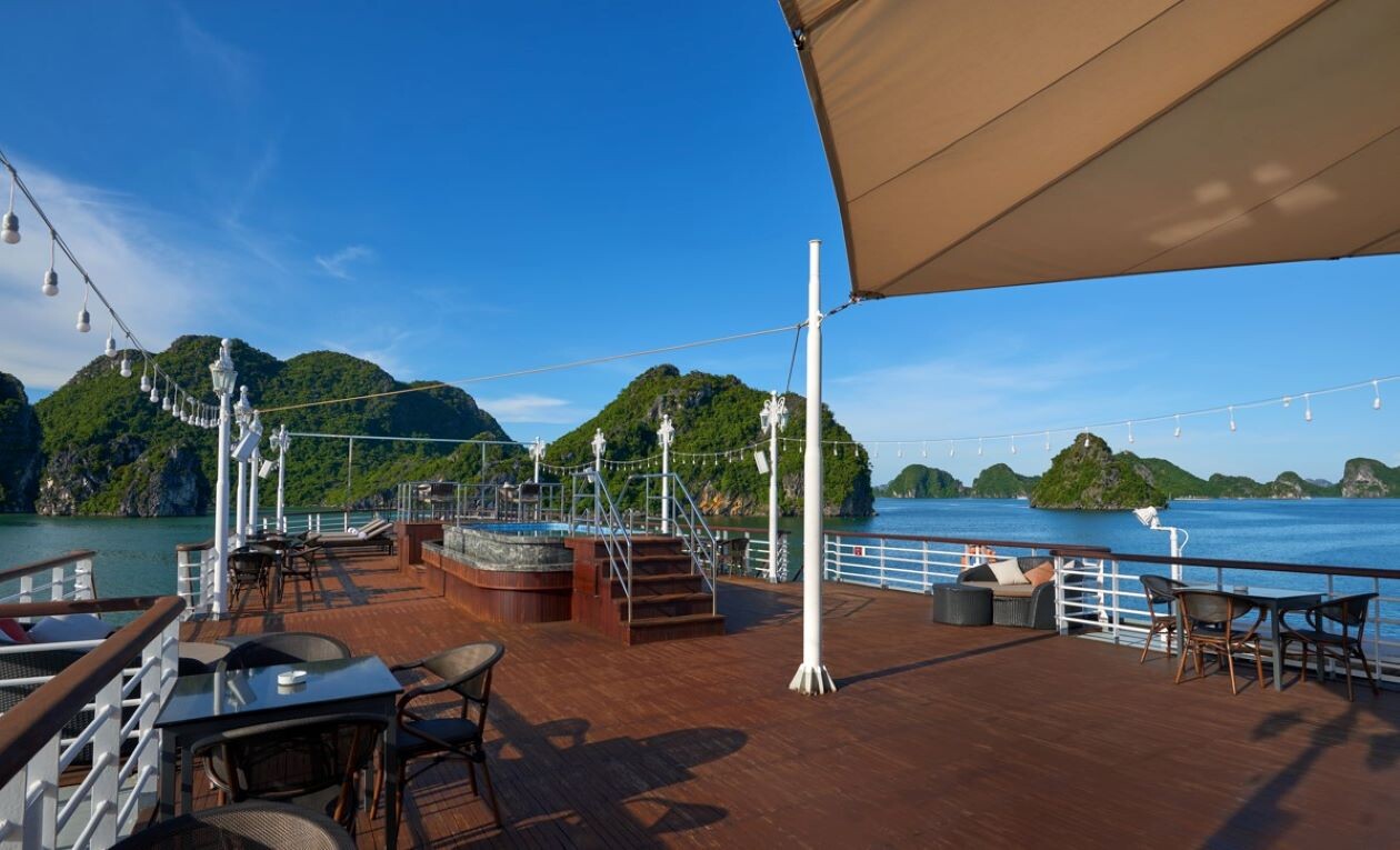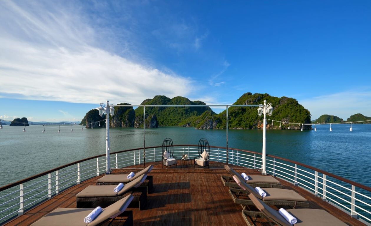 Paradise Elegance Cruise is a luxury steel vessel offering a refined journey through the UNESCO-listed Halong Bay. Launched in 2017, this cruise was crafted with an elegant, contemporary design across 5 spacious decks. Each of the 31 cabins features private balconies, walk-in closets, and stylish en-suite bathrooms. Guests can savor premium dining in Le Marin Restaurant, relax to live piano music at Le Piano Lounge, or unwind on the expansive sundeck with panoramic bay views. A dedicated butler service, enriching activities like kayaking and squid fishing, and wellness offerings at Le Parfum Spa further elevate the experience, making Paradise Elegance one of Halong Bay’s most sought-after luxury cruises.