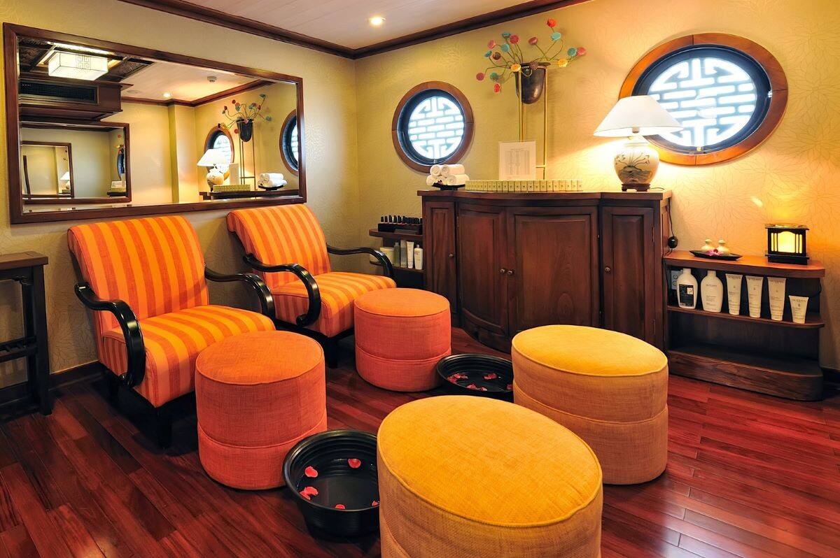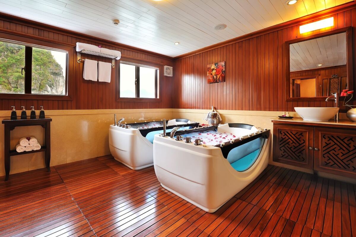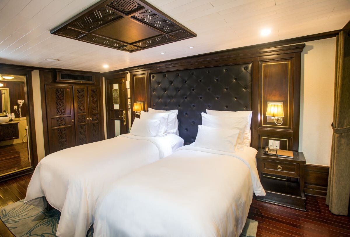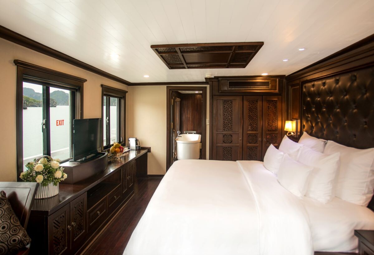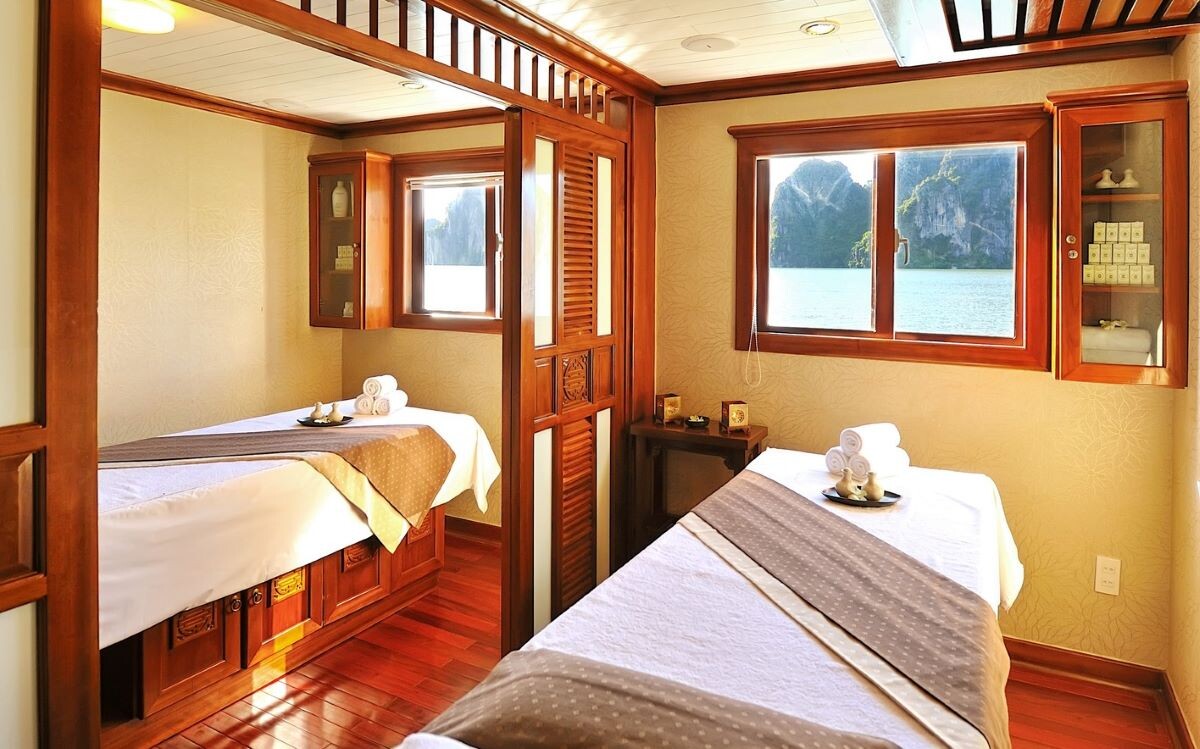 Launched in 2012 and operated by Paradise Vietnam, the pioneering luxury cruise company in Halong Bay, Paradise Peak Cruise redefines indulgence with its boutique design and exceptional service. With only 8 spacious suites (ranging from 38-42m²), the cruise is designed for ultimate privacy, while still offering the amenities of a floating five-star resort. Facilities include a fine-dining restaurant, a library, a fitness room, a sundeck, and the exclusive Le Parfum Spa with massage rooms, sauna, and jacuzzi. Departing from Tuan Chau Marina, Paradise Peak sails through the iconic seascapes of Halong Bay, with highlights including Titop Island, Luon Cave, Tien Ong Cave, Cua Van Fishing Village, and the majestic Sung Sot Cave. Whether on the classic 2-day journey or the extended 3-day exploration, guests enjoy a refined blend of discovery, wellness, and cultural immersion.