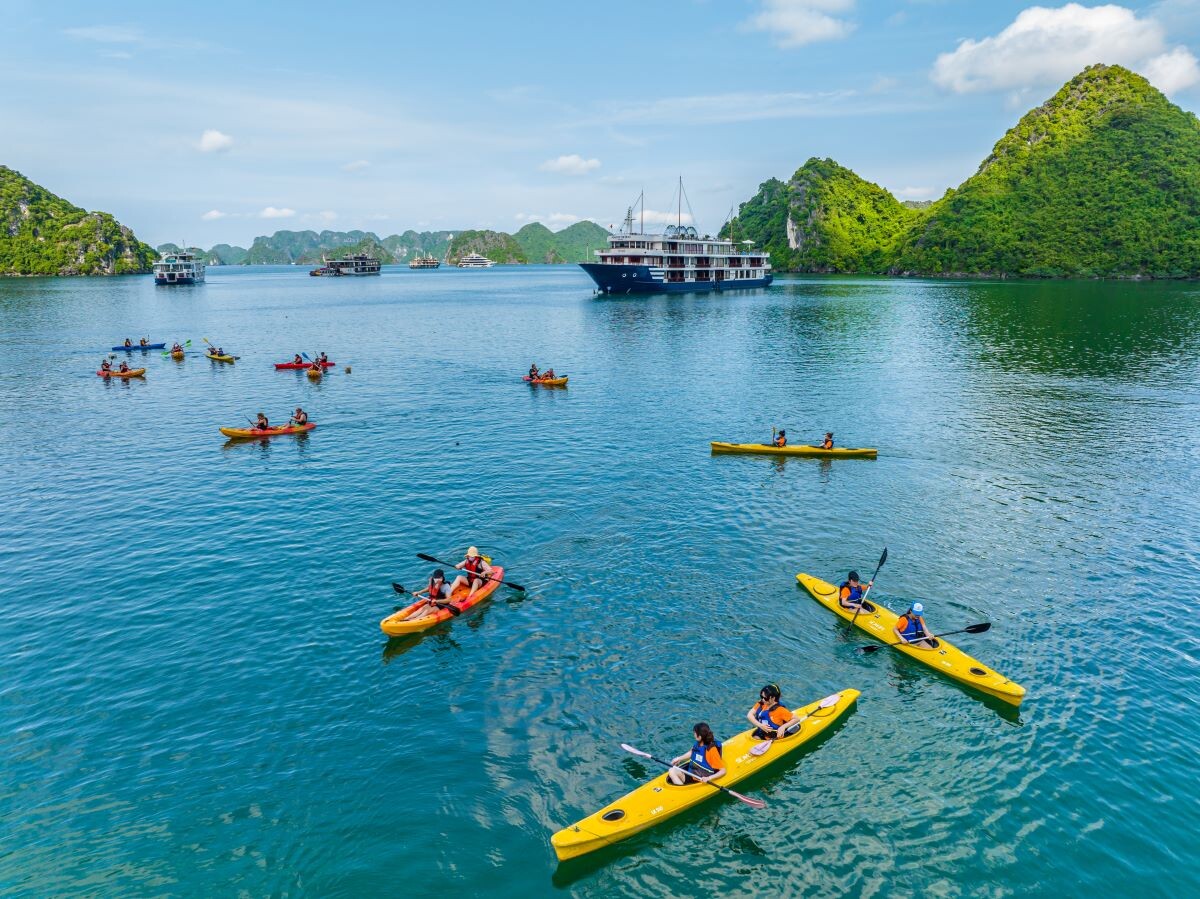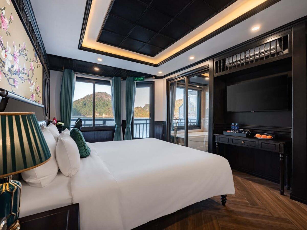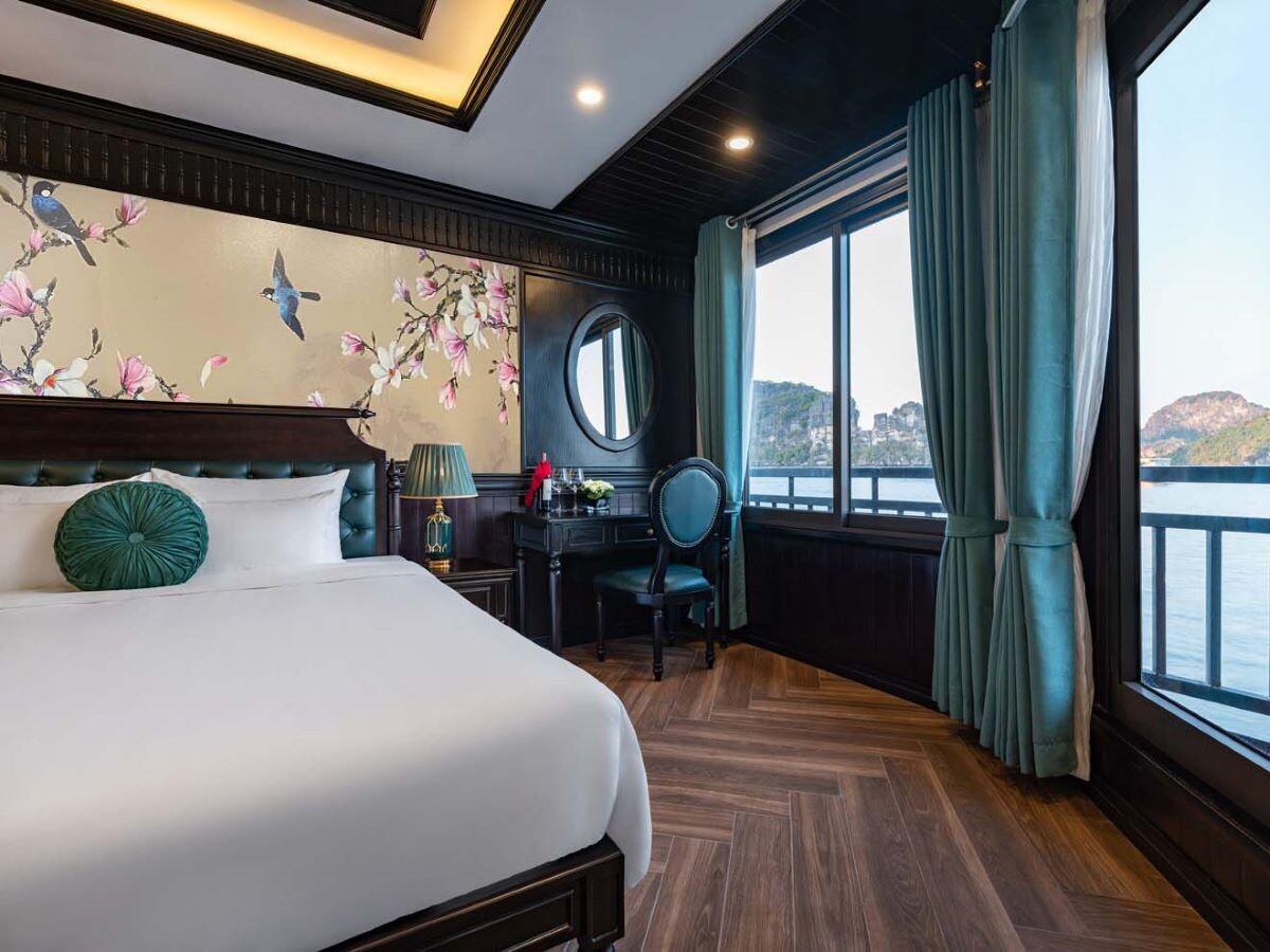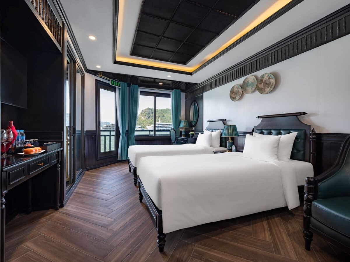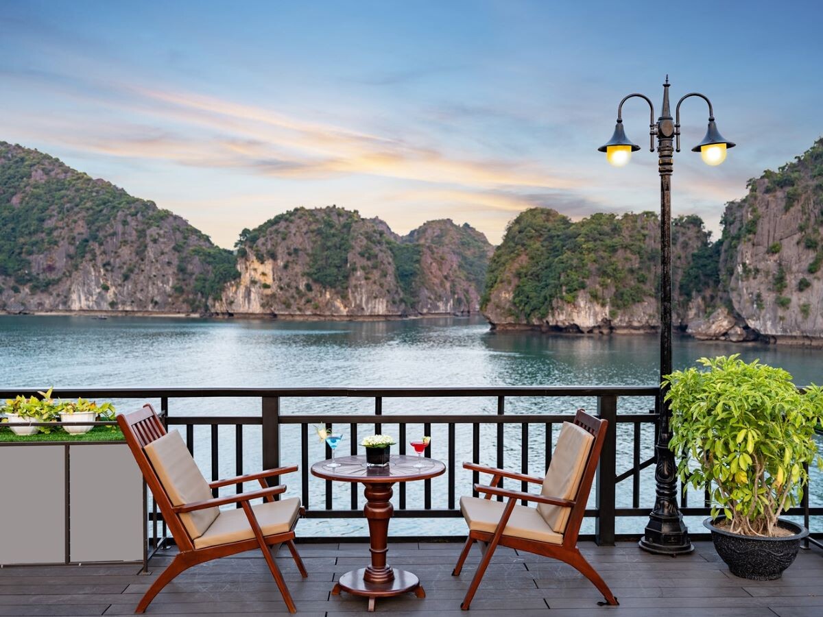 Launched in 2023, Rita Cruise is a modern steel vessel combining Indochine-inspired architecture with five-star luxury comforts. With 32 cabins and suites ranging from 28m² to 65m², each featuring private balconies, floor-to-ceiling windows, and contemporary amenities, the cruise ensures both style and relaxation. Facilities include a fine-dining restaurant, panoramic sundeck, outdoor jacuzzi pool, fitness center, spa, and lounge bar. Departing from Tuan Chau Marina, Rita Cruise sails through Lan Ha Bay and the quieter corners of Halong Bay, showcasing highlights such as Dark & Bright Cave, Viet Hai Village, Ba Trai Dao Beach, and Trung Trang Cave. With a blend of immersive activities and upscale service, it is ideal for travelers seeking cultural discovery alongside modern indulgence.