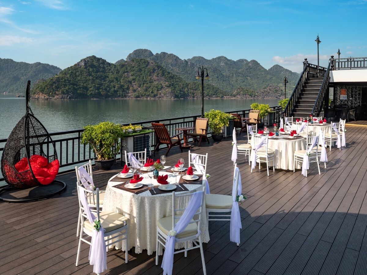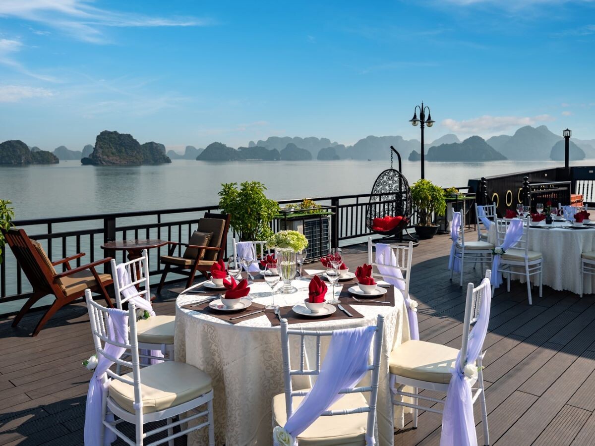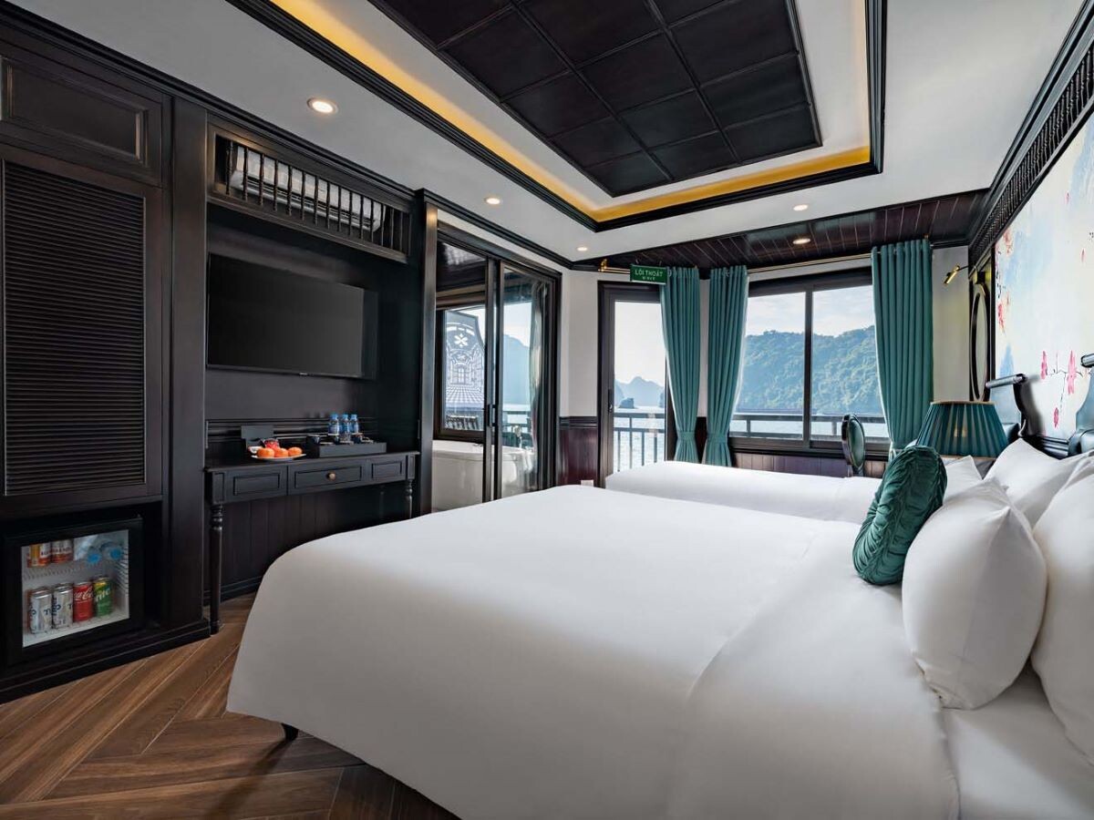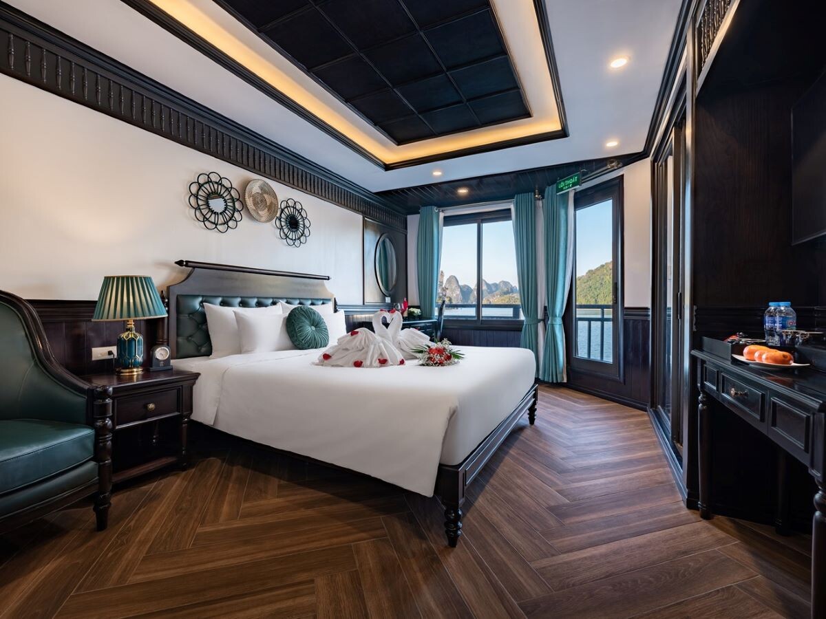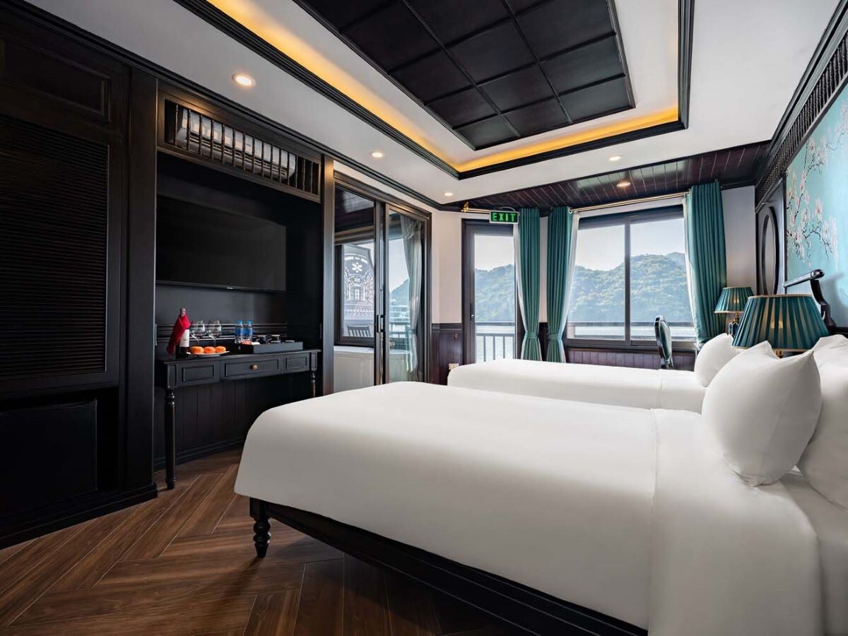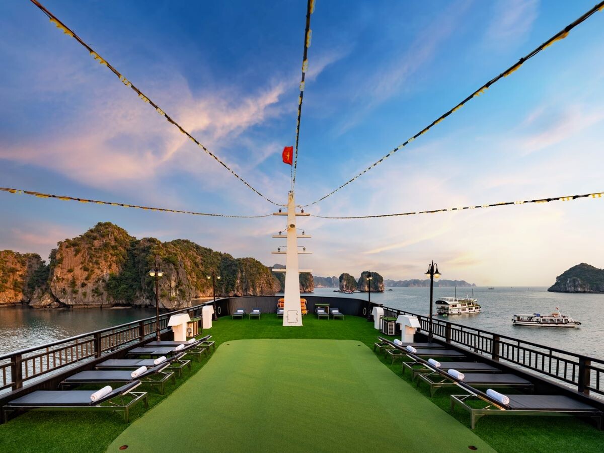Launched in 2023, Rita Cruise is a modern steel vessel combining Indochine-inspired architecture with five-star luxury comforts. With 32 cabins and suites ranging from 28m² to 65m², each featuring private balconies, floor-to-ceiling windows, and contemporary amenities, the cruise ensures both style and relaxation. Facilities include a fine-dining restaurant, panoramic sundeck, outdoor jacuzzi pool, fitness center, spa, and lounge bar. Departing from Tuan Chau Marina, Rita Cruise sails through Lan Ha Bay and the quieter corners of Halong Bay, showcasing highlights such as Dark & Bright Cave, Viet Hai Village, Ba Trai Dao Beach, and Trung Trang Cave. With a blend of immersive activities and upscale service, it is ideal for travelers seeking cultural discovery alongside modern indulgence.