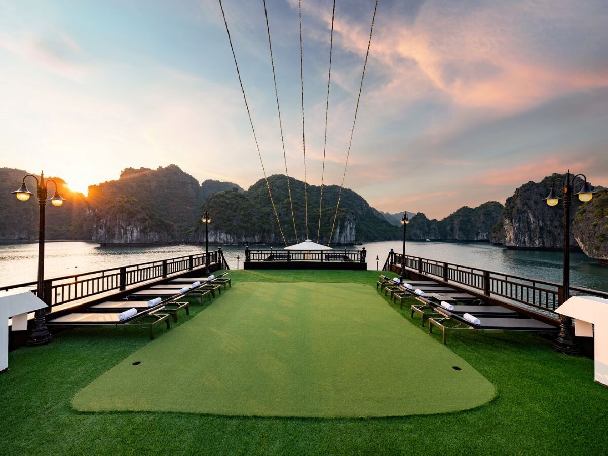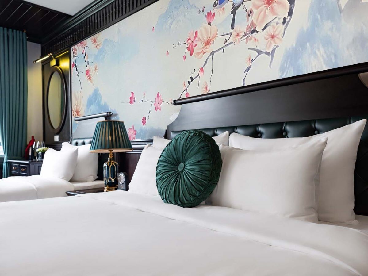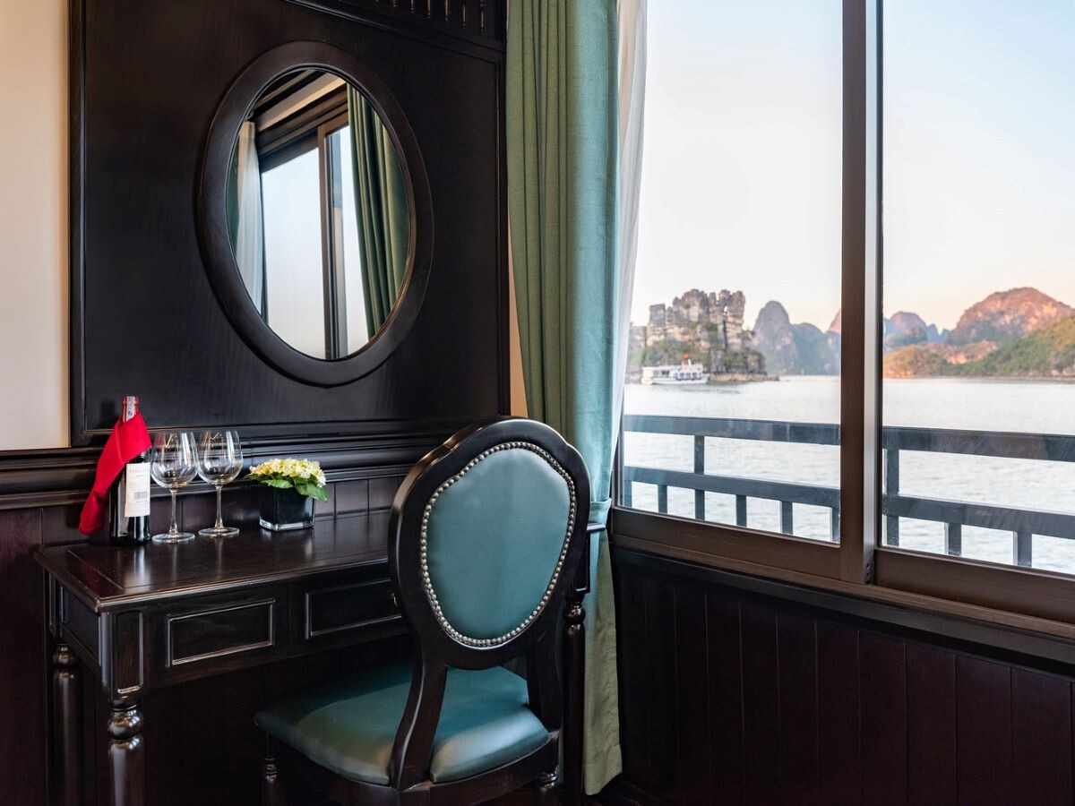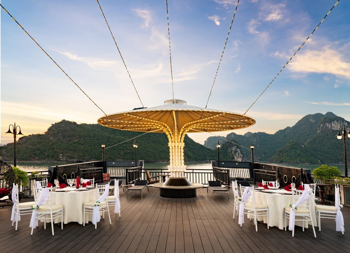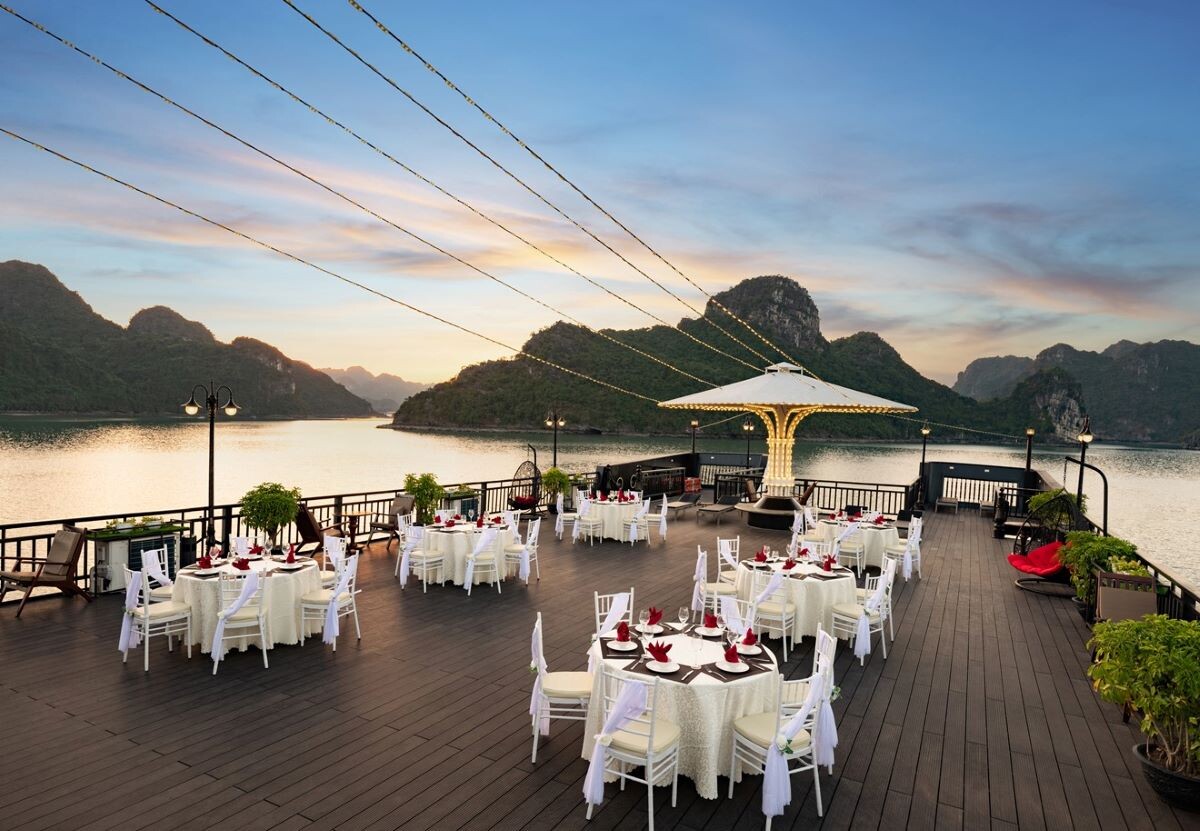 Launched in 2023, Rita Cruise is a modern steel vessel combining Indochine-inspired architecture with five-star luxury comforts. With 32 cabins and suites ranging from 28m² to 65m², each featuring private balconies, floor-to-ceiling windows, and contemporary amenities, the cruise ensures both style and relaxation. Facilities include a fine-dining restaurant, panoramic sundeck, outdoor jacuzzi pool, fitness center, spa, and lounge bar. Departing from Tuan Chau Marina, Rita Cruise sails through Lan Ha Bay and the quieter corners of Halong Bay, showcasing highlights such as Dark & Bright Cave, Viet Hai Village, Ba Trai Dao Beach, and Trung Trang Cave. With a blend of immersive activities and upscale service, it is ideal for travelers seeking cultural discovery alongside modern indulgence.