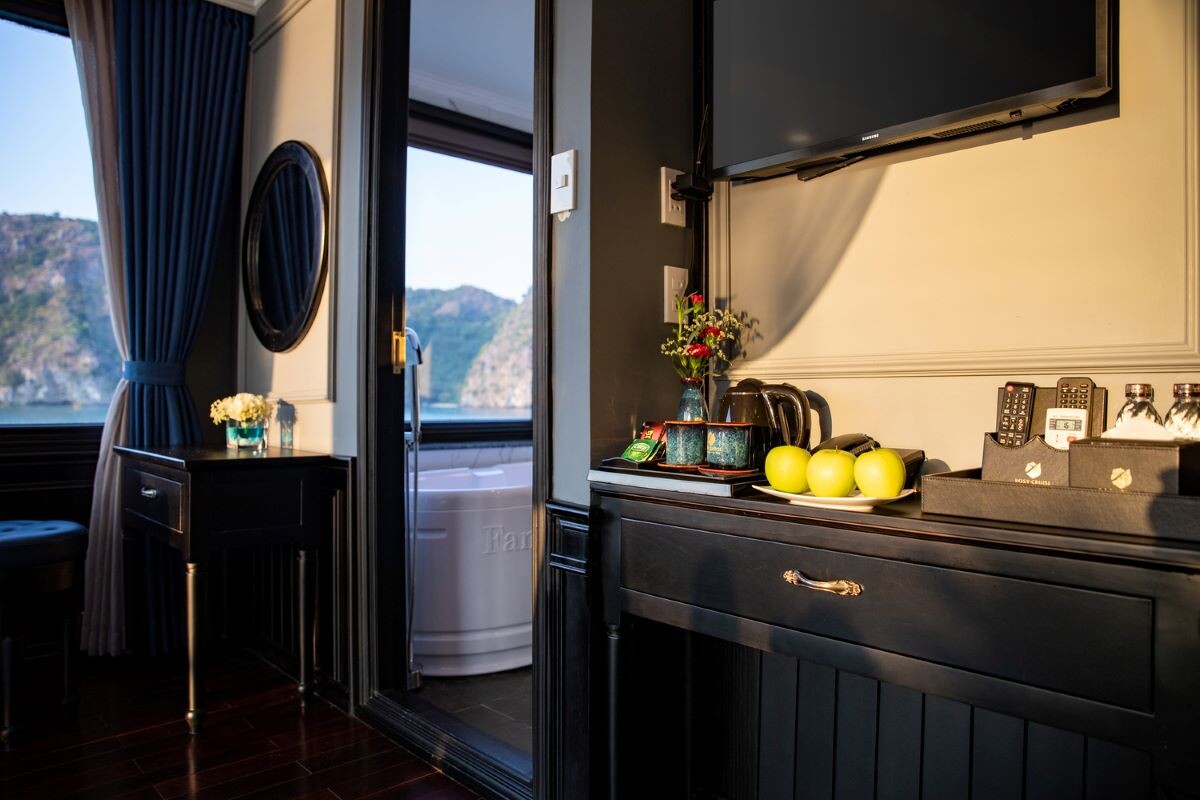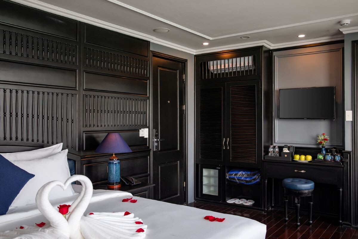 Launched in 2020, Rosy Cruise is a 5-star modern vessel proudly operated by a Vietnamese team with extensive cruising experience in Ha Long Bay and Lan Ha Bay. With 22 elegant cabins ranging from 28 to 56m², each featuring a private balcony, the cruise offers an intimate yet refined atmosphere for up to 52 guests on board. Departing daily from Tuan Chau Marina, Rosy Cruise takes travelers on a luxurious voyage through the scenic Lan Ha Bay, a tranquil extension of Ha Long Bay known for its emerald waters and limestone karsts. Guests can discover signature attractions such as Dark & Bright Cave, Viet Hai Village, and Ba Trai Dao Beach, blending relaxation, adventure, and authentic Vietnamese charm.