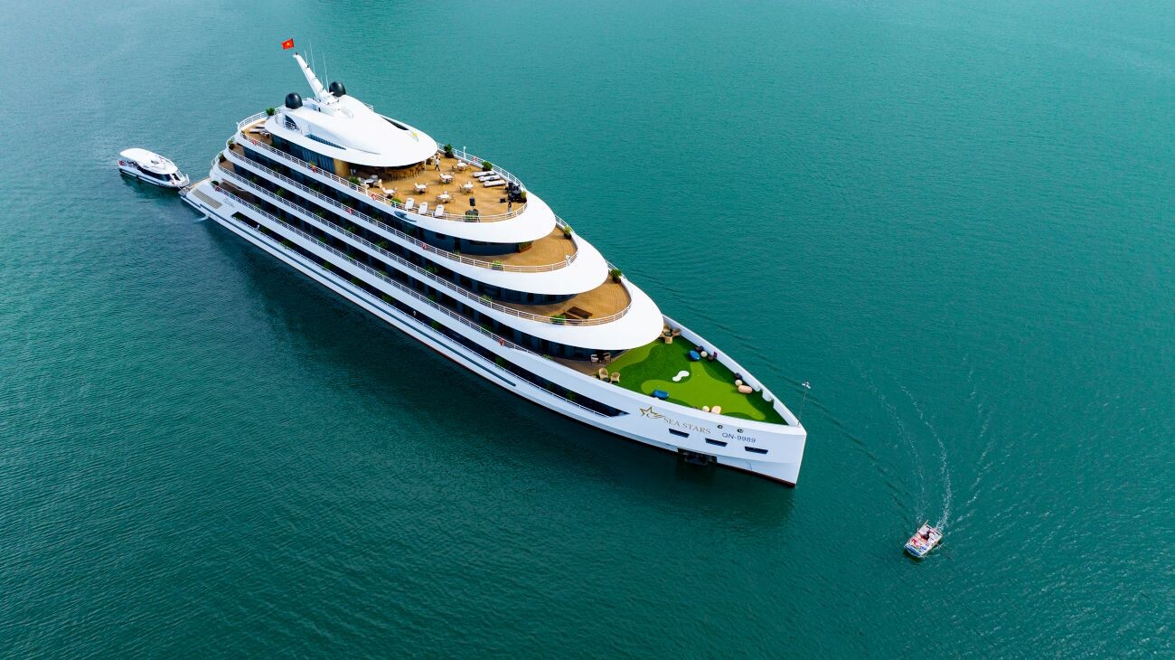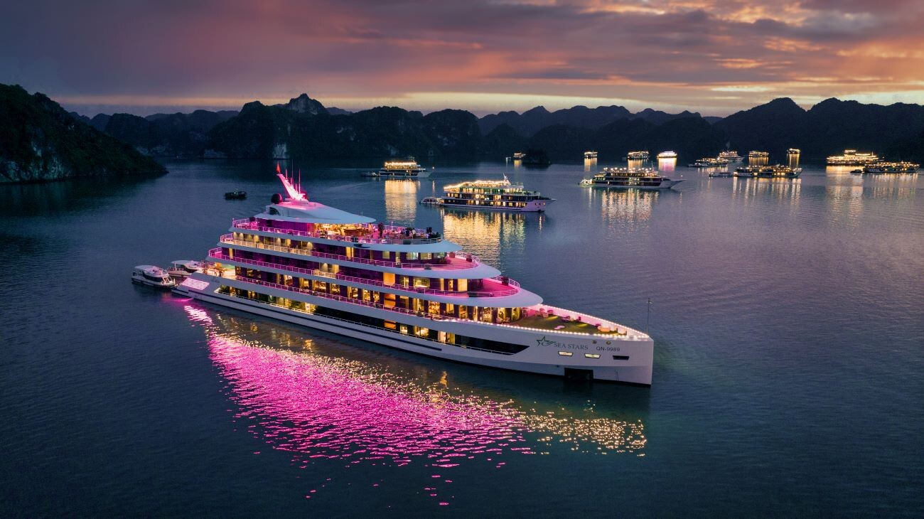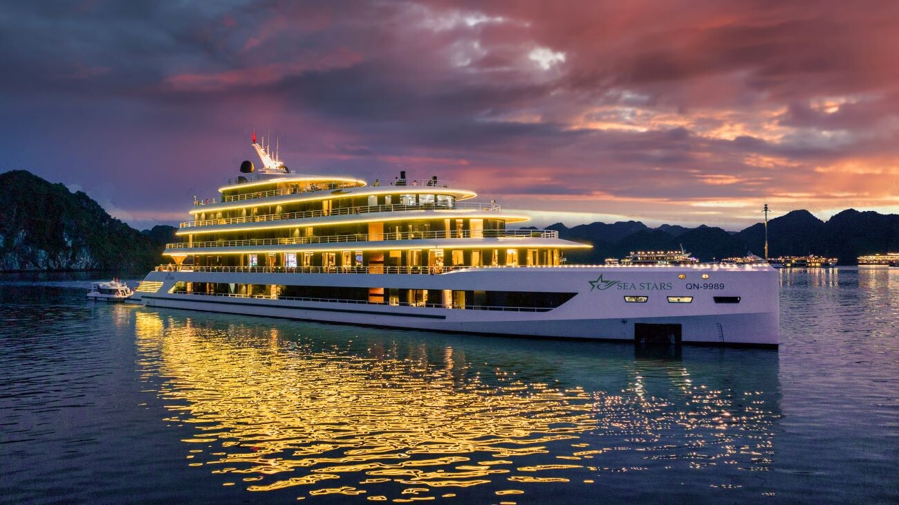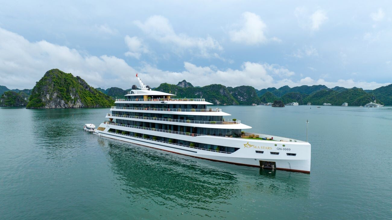 Launched in 2023, Sea Stars Cruise is one of the newest and most luxurious steel yachts to grace the waters of Halong Bay. Departing from the Halong Cruise Port, this ultra-modern vessel offers the sophistication of a 5-star floating hotel, with 39 expansive cabins ranging from 30m² to 198m², each featuring a private balcony, bathtub, and tasteful contemporary design. Guests are treated to a wealth of upscale facilities, including the Capella Restaurant, Venus Spa, Carina Bar & Lounge, and the stunning Aquarius Pool, one of the largest and most advanced onboard swimming pools in the bay. The ship also boasts a rooftop lounge, gym, mini golf course, and even a romantic private yacht for sunset moments. Whether cruising Halong or Lan Ha Bay, Sea Stars Cruise delivers a top-tier experience with personalized service, elegant surroundings, and immersive excursions, all wrapped in the newest luxury available on the Gulf of Tonkin.