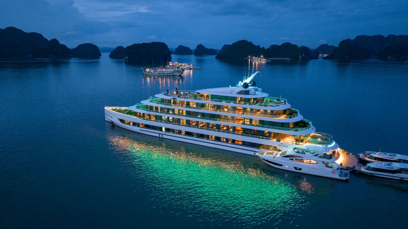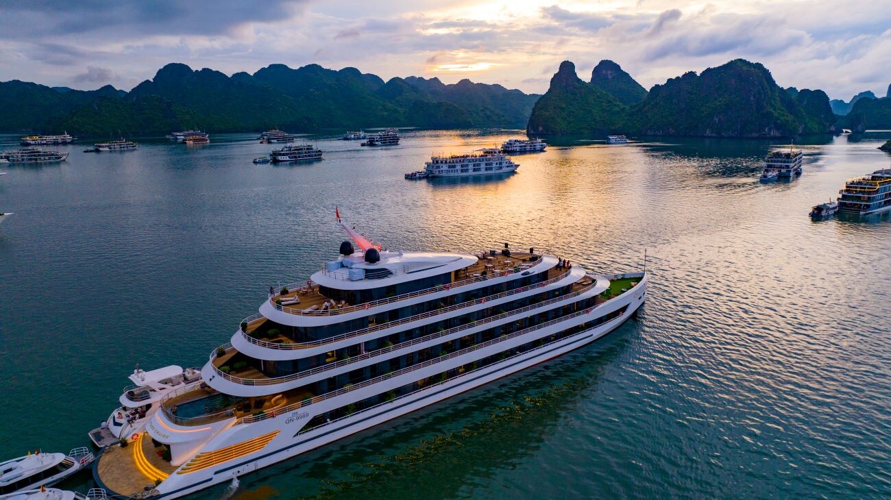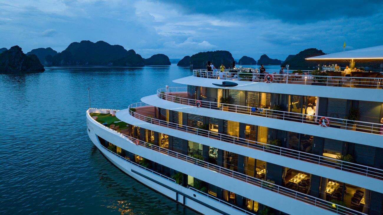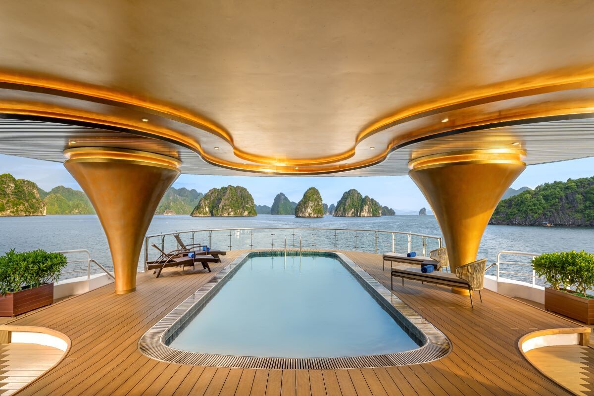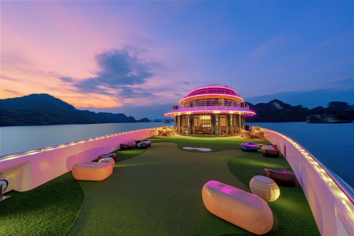 Launched in 2023, Sea Stars Cruise is one of the newest and most luxurious steel yachts to grace the waters of Halong Bay. Departing from the Halong Cruise Port, this ultra-modern vessel offers the sophistication of a 5-star floating hotel, with 39 expansive cabins ranging from 30m² to 198m², each featuring a private balcony, bathtub, and tasteful contemporary design. Guests are treated to a wealth of upscale facilities, including the Capella Restaurant, Venus Spa, Carina Bar & Lounge, and the stunning Aquarius Pool, one of the largest and most advanced onboard swimming pools in the bay. The ship also boasts a rooftop lounge, gym, mini golf course, and even a romantic private yacht for sunset moments. Whether cruising Halong or Lan Ha Bay, Sea Stars Cruise delivers a top-tier experience with personalized service, elegant surroundings, and immersive excursions, all wrapped in the newest luxury available on the Gulf of Tonkin.