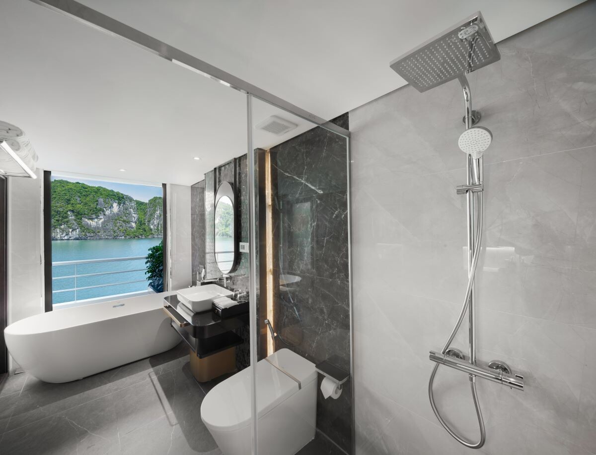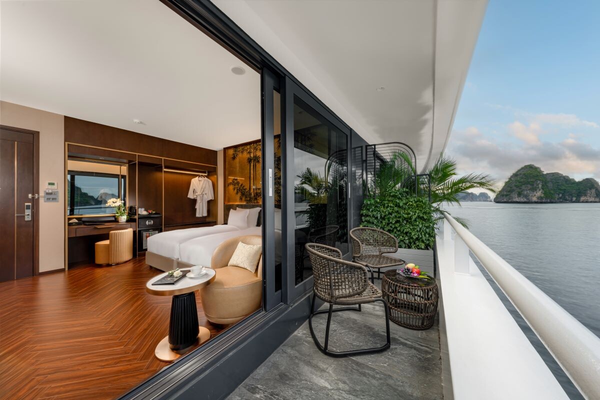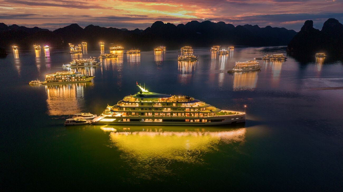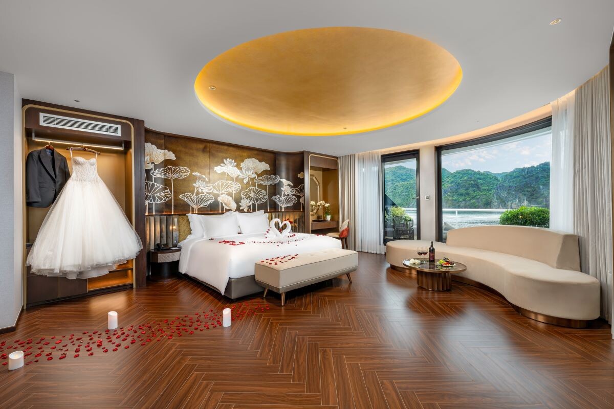 Launched in 2023, Sea Stars Cruise is one of the newest and most luxurious steel yachts to grace the waters of Halong Bay. Departing from the Halong Cruise Port, this ultra-modern vessel offers the sophistication of a 5-star floating hotel, with 39 expansive cabins ranging from 30m² to 198m², each featuring a private balcony, bathtub, and tasteful contemporary design. Guests are treated to a wealth of upscale facilities, including the Capella Restaurant, Venus Spa, Carina Bar & Lounge, and the stunning Aquarius Pool, one of the largest and most advanced onboard swimming pools in the bay. The ship also boasts a rooftop lounge, gym, mini golf course, and even a romantic private yacht for sunset moments. Whether cruising Halong or Lan Ha Bay, Sea Stars Cruise delivers a top-tier experience with personalized service, elegant surroundings, and immersive excursions, all wrapped in the newest luxury available on the Gulf of Tonkin.