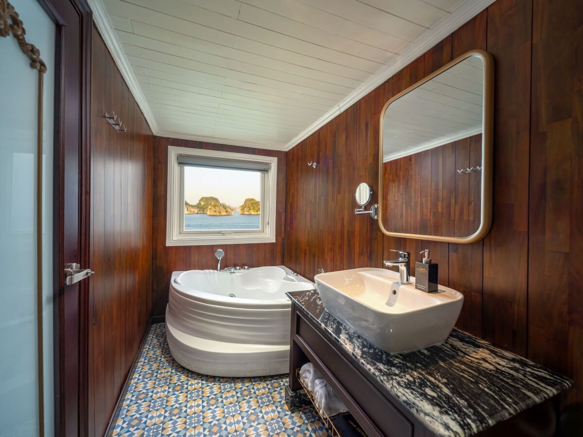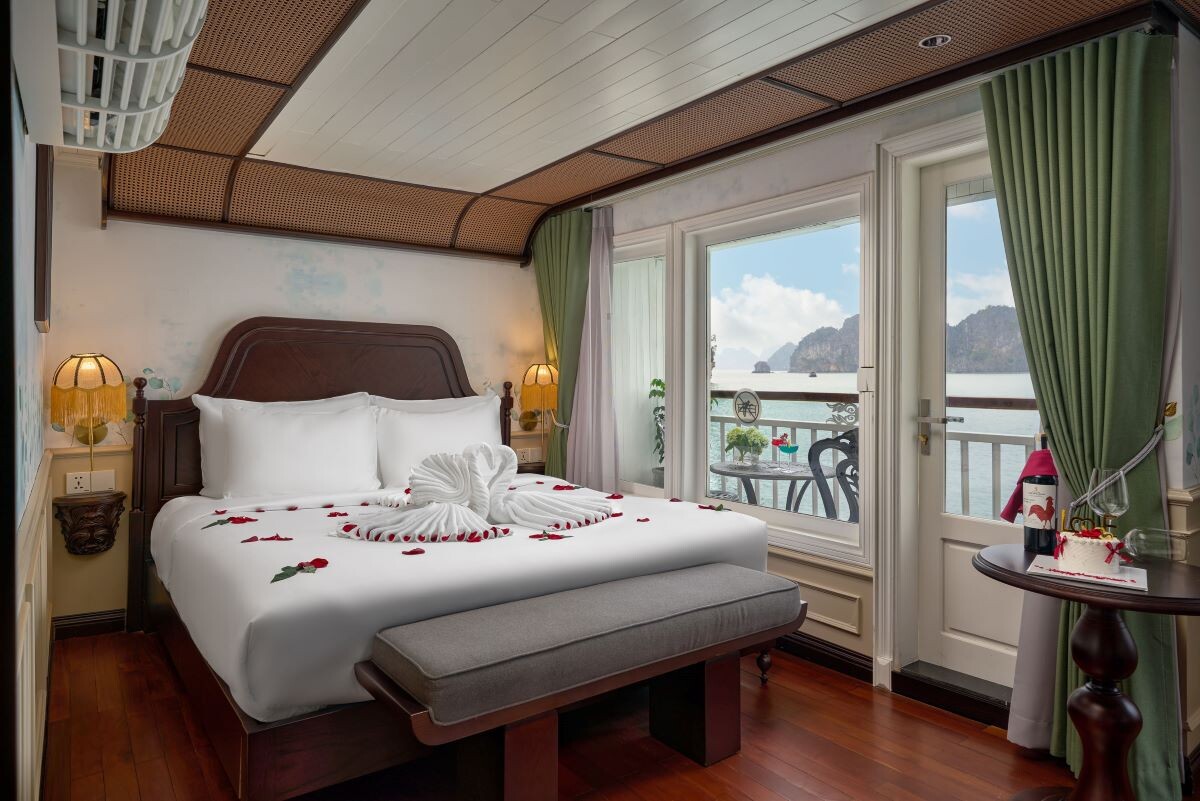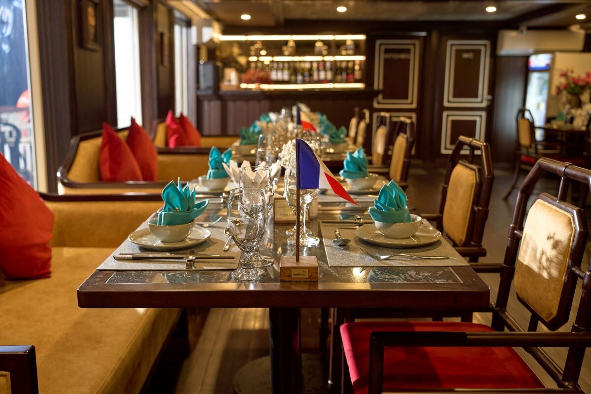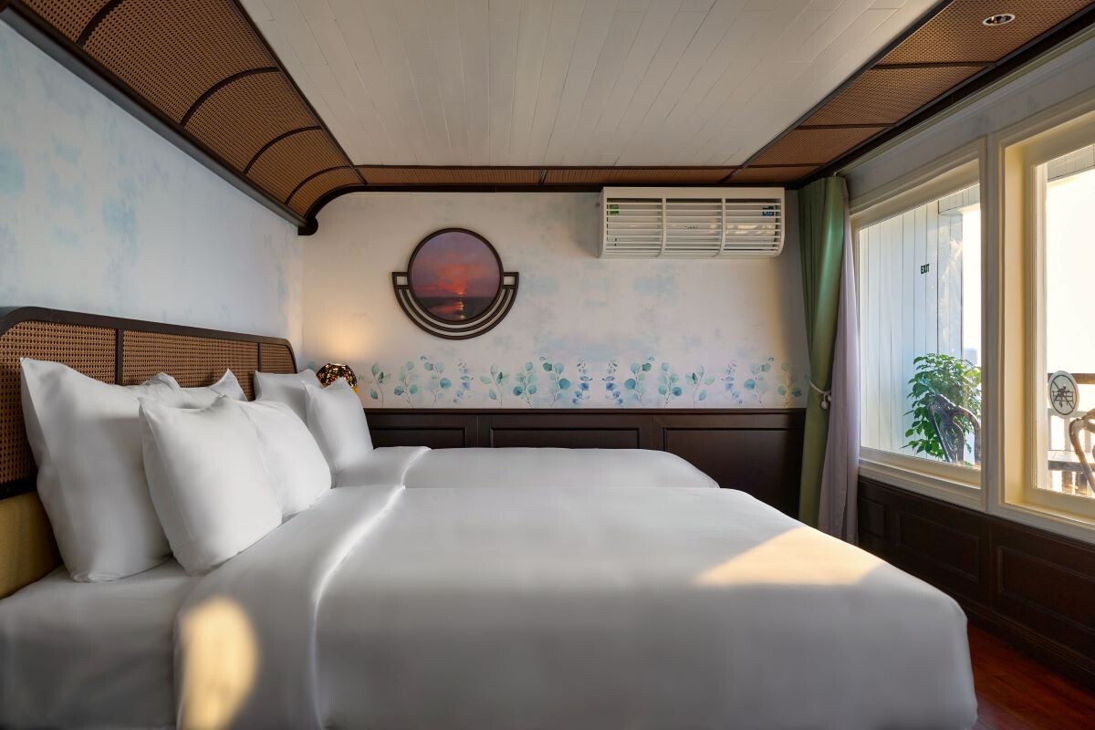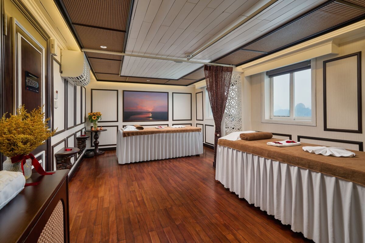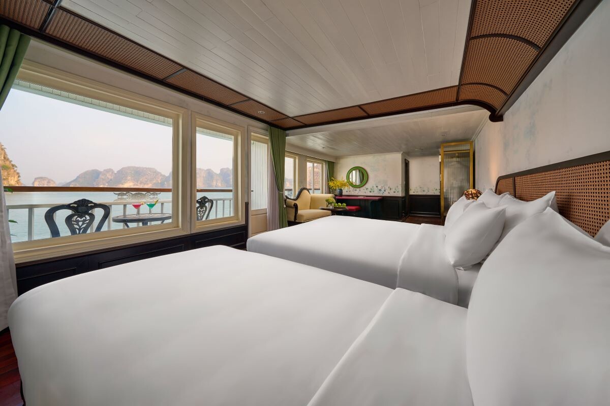 Launched in 2014, the Signature Royal Cruise is a distinguished member of the Athena Group, renowned for its professional service and luxurious voyages through the pristine Bai Tu Long Bay. Departing from Halong Cruise Port, this elegant cruise blends modern steel construction with classic Vietnamese wooden junk-inspired design, ensuring both safety and authentic charm. With only 15 spacious cabins designed for a maximum of 38 passengers, Signature Royal offers an intimate and personalized experience on the bay. Cabins range from 28 m² to 82 m², each featuring a private balcony, en-suite bathroom, and large windows framing sweeping sea views. Sailing the less-traveled route of Bai Tu Long Bay, guests explore some of Halong’s most serene and untouched destinations, including the Vung Vieng Floating Village, Cong Do Area, and the magnificent Thien Canh Son Cave. This unique itinerary allows travelers to enjoy both cultural encounters and natural beauty, away from the busy tourist routes. With its impeccable service, refined cuisine, and tranquil cruising pace, Signature Royal Cruise promises a sophisticated yet intimate journey into one of Vietnam’s most captivating UNESCO World Heritage sites.