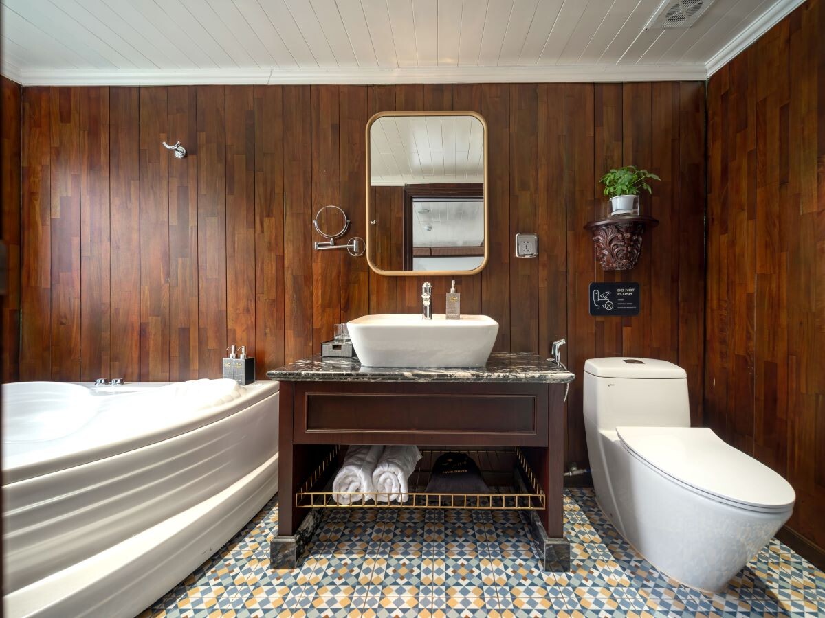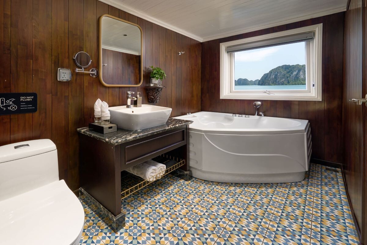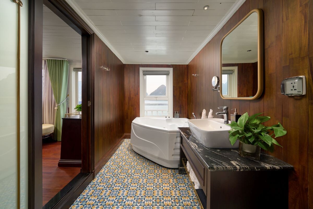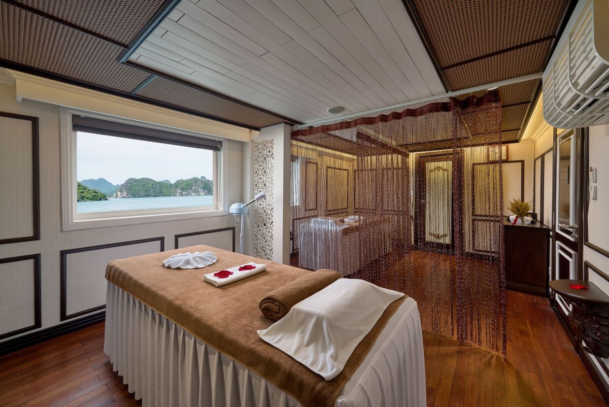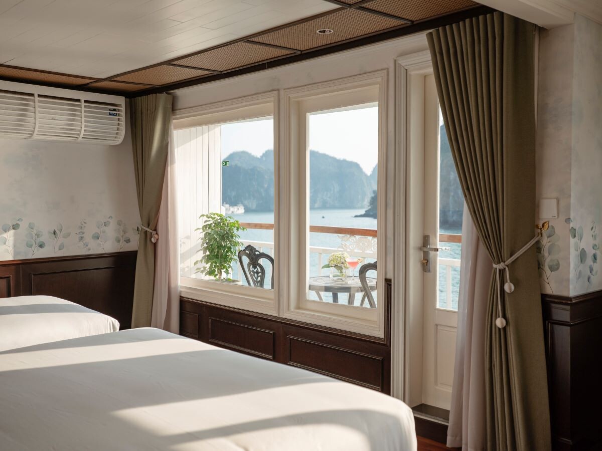 Launched in 2014, the Signature Royal Cruise is a distinguished member of the Athena Group, renowned for its professional service and luxurious voyages through the pristine Bai Tu Long Bay. Departing from Halong Cruise Port, this elegant cruise blends modern steel construction with classic Vietnamese wooden junk-inspired design, ensuring both safety and authentic charm. With only 15 spacious cabins designed for a maximum of 38 passengers, Signature Royal offers an intimate and personalized experience on the bay. Cabins range from 28 m² to 82 m², each featuring a private balcony, en-suite bathroom, and large windows framing sweeping sea views. Sailing the less-traveled route of Bai Tu Long Bay, guests explore some of Halong’s most serene and untouched destinations, including the Vung Vieng Floating Village, Cong Do Area, and the magnificent Thien Canh Son Cave. This unique itinerary allows travelers to enjoy both cultural encounters and natural beauty, away from the busy tourist routes. With its impeccable service, refined cuisine, and tranquil cruising pace, Signature Royal Cruise promises a sophisticated yet intimate journey into one of Vietnam’s most captivating UNESCO World Heritage sites.