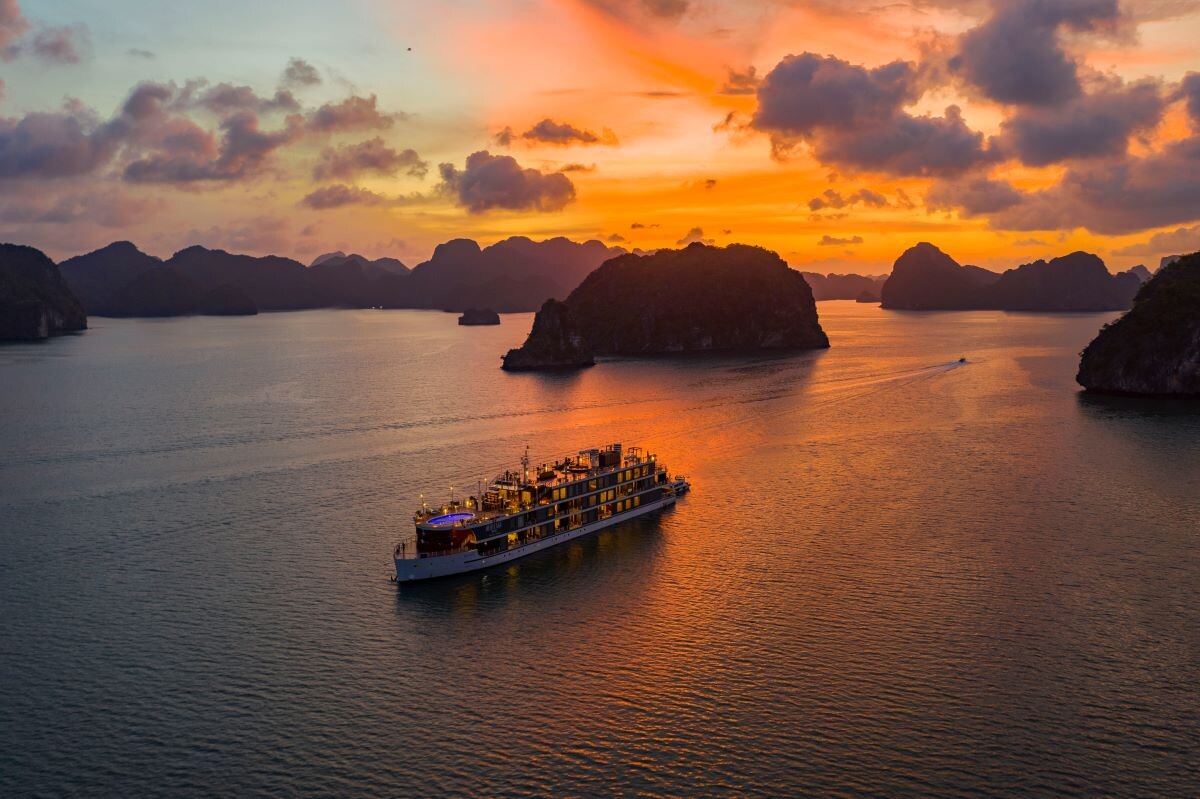 Launched in 2018 and continually upgraded, Stellar of the Seas Cruise sets a new benchmark for ultra-luxury cruising in Halong Bay and Lan Ha Bay. Crafted in modern steel with elegant architecture, this premium vessel boasts 22 spacious suites - each featuring a private balcony, floor-to-ceiling windows, and luxurious amenities. The cruise elevates the onboard experience with a signature rooftop infinity pool, a mini-golf course, a fine-dining restaurant, a wine & cigar cellar, and an elegant sky bar. Whether you're sunbathing on the sundeck, savoring fresh seafood, or exploring hidden lagoons and caves, Stellar of the Seas ensures every moment is unforgettable. Departing from Tuan Chau International Marina, it offers 2D1N and 3D2N itineraries through less-touristy parts of Lan Ha Bay, allowing guests to discover nature at its most serene while enjoying five-star service.