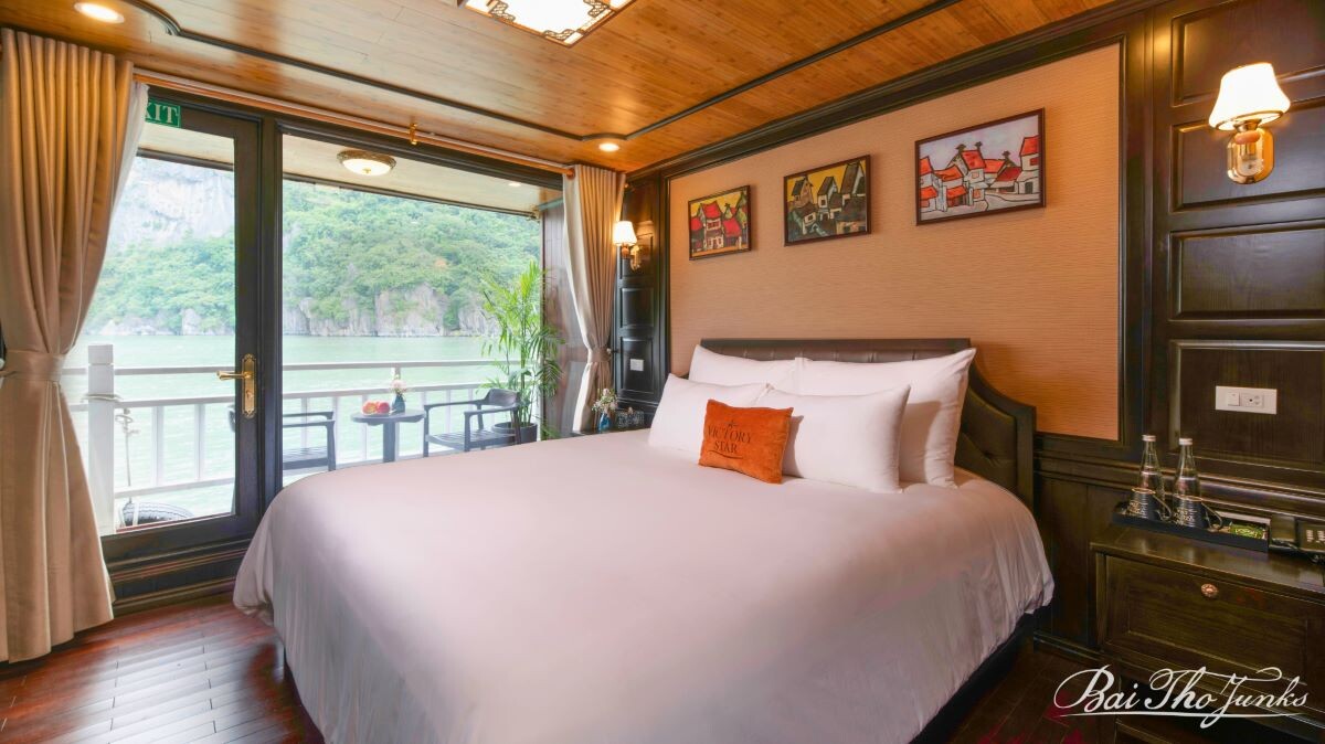 Launched in 2009 and fully renovated in May 2022, Victory Star Cruise is a steel-framed junk styled with traditional Vietnamese sails. Operated by Bai Tho Junks, one of Ha Long Bay’s most experienced and reputable cruise companies, it blends authentic design with trusted hospitality.