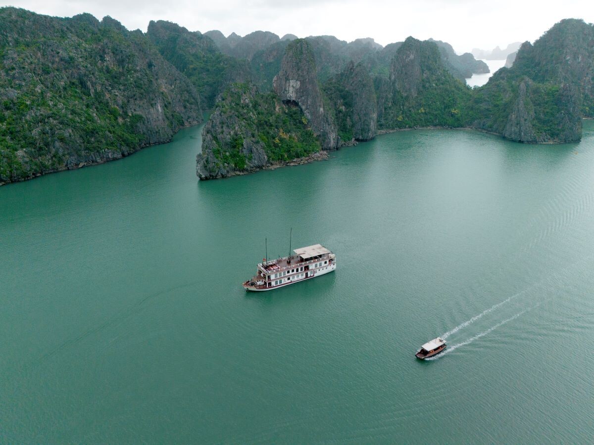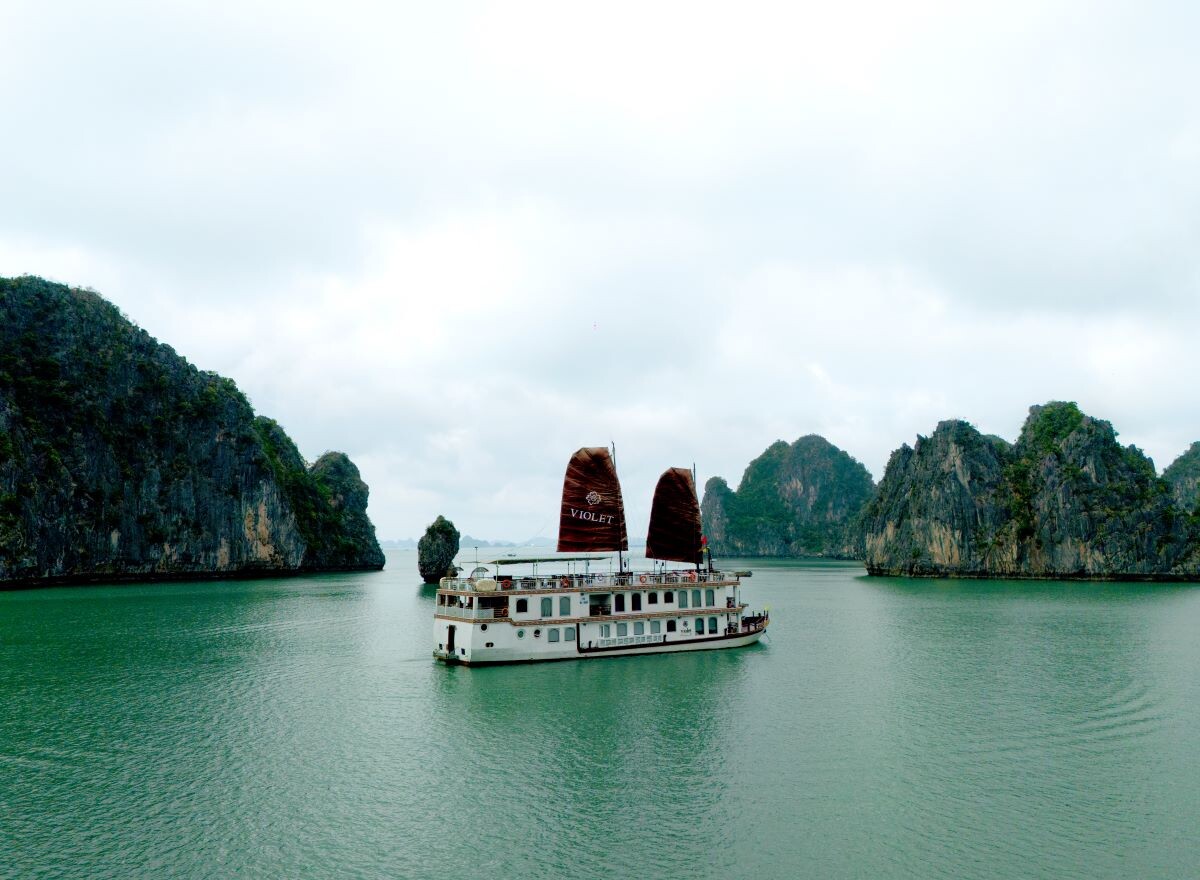 Launched in 2009, the Heritage Line Violet Cruise is a boutique, six-suite vessel designed for travelers seeking an exclusive and intimate Halong Bay experience. Departing from Tuan Chau Marina, Violet blends traditional Vietnamese artistry with refined Indochinese elegance, offering a truly personalized journey in either Halong Bay or Bai Tu Long Bay. With only six spacious suites, Violet provides unmatched privacy and attentive service, making it the perfect choice for couples, honeymooners, and discerning travelers who value tranquility over crowds. Each suite is individually styled with dark wood, silk, and velvet accents, and features a private balcony offering sweeping views of the bay’s limestone karsts. Beyond its stylish accommodations, Violet boasts gourmet dining, a small spa, and curated excursions that immerse guests in the natural beauty and cultural heritage of northern Vietnam. For those seeking exclusivity, luxury, and romance, Violet stands as one of the most intimate luxury cruises on Halong Bay. Violet Cruise is ideal for couples and small groups looking for a boutique, private Halong Bay or Bai Tu Long Bay journey.